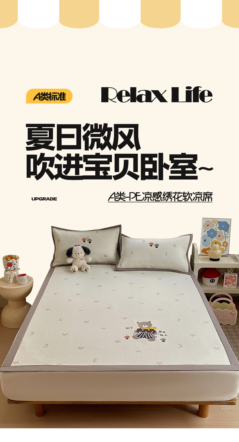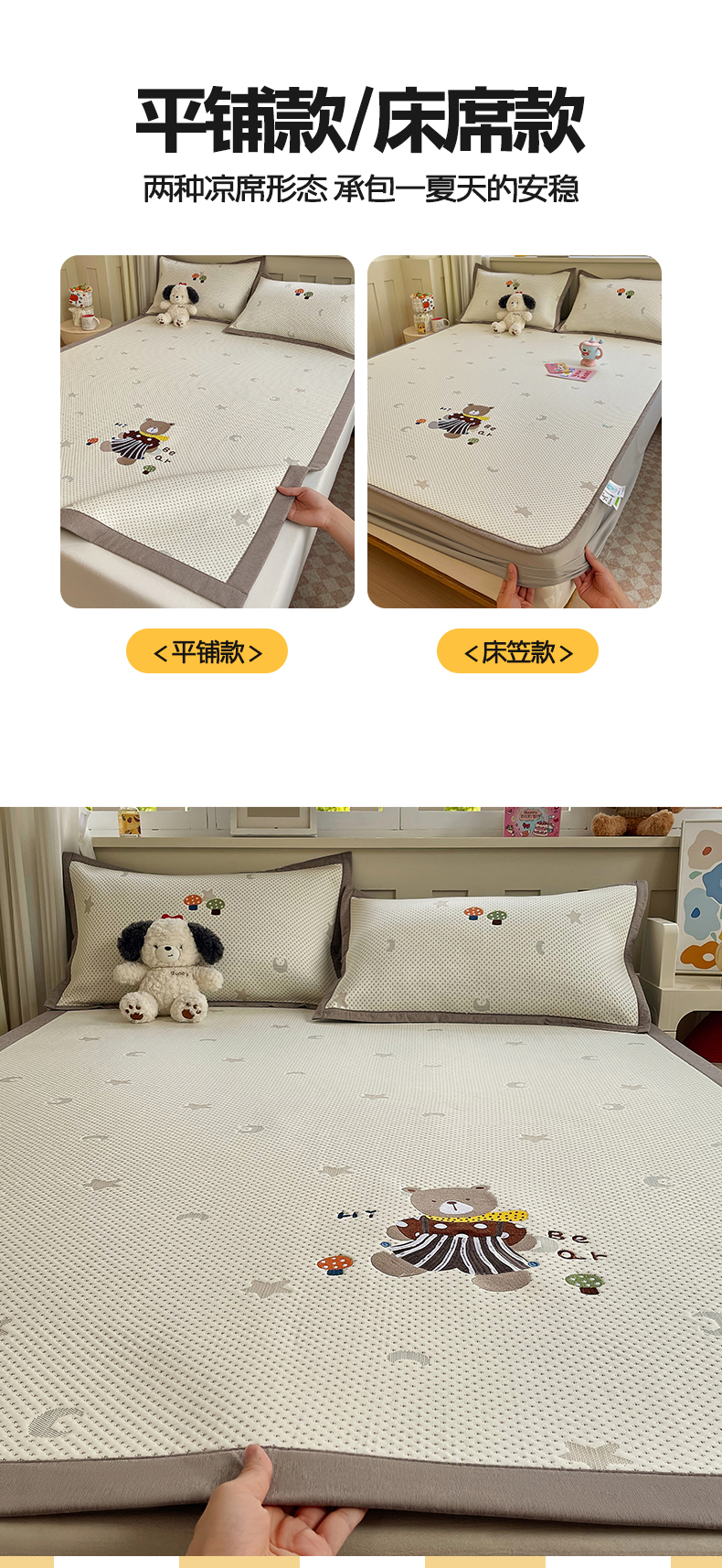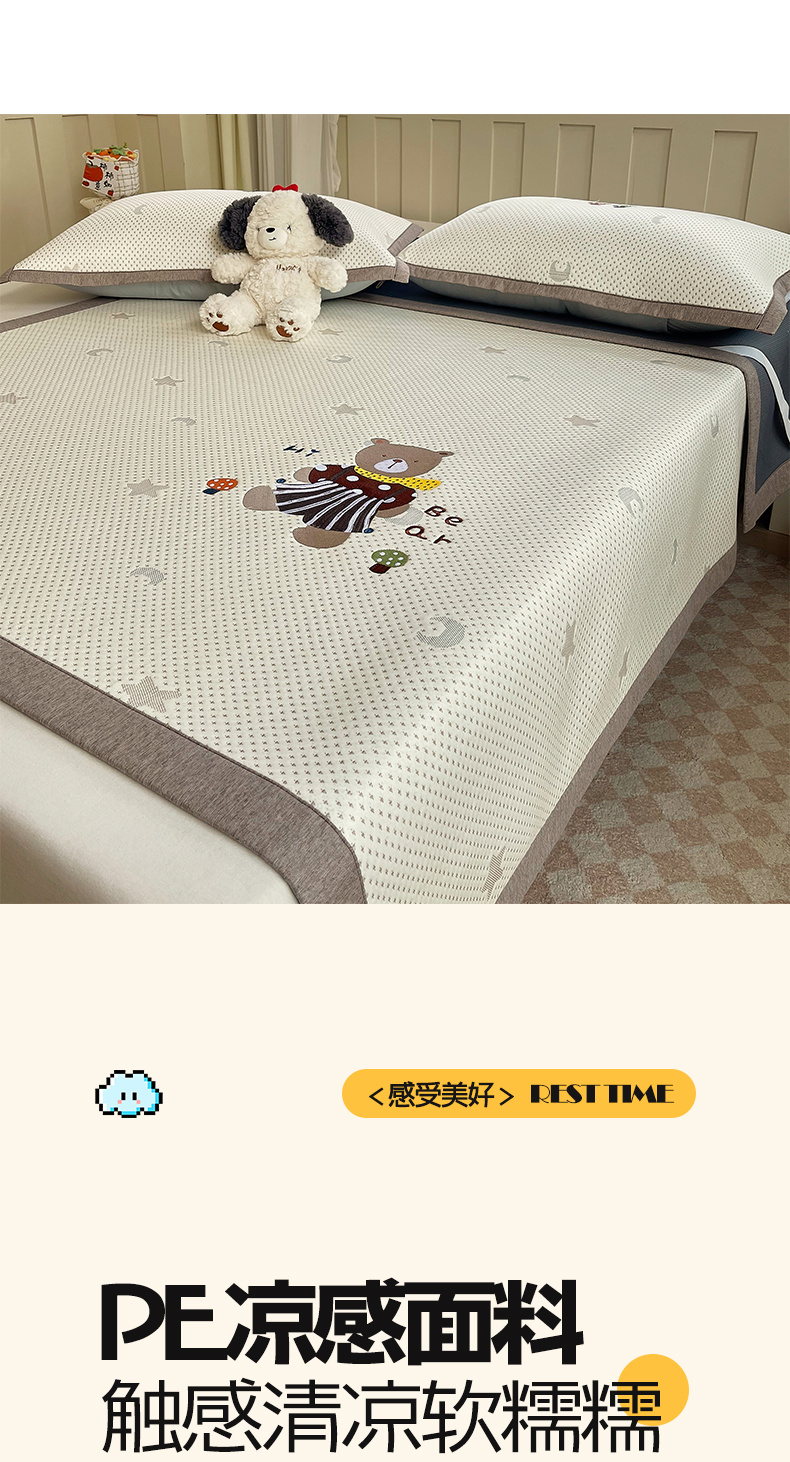 (总)帅露家纺 2026新款A类PE中分子卡通大版绣花软凉席席子,床笠款-波点日记,床笠款-粉屿森林,床笠款-蓝调企鹅,床笠款-懒懒兔,床笠款-星月织梦,平铺款-波点日记,平铺款-粉屿森林,平铺款-蓝调企鹅,平铺款-懒懒兔,平铺款-星月织梦