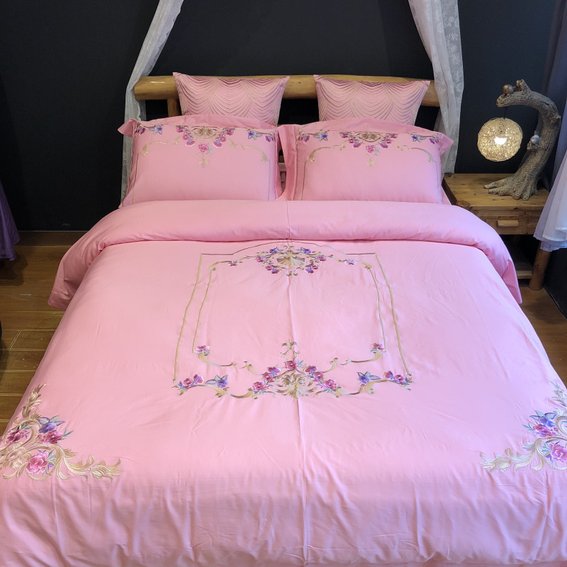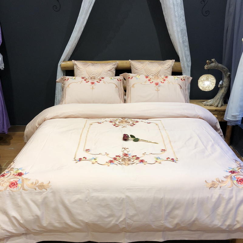 (总)玖玖爱家纺 2023新款120支贡缎长绒棉刺绣梦柔系列四件套,梦柔-香槟金,梦柔-香橙桔,梦柔-高级灰,梦柔-水蓝,梦柔-芙蓉玉