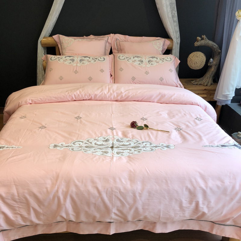总玖玖爱家纺 纯棉100支贡缎长绒棉刺绣被套三件套四件套加大四件套,白色,高级灰,卡其,蓝灰,绿色,浅桔,深蓝,紫豆沙