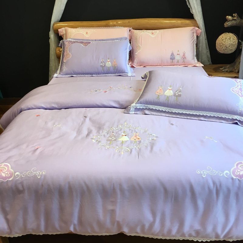 (总)玖玖爱 2023新款100支双股长绒棉刺绣四件套-宝莉系列,宝莉-戴妃黄,宝莉-粉豆沙,宝莉-茗翠蓝,宝莉-西域红,宝莉-紫灰