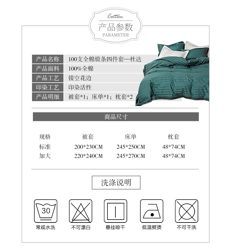 商品名称:涞澳家纺(新品)100支缎条系列四件套杜达