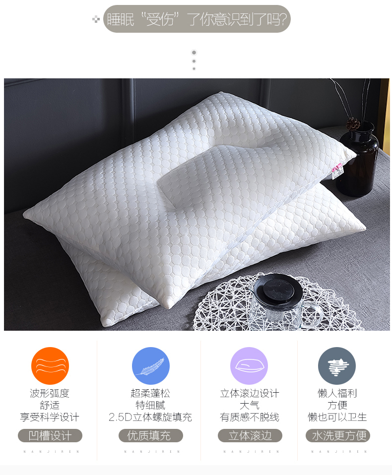 当前位置: 91家纺网 > 商品网购 > 枕头/枕芯/保健枕/颈椎枕 > 普通枕芯 > 赛格时代家居 针织水立方护颈枕