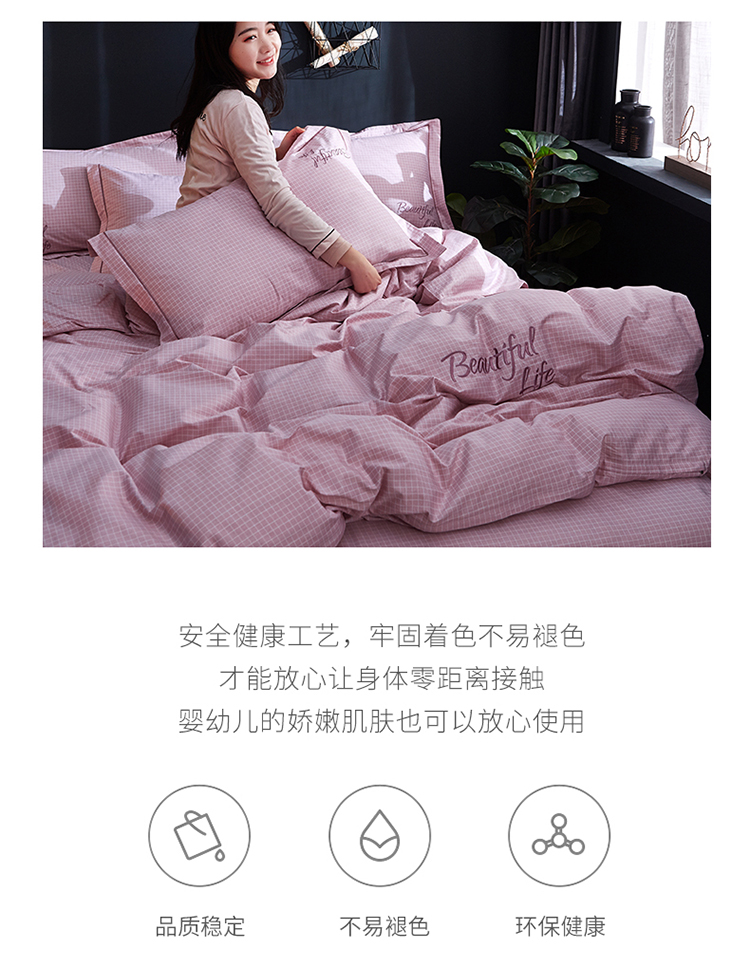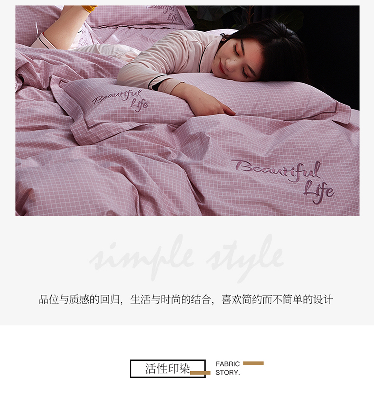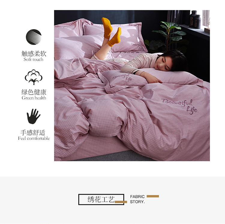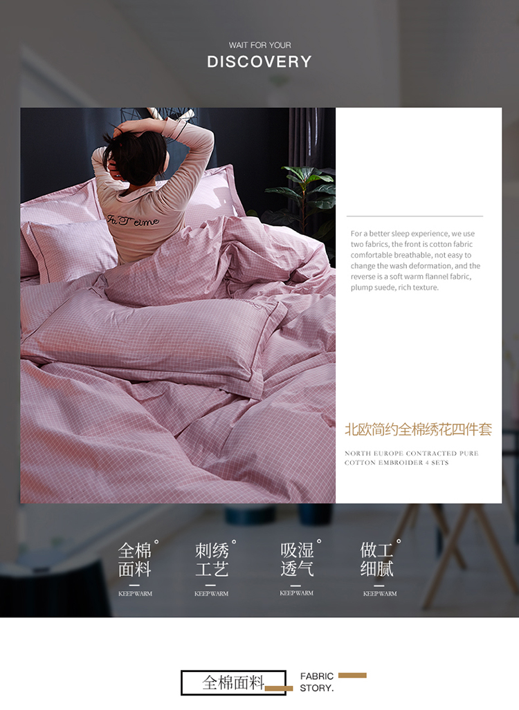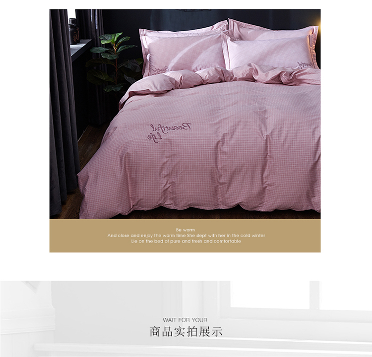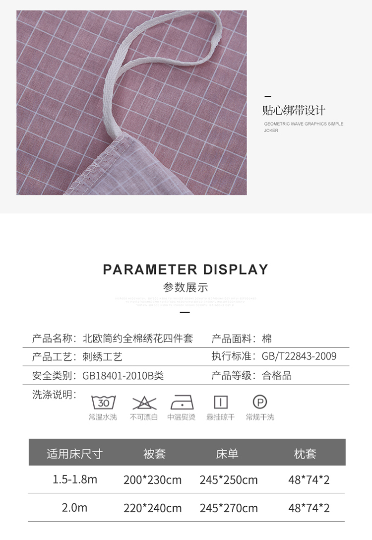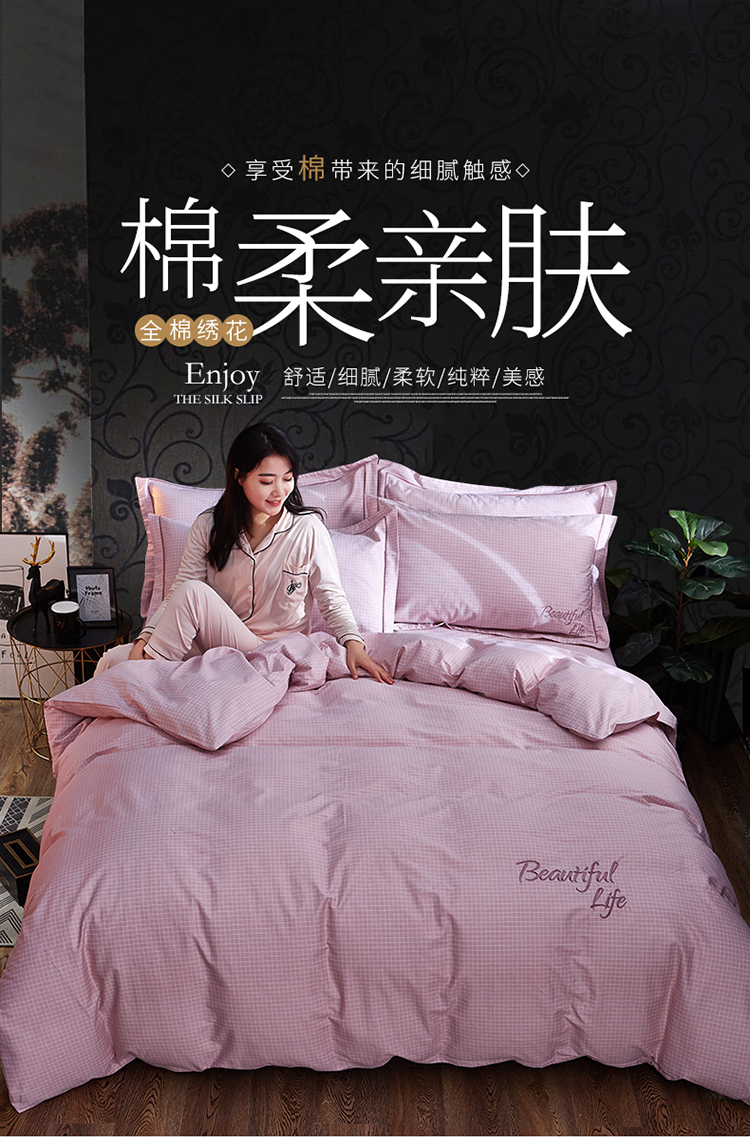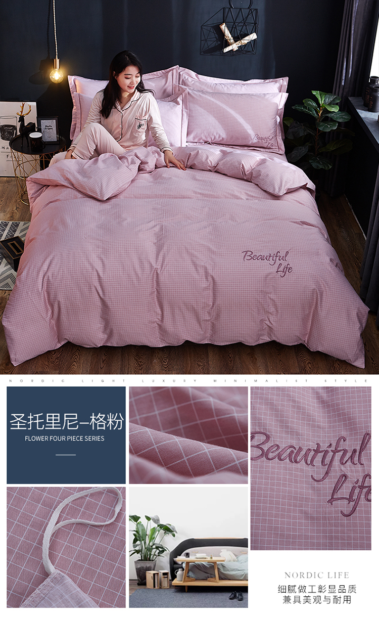 商品名称:雲归梦 北欧简约全棉绣花四件套 圣托里尼-格粉