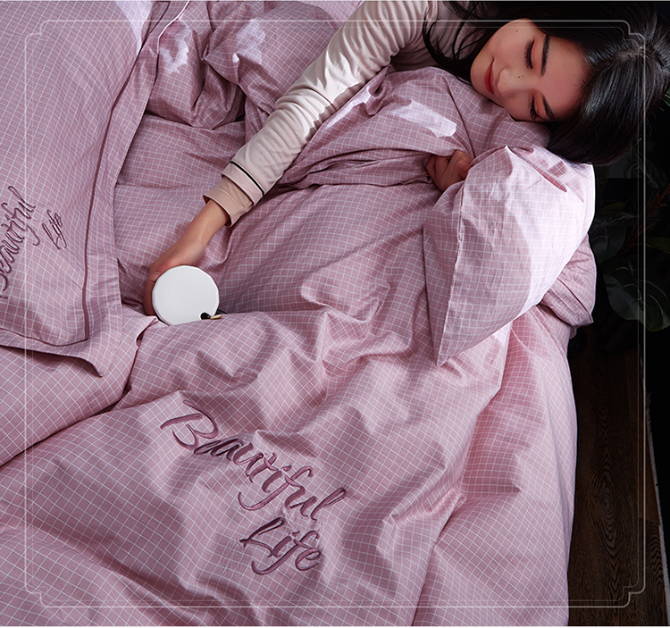 雲归梦 北欧简约全棉绣花四件套 圣托里尼-格粉