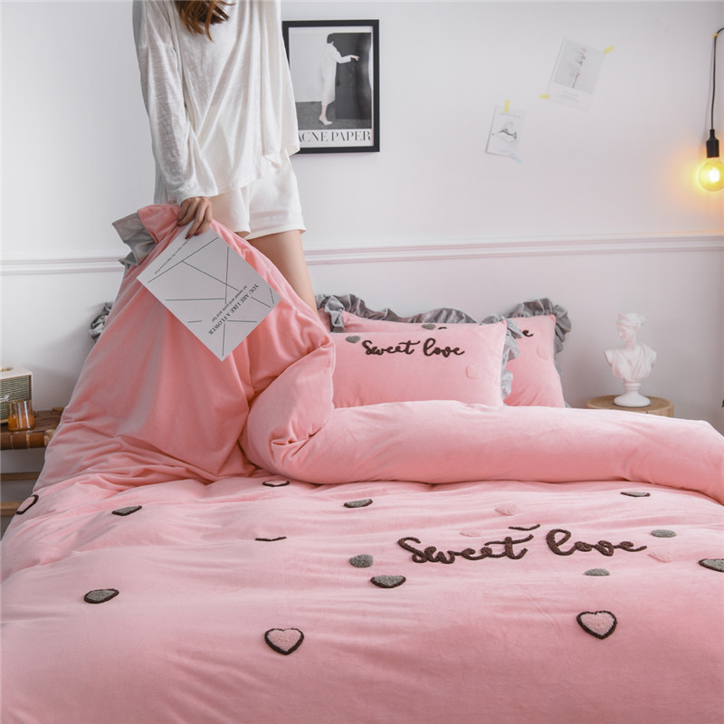商品名称:昔可 2019新款宝宝绒毛巾绣四件套模特图 甜心coco玉色