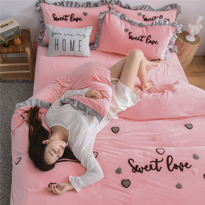 昔可 2019新款宝宝绒毛巾绣四件套模特图 甜心coco玉色