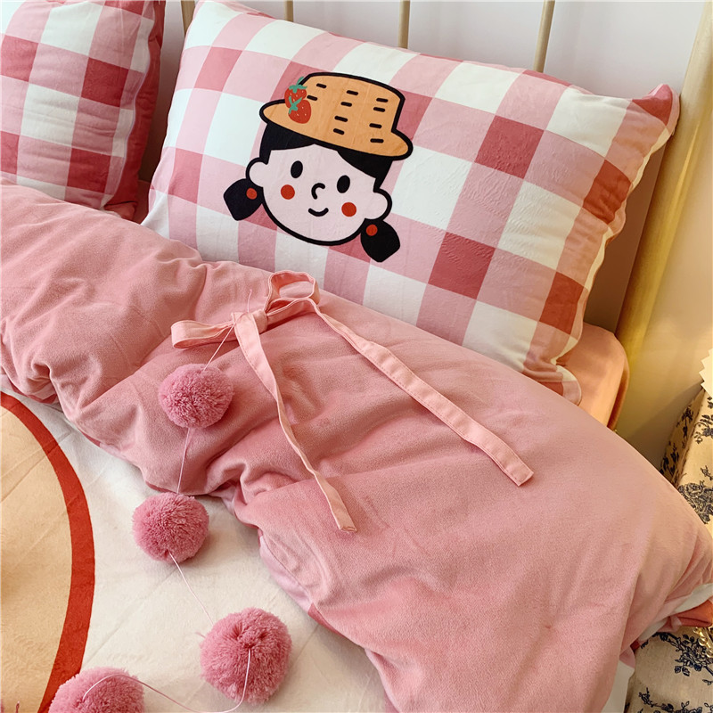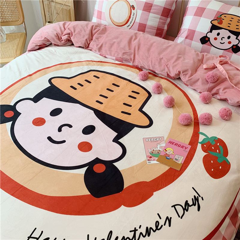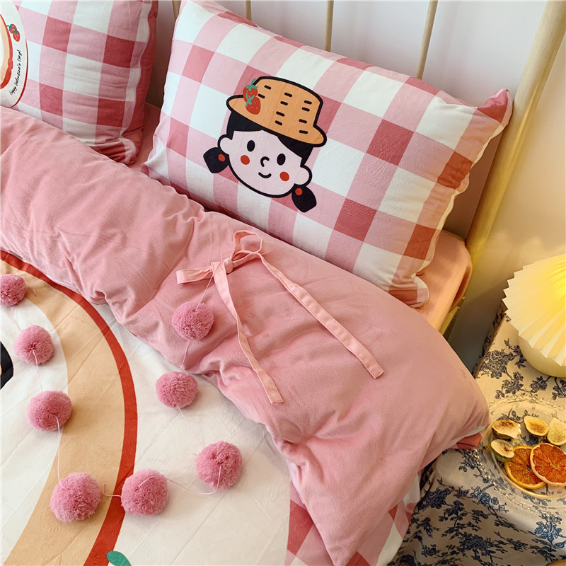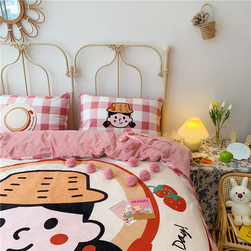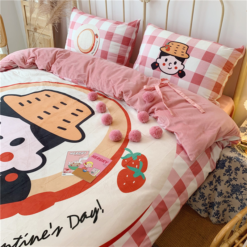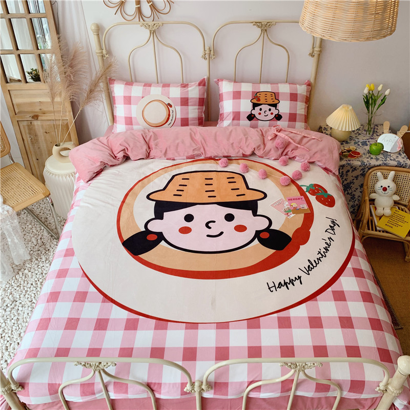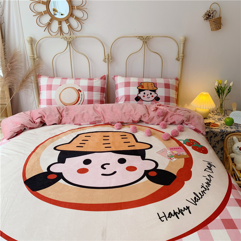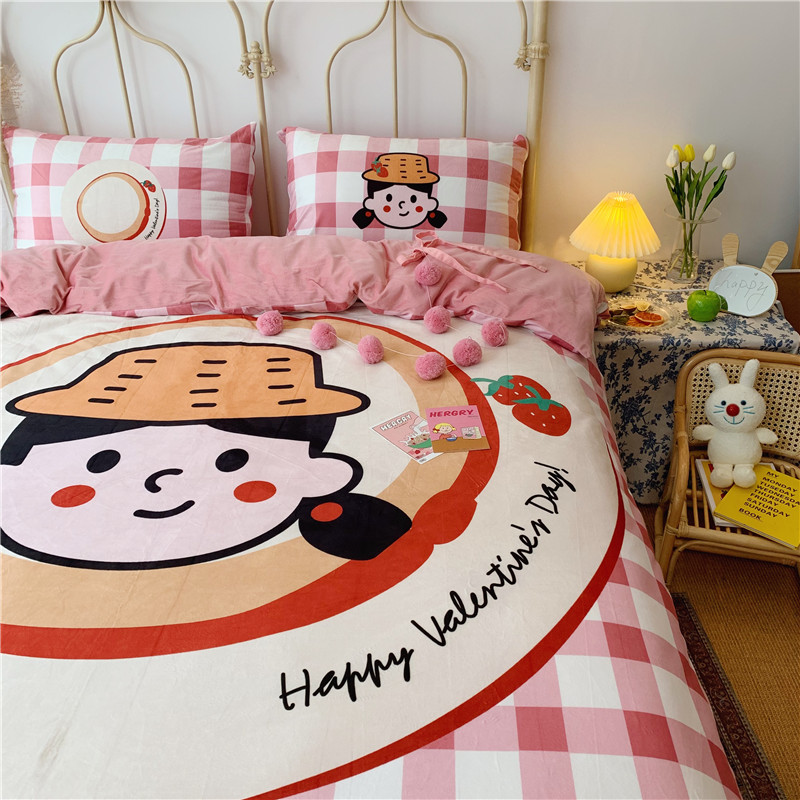 (总)昔可家纺 2024新款印花牛奶绒四件套系列-洛丽塔风,萝莉小兔,小熊烘焙屋,小熊玩偶屋