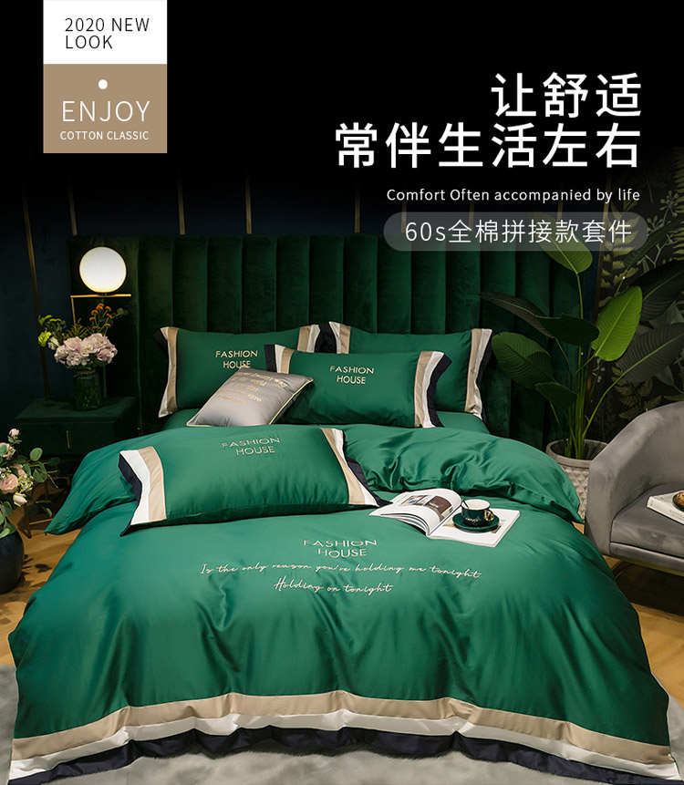 (总)爱缦 2020新款双面60S长绒棉绣花拼接款四件套