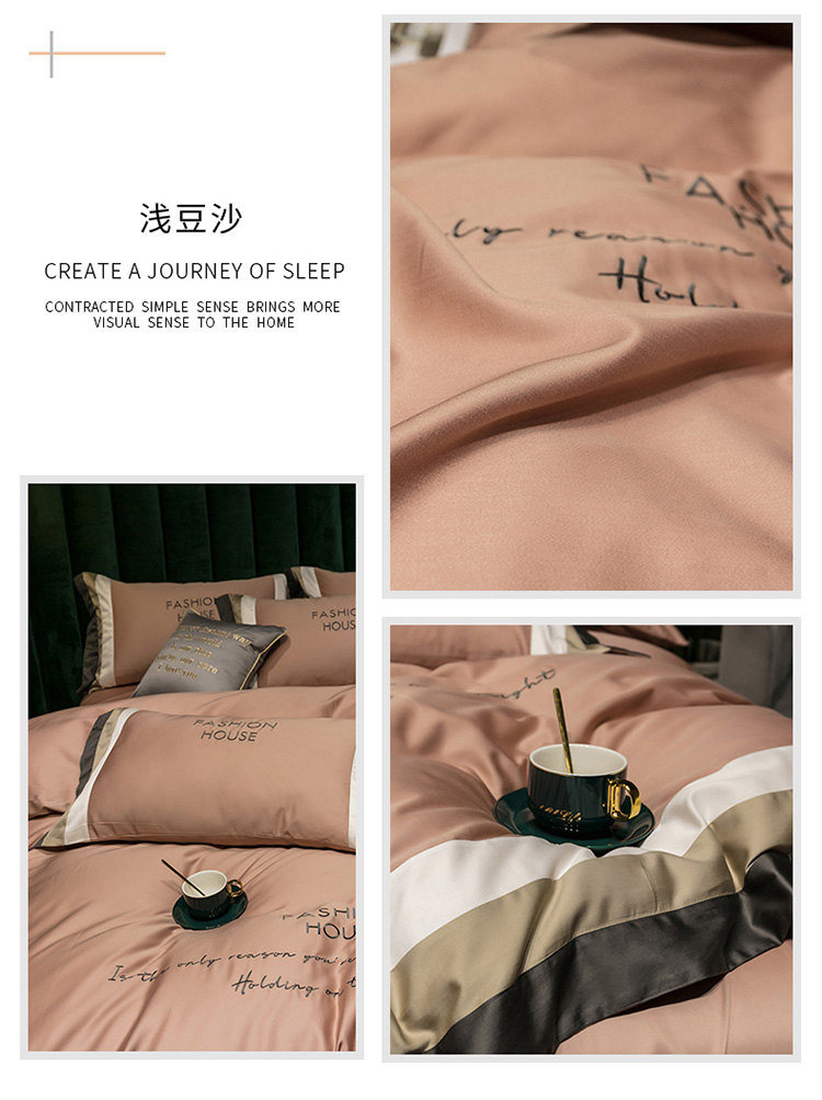 (总)爱缦 新款60支莱赛尔四件套-至真系列,蓝米驼,米白粉,浅紫,玉粉