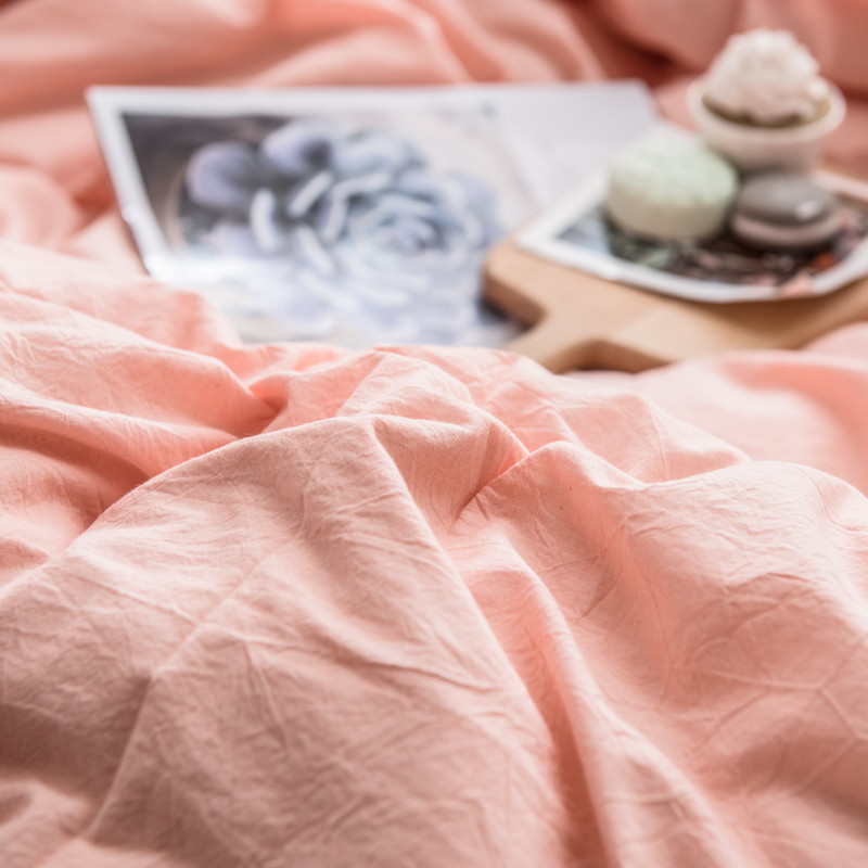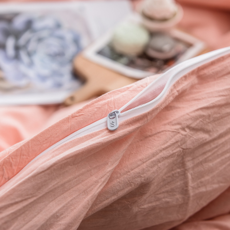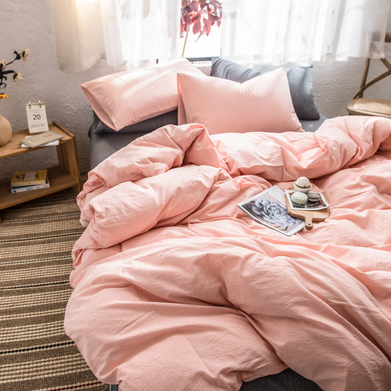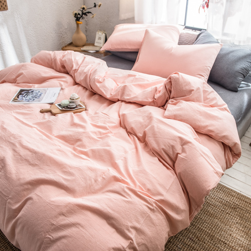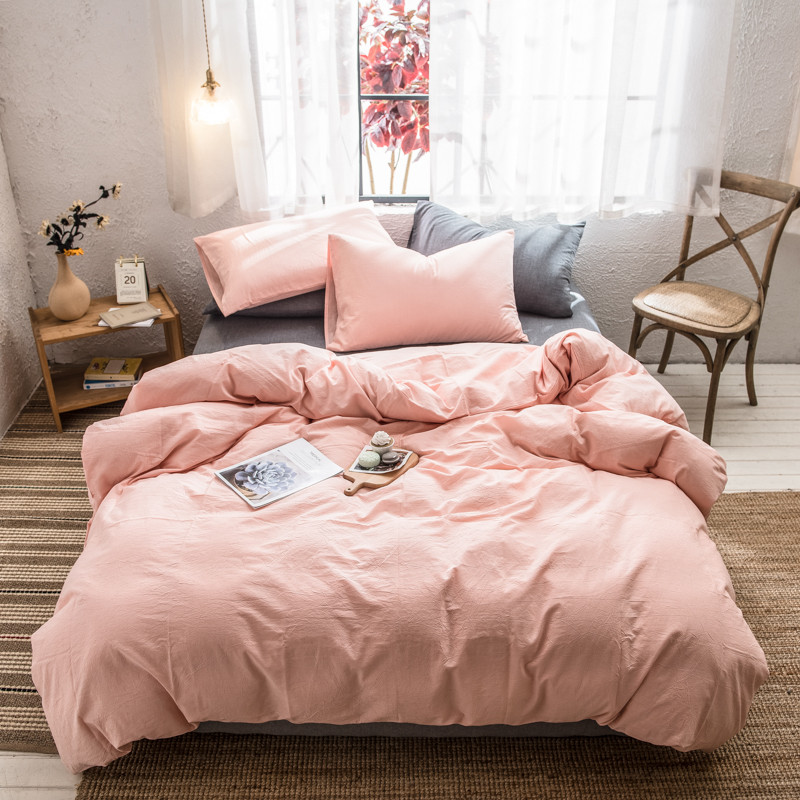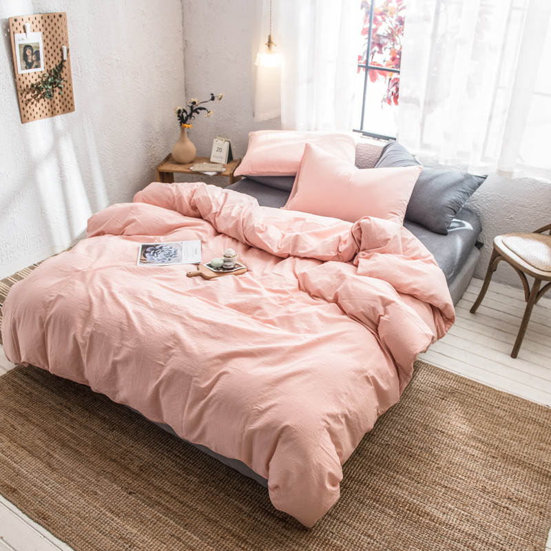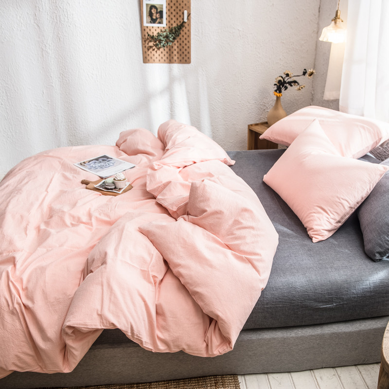 佳梦达 2020新款全色织全棉水洗双拼单被套 浅粉灰