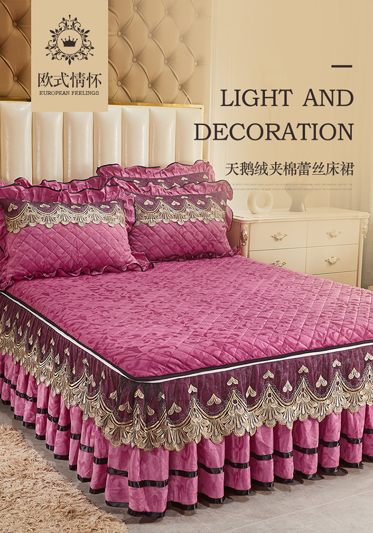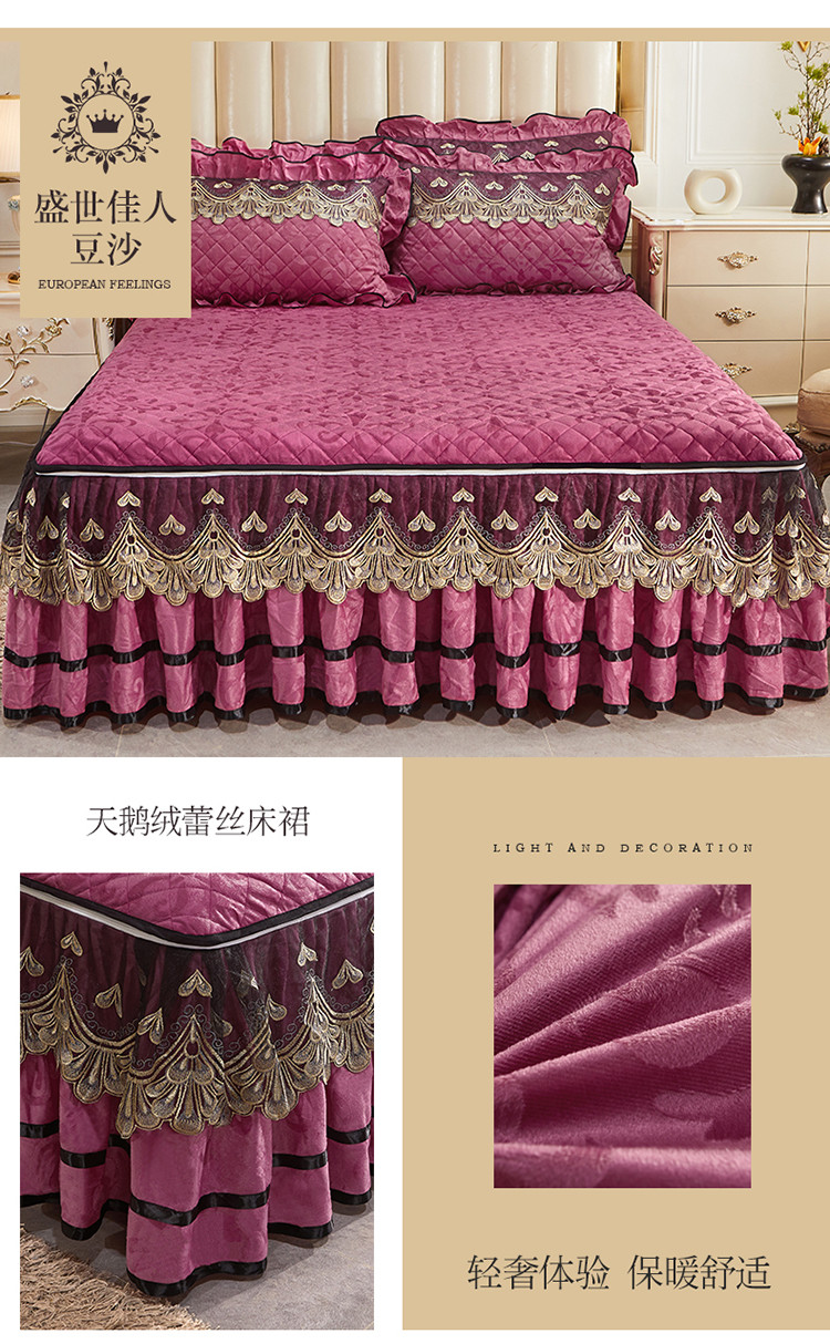 商品名称:网红馆 2025新款天鹅绒盛世佳人单品蕾丝床裙 豆沙