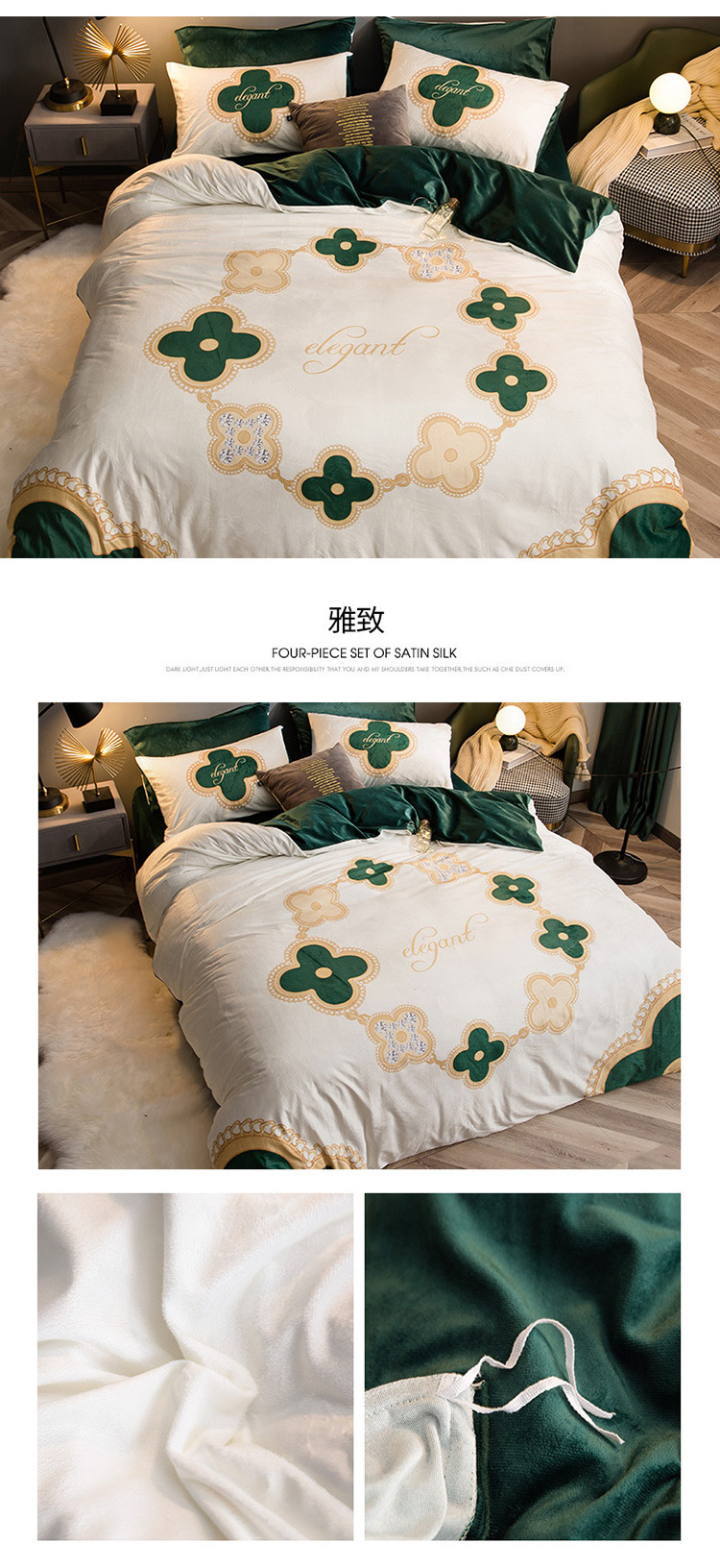 (总)涵宸家纺 2025新款全棉磨毛刺绣四件套系列-普莉,普莉-粉,普莉-绿,普莉-奶白