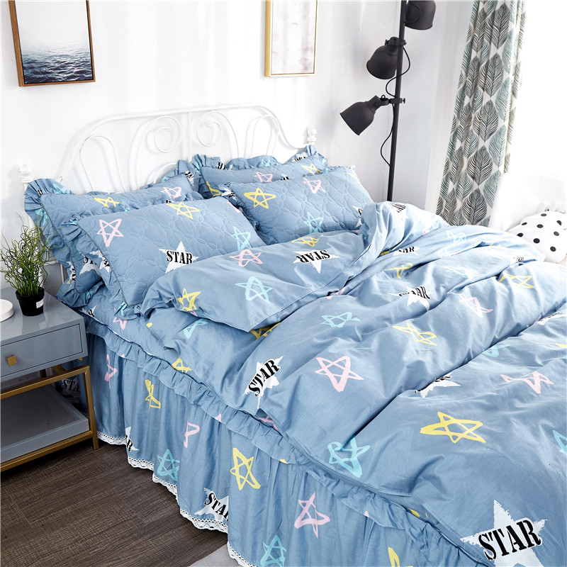 商品名称:纽缦 2021新款上下边夹棉床裙四件套 星梦缘蓝