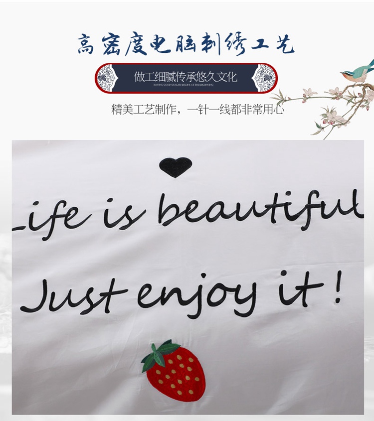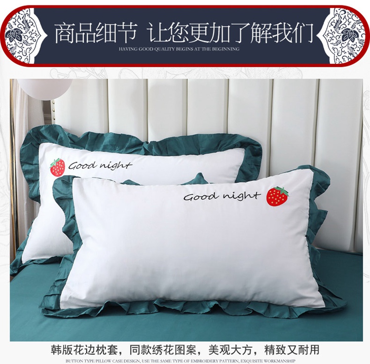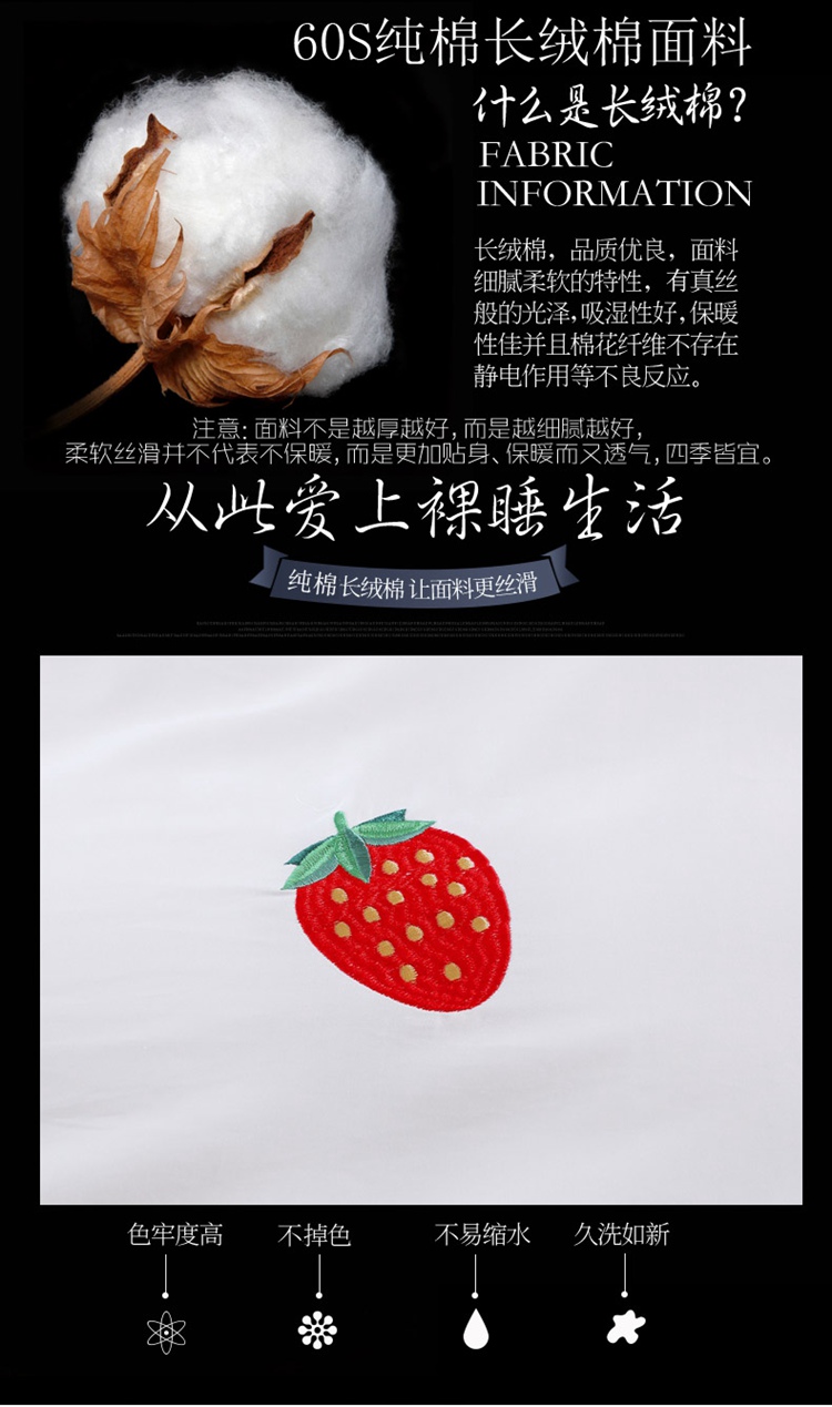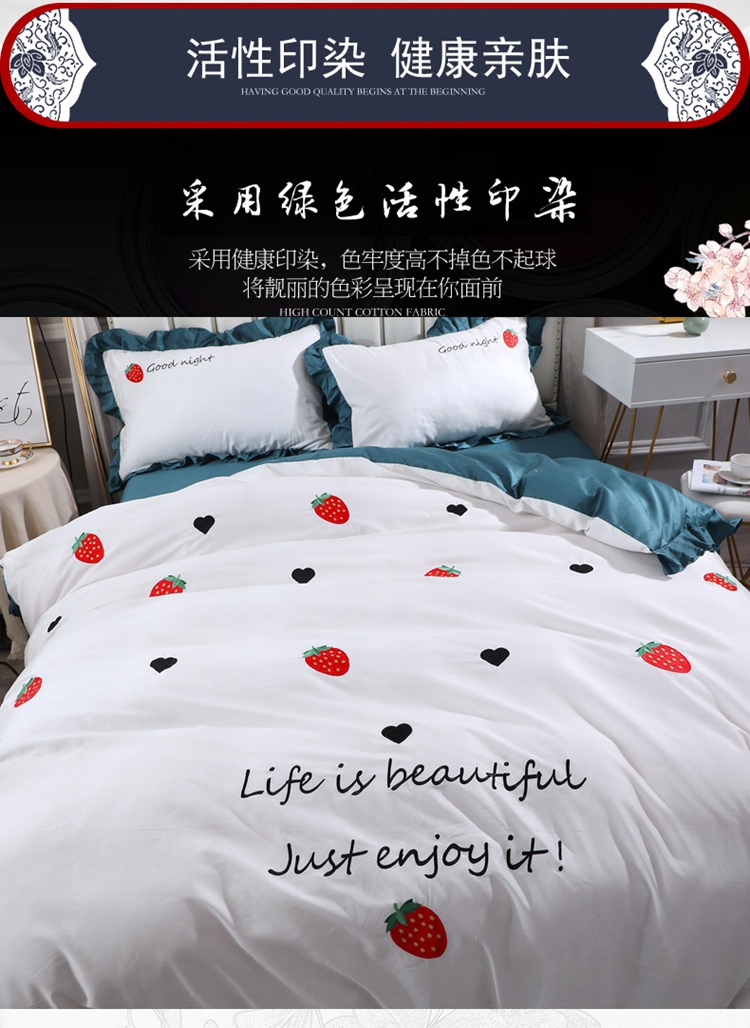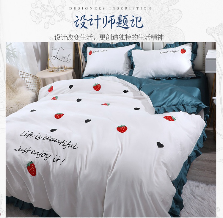 商品名称:全棉60支贡缎长绒棉公主风韩版绣花四件套 夕夕草莓-宝石蓝