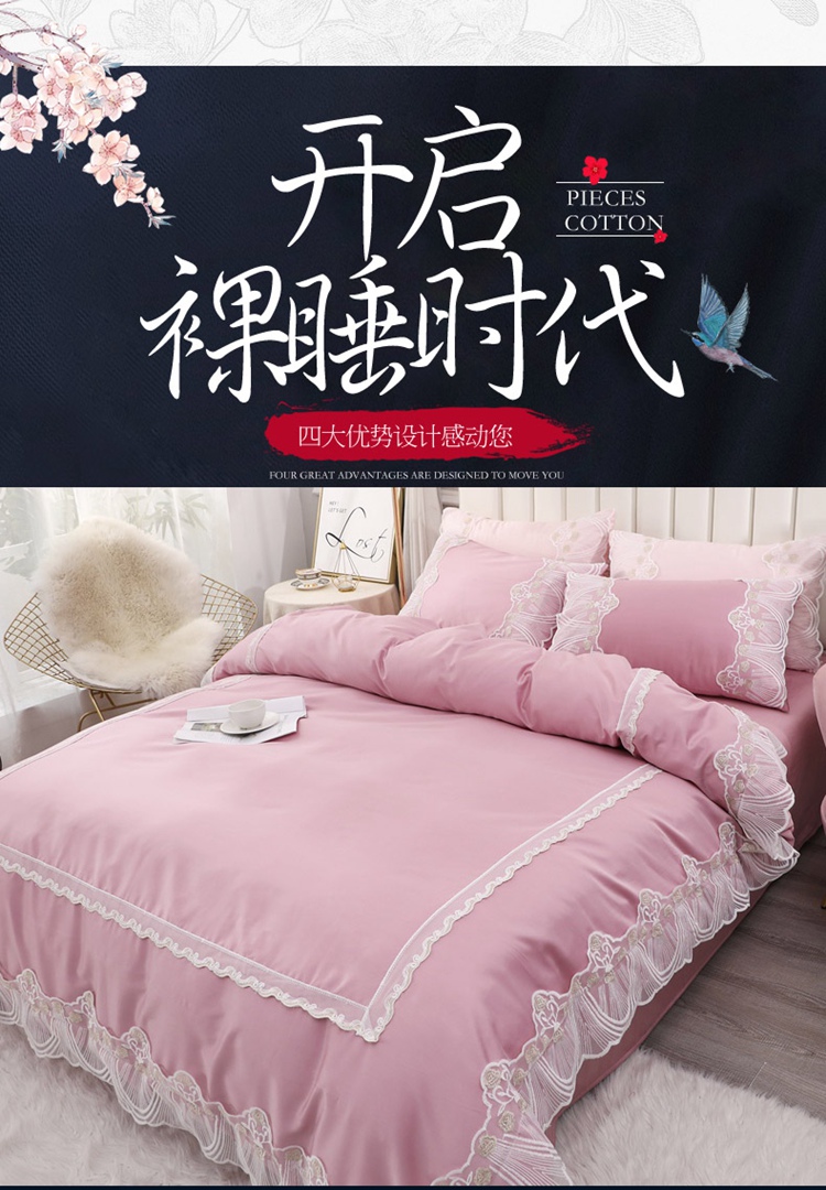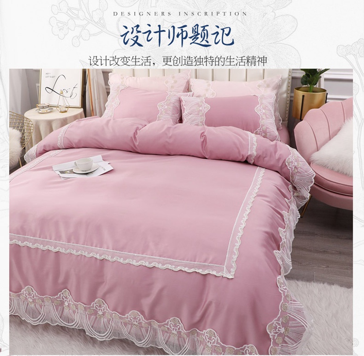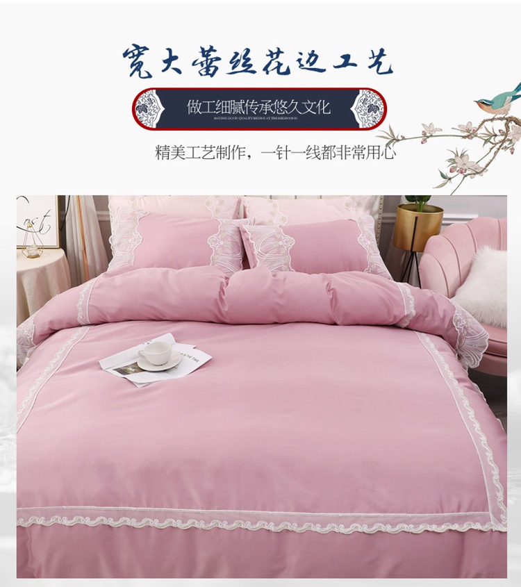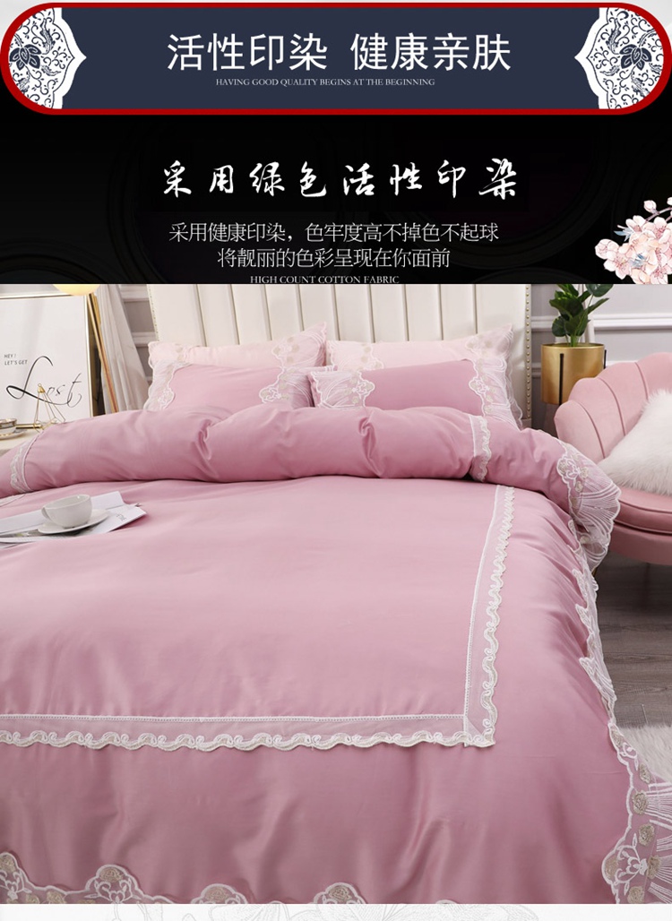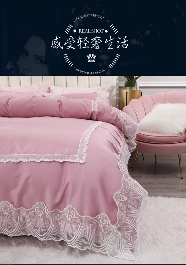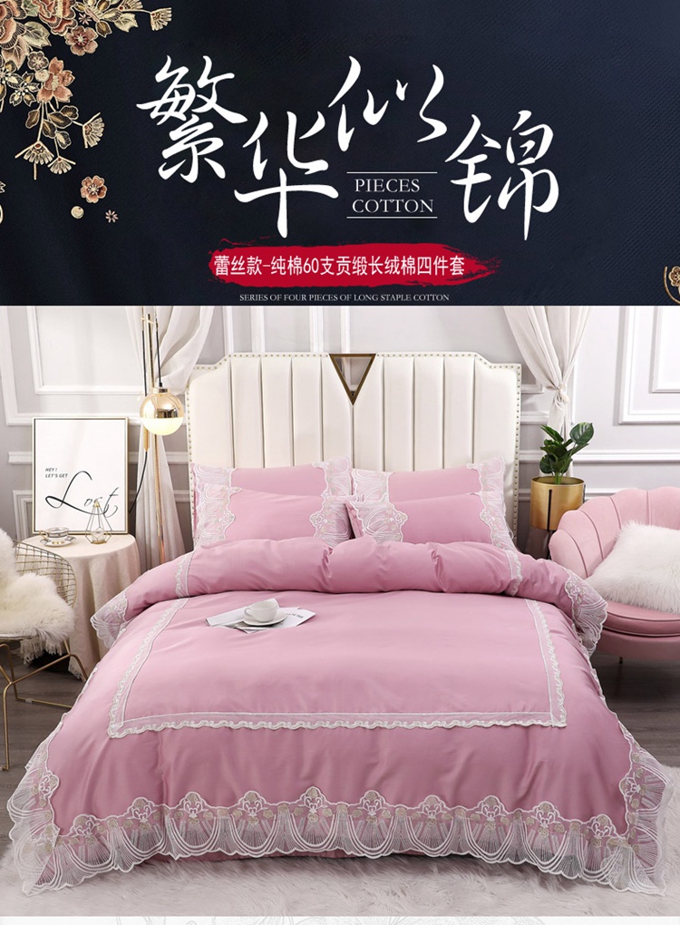 2021全棉60贡缎长绒棉蕾丝四件套 艾丽莎-浅豆沙