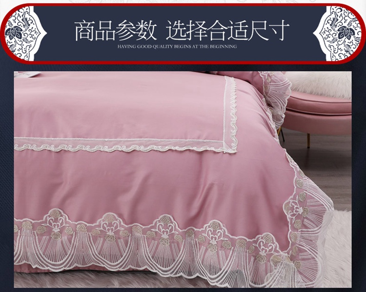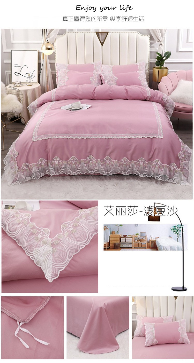 商品名称:2021全棉60贡缎长绒棉蕾丝四件套 艾丽莎-浅豆沙