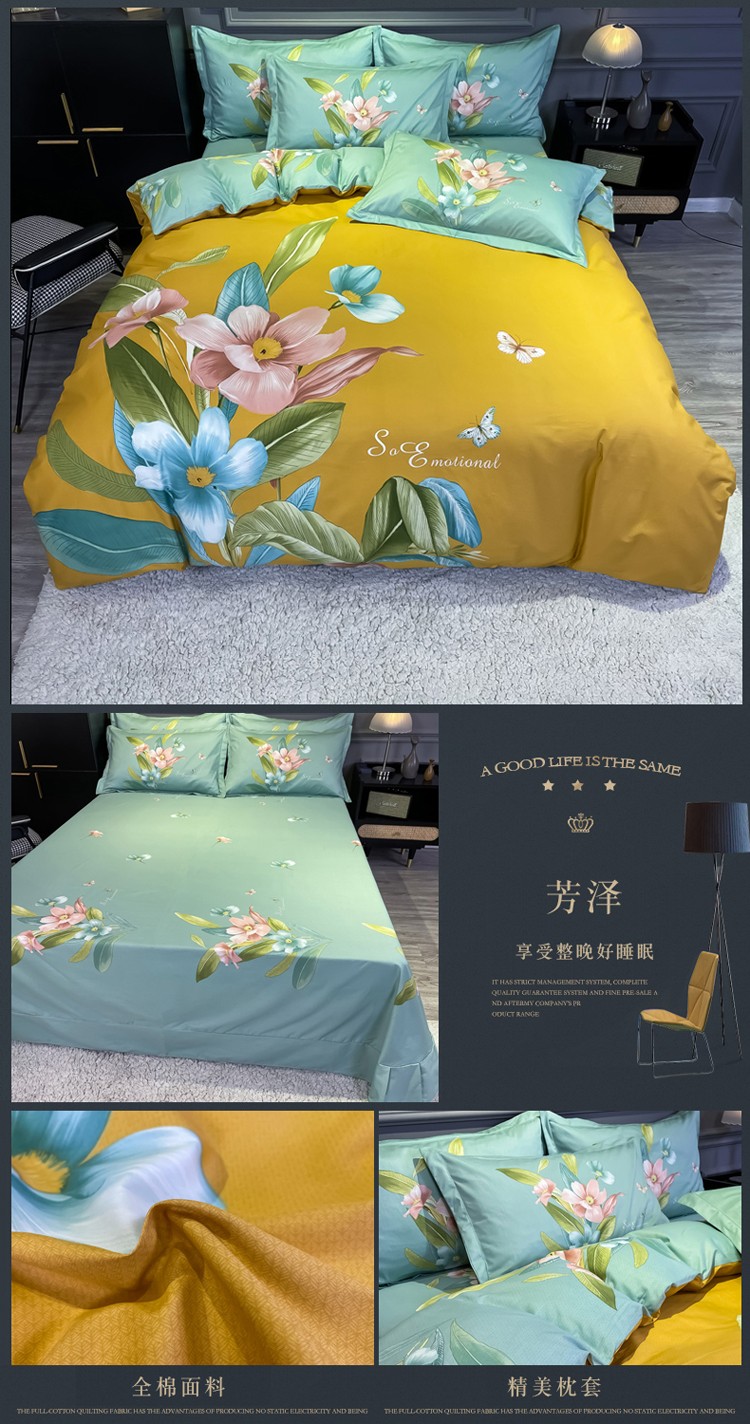 当前位置: 91家纺网 > 商品网购 > 床品套件 > 四件套 > 全棉活性四件套 > 金爱家 2021新款全棉活性花卉系列四件套 芳泽