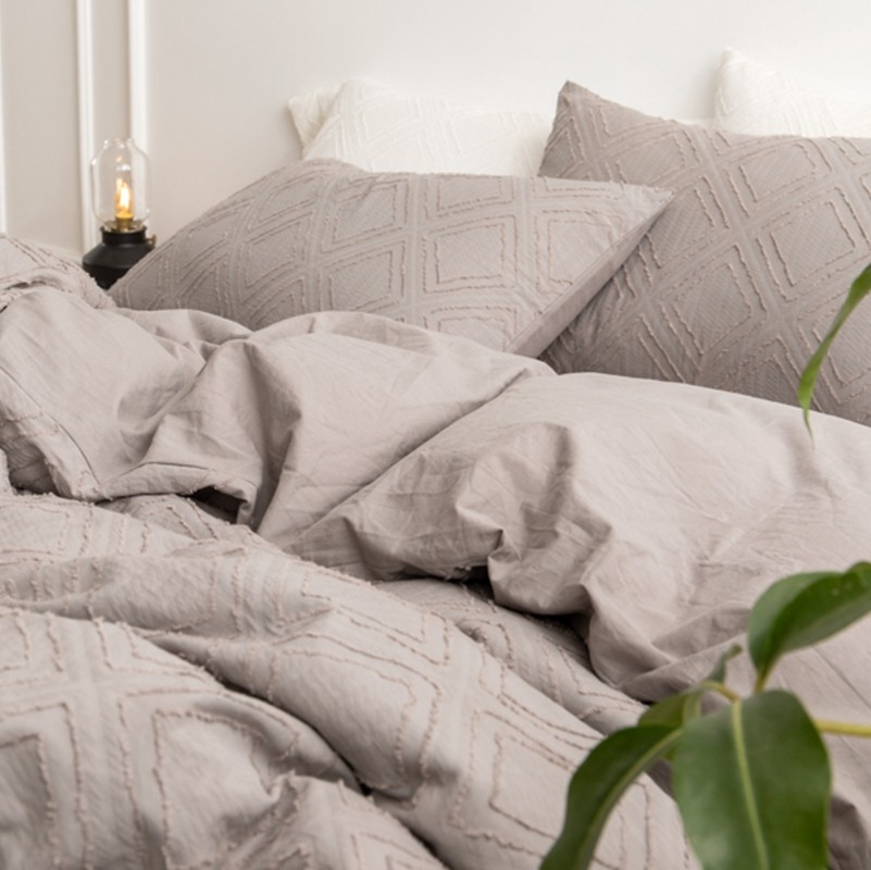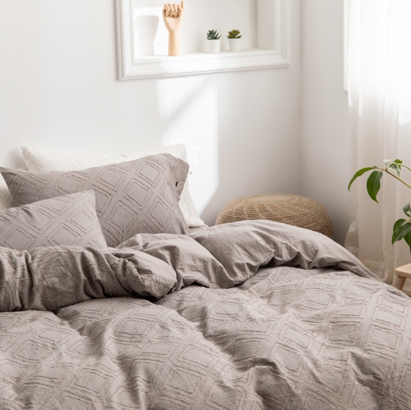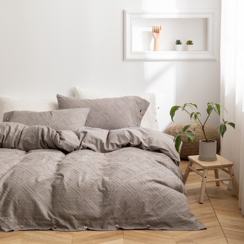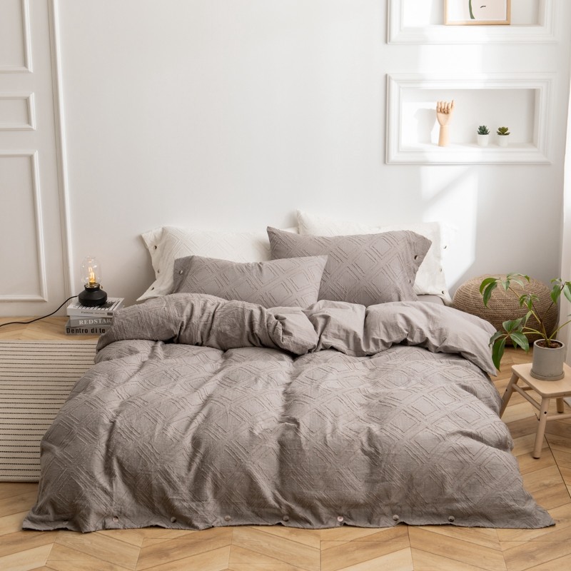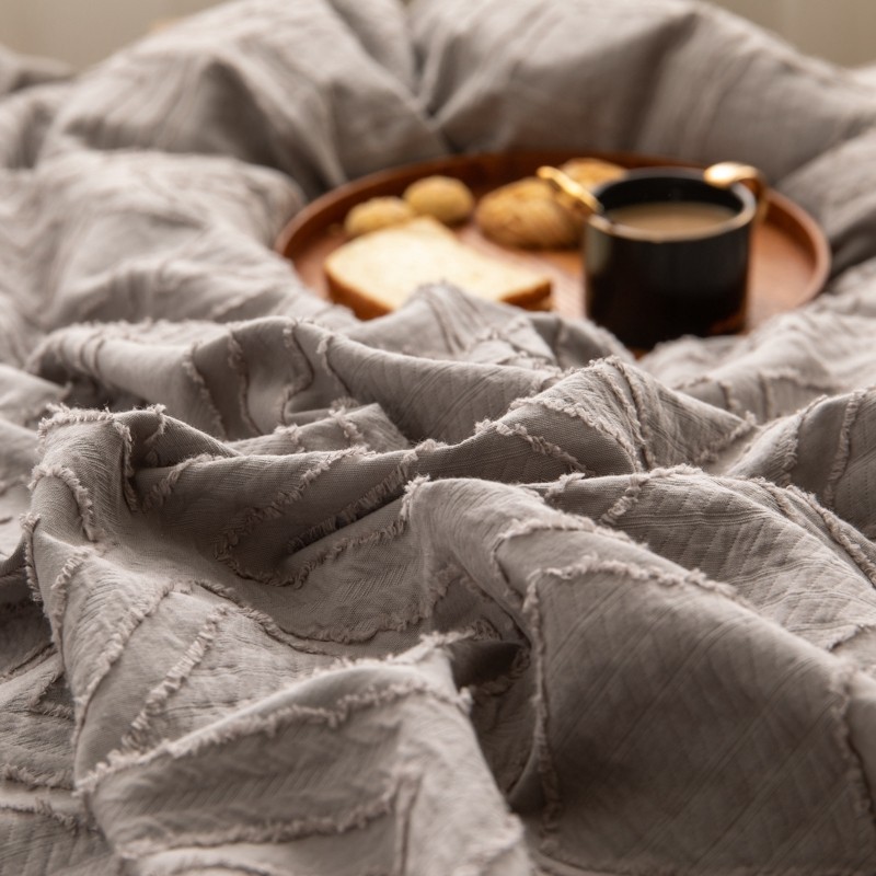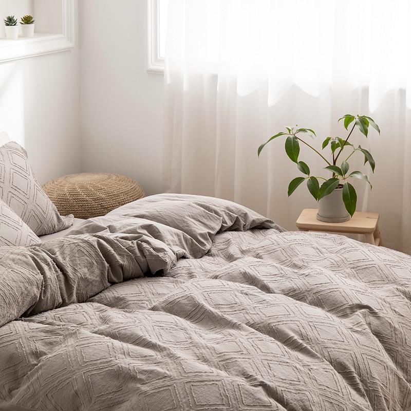 (总)简家居 2025新款亲肤舒适棉麻床盖三件套,棉麻提花
