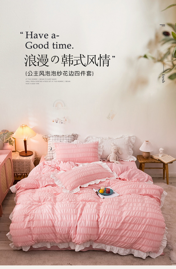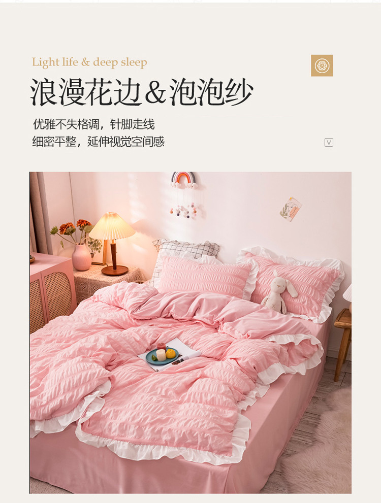 当前位置: 91家纺网 > 商品网购 > 床品套件 > 四件套 > 水洗棉四件套 > 逸尚阁 2021新款泡泡纱四件套 公主粉