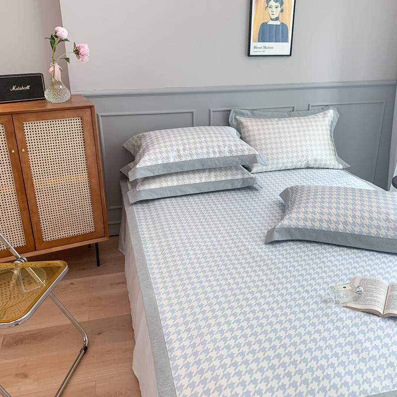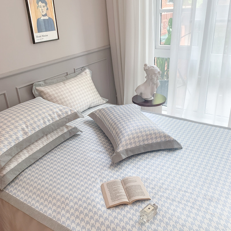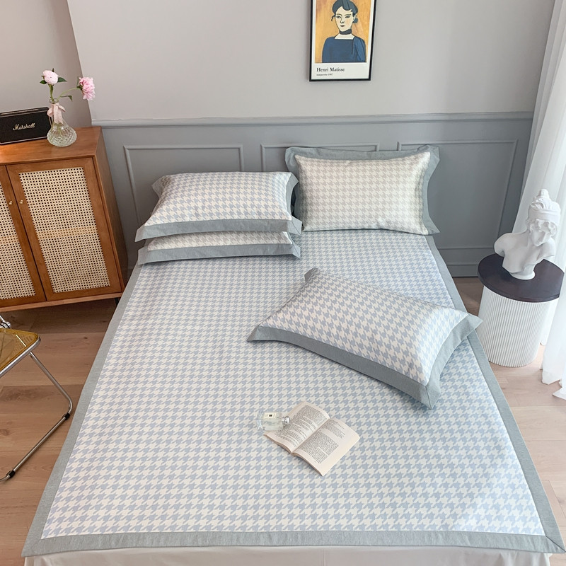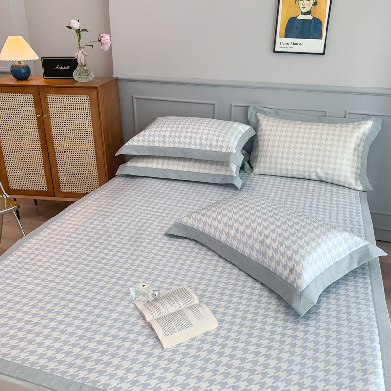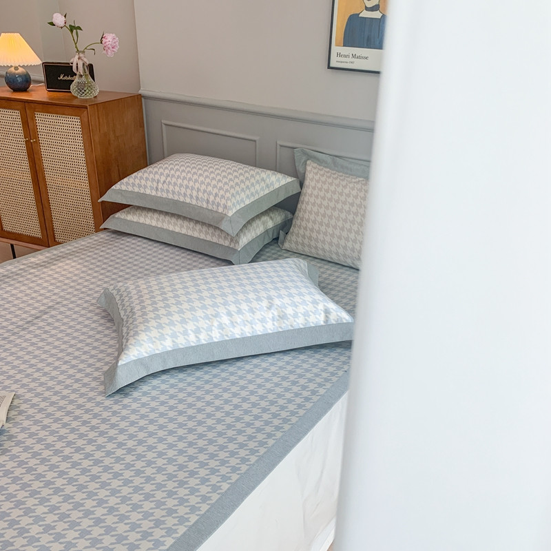 当前位置: 91家纺网 > 商品网购 > 床上用品 > 凉席 > 冰丝席 > 时年家纺 2021新款千鸟格和肌理纹水洗冰露丝养生凉席 千鸟格-海蓝