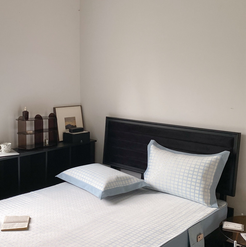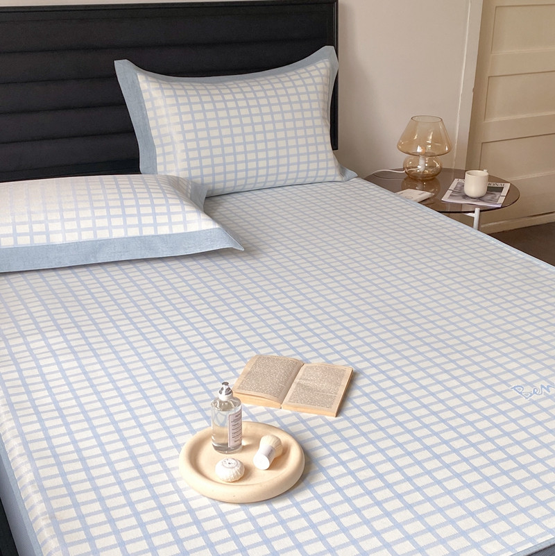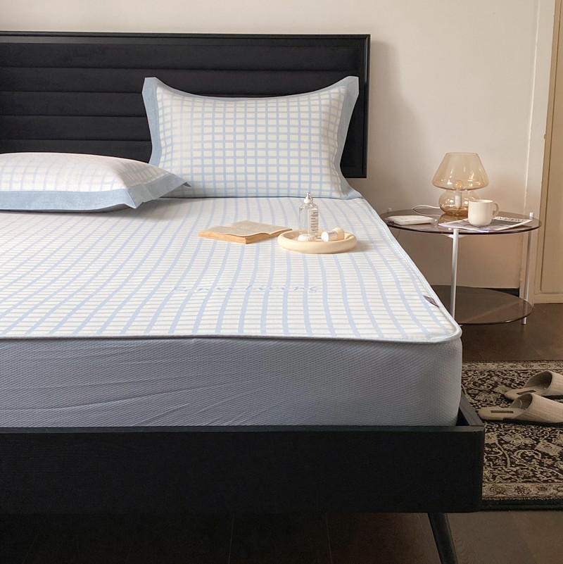 2021新款高端可水洗冰丝席提花床笠款 格雅-天空蓝