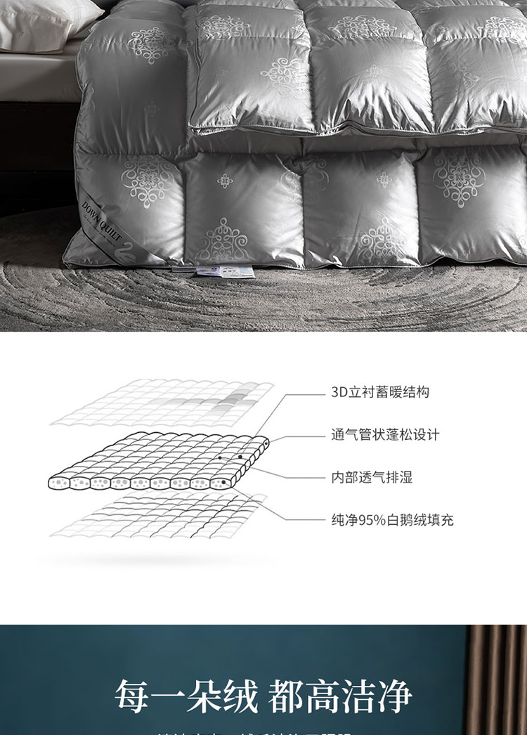 商品名称:绒研羽绒 2025新款魅力人生真丝大提花鹅绒被灰色