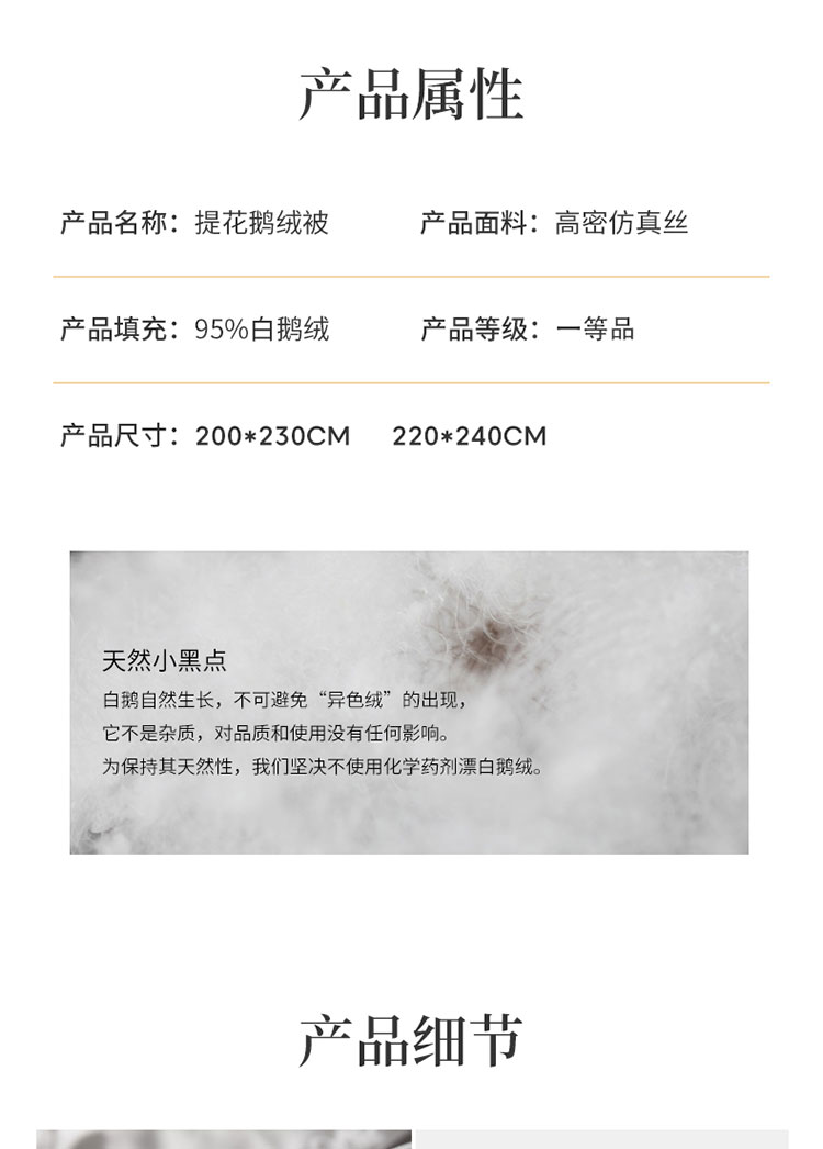 220x240cm填充:白鹅绒重量:6斤