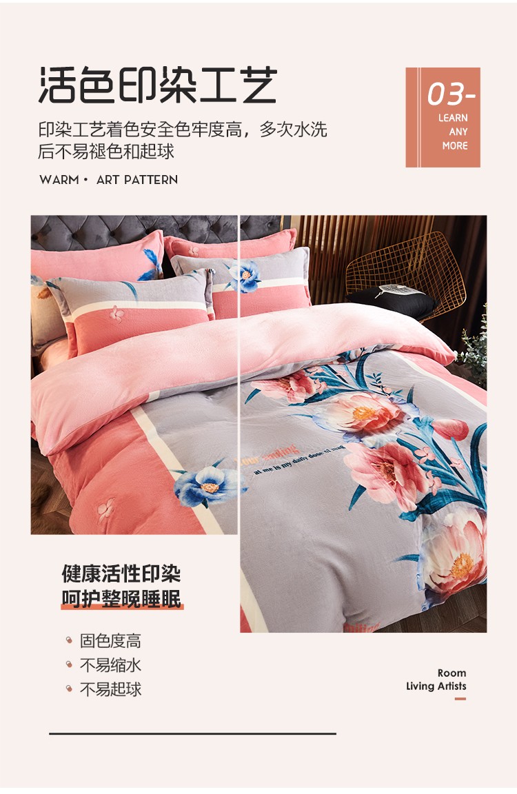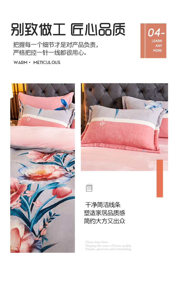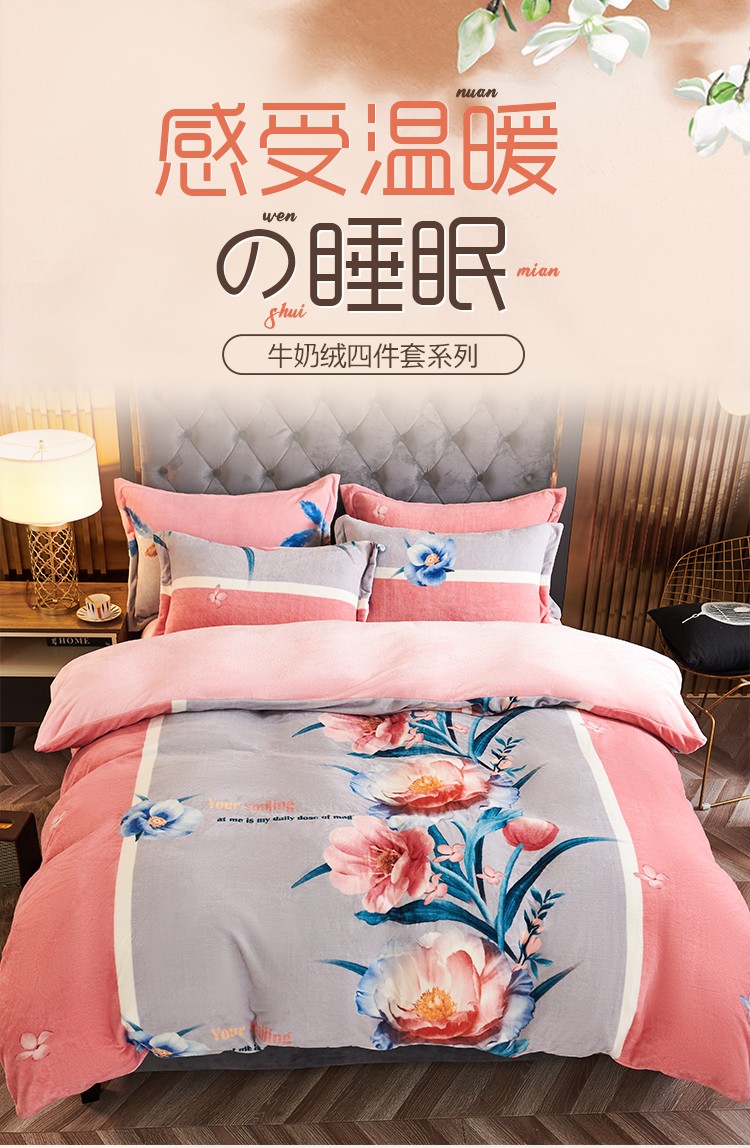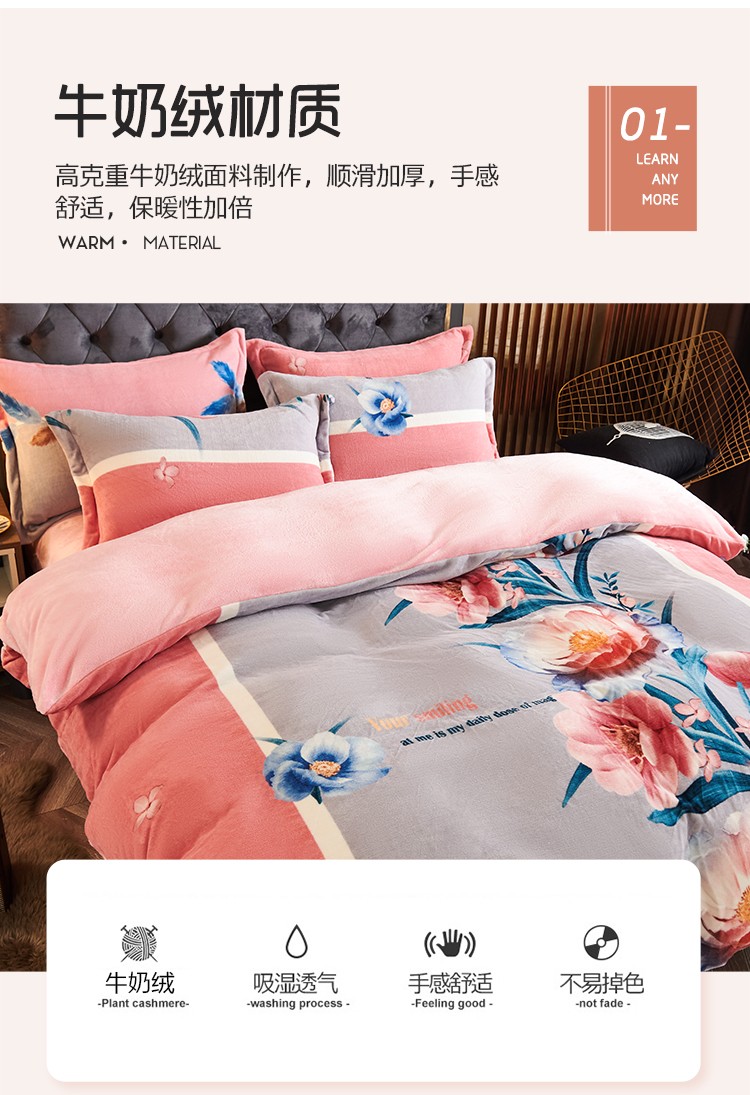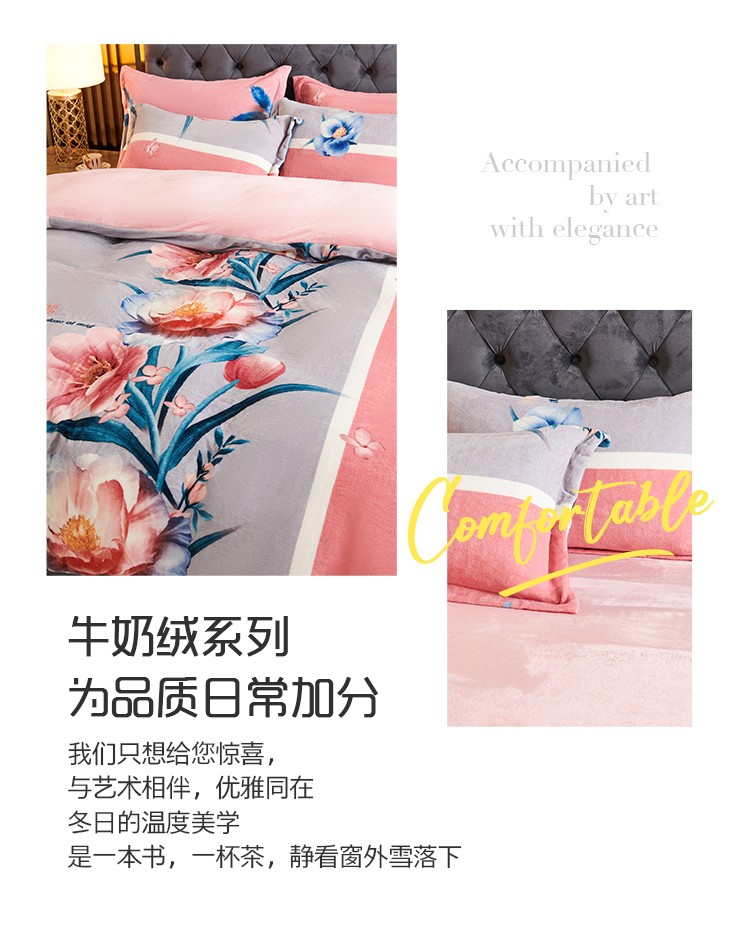 青竹苑 2021新款牛奶绒印花四件套 情定良缘