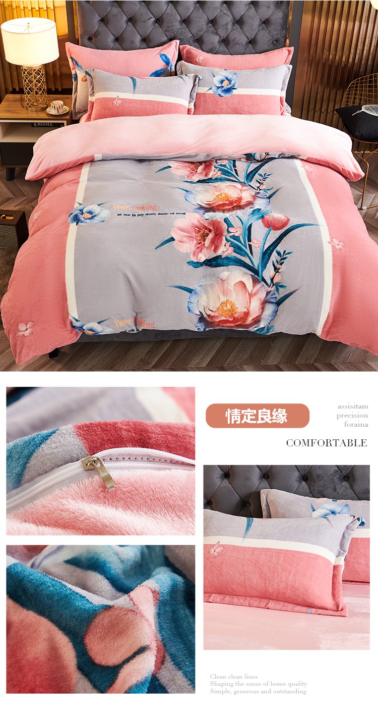 商品名称:青竹苑 2021新款牛奶绒印花四件套 情定良缘