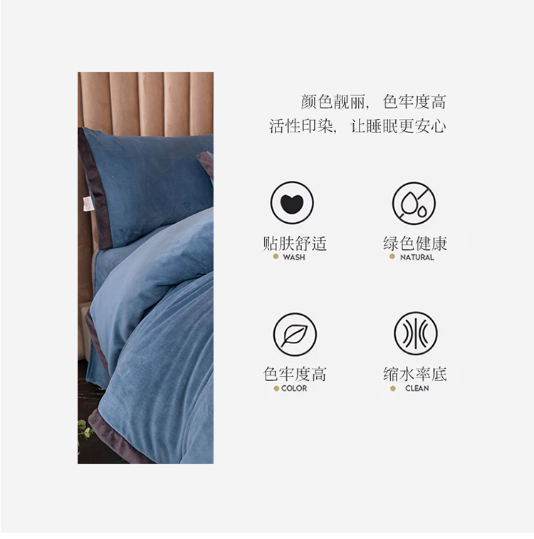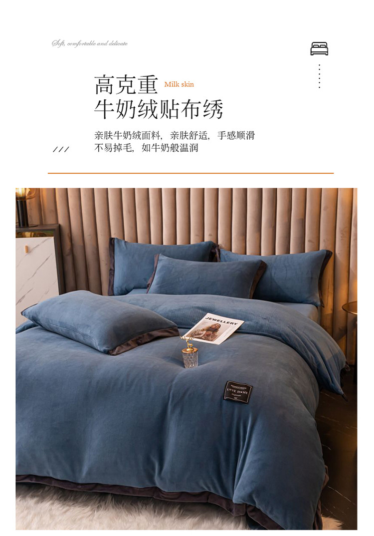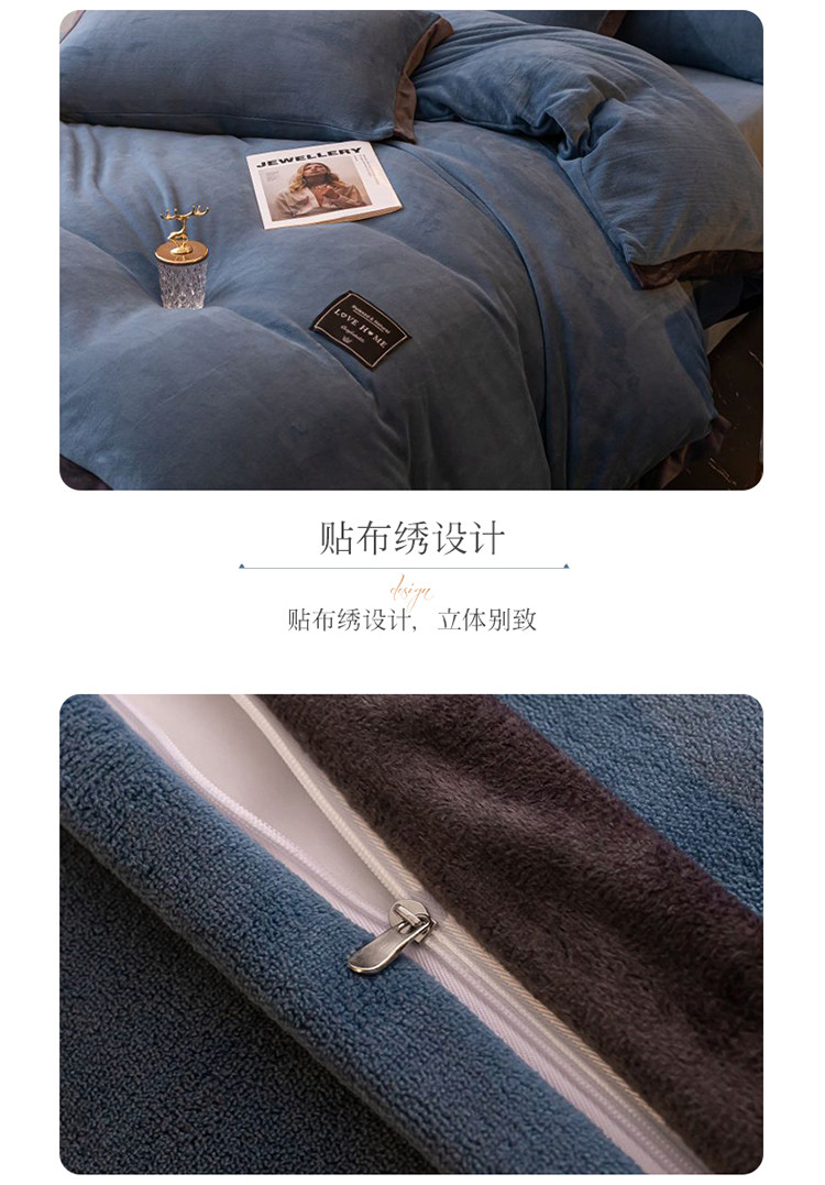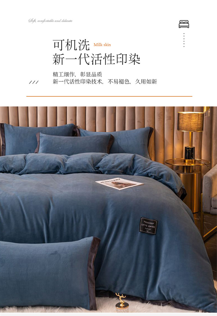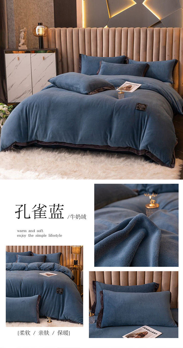大米家居 新款高克重宽边牛奶宝宝绒法莱亲肤绒四件套荣耀孔雀蓝