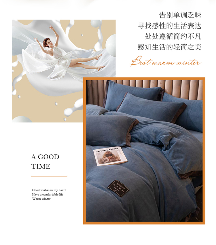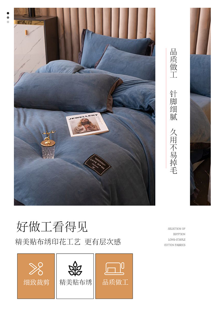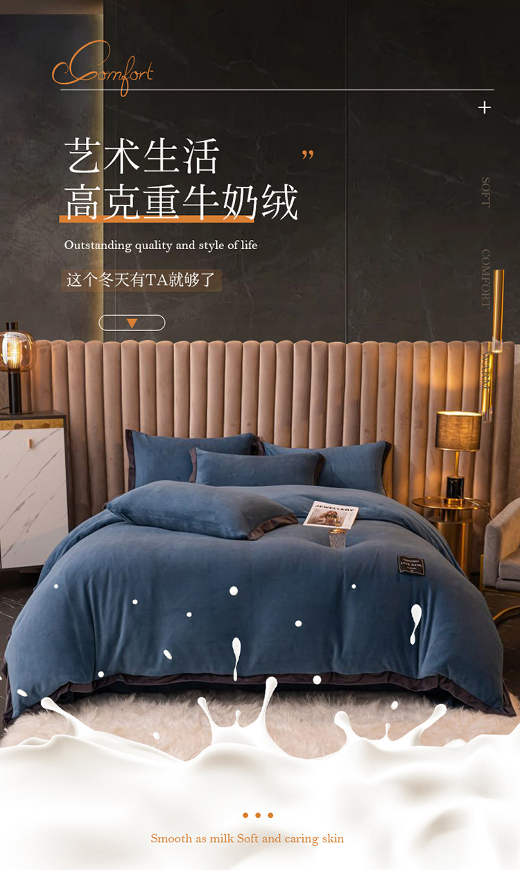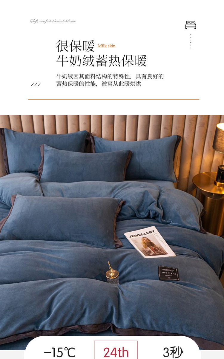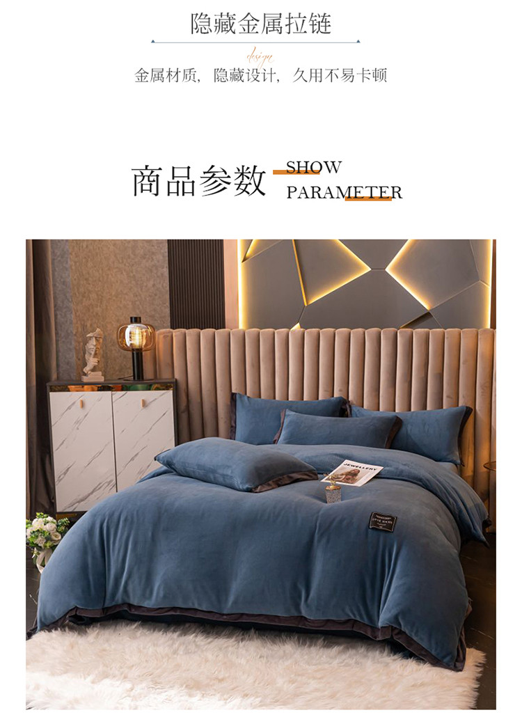 大米家居 新款高克重宽边牛奶宝宝绒法莱亲肤绒四件套荣耀孔雀蓝