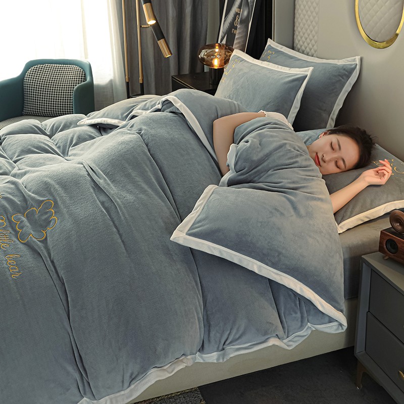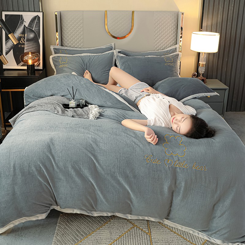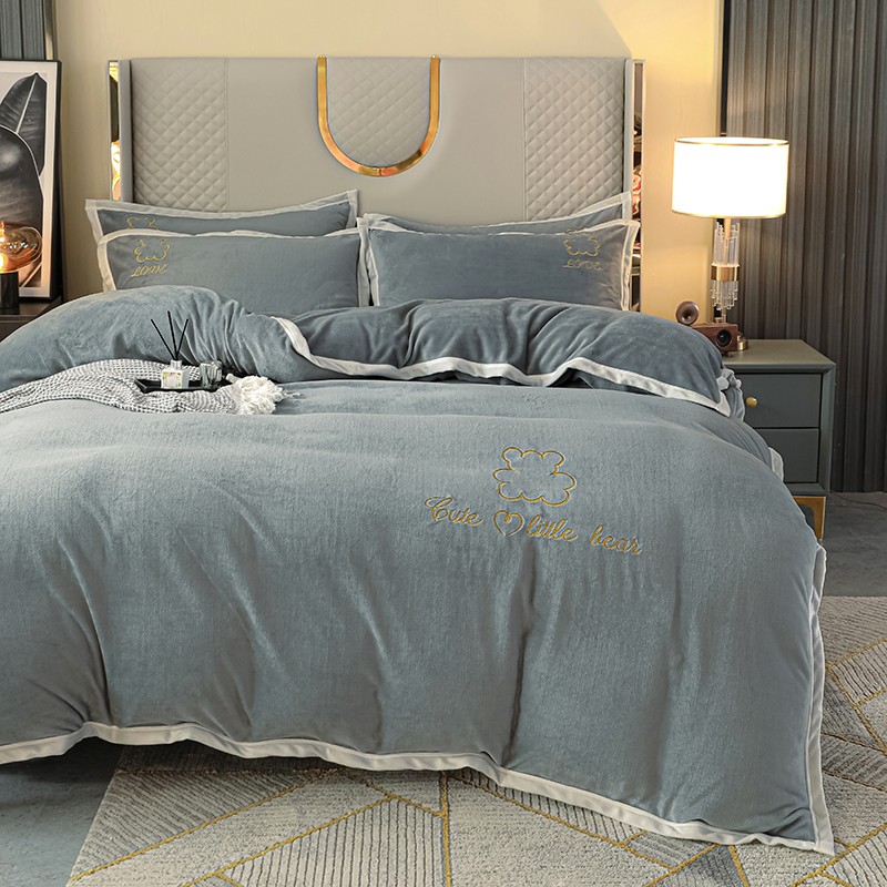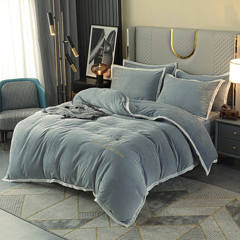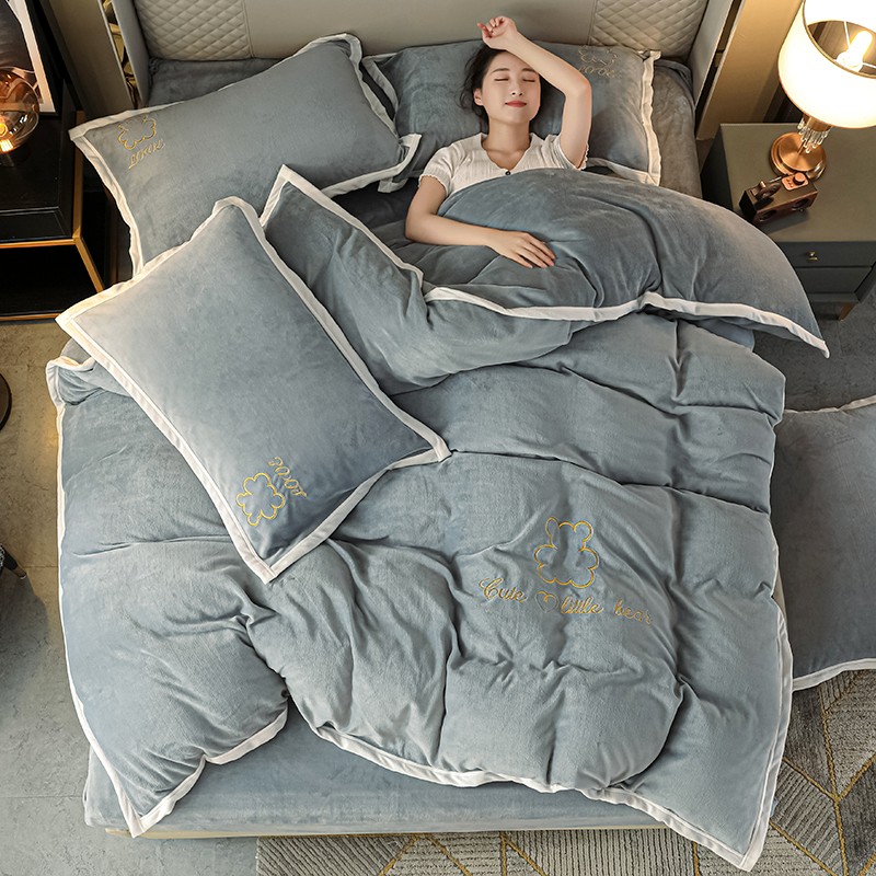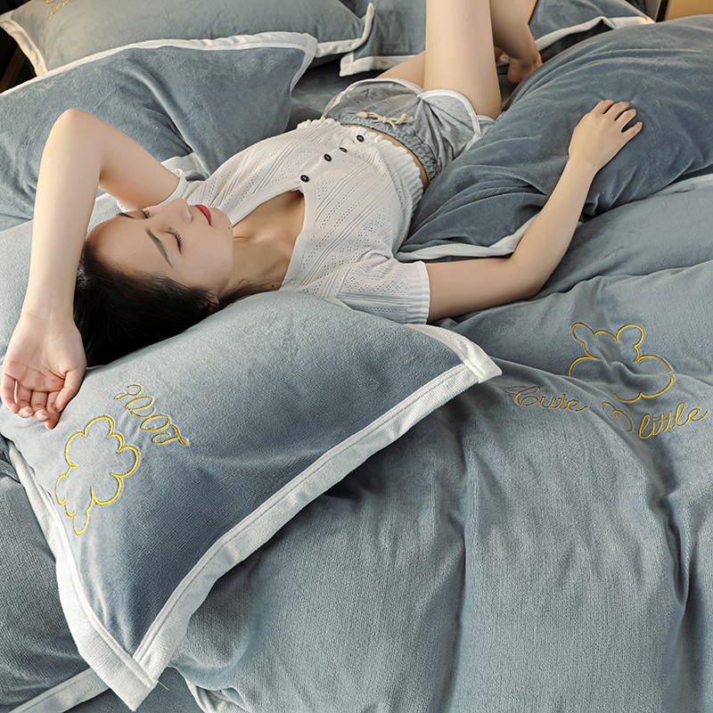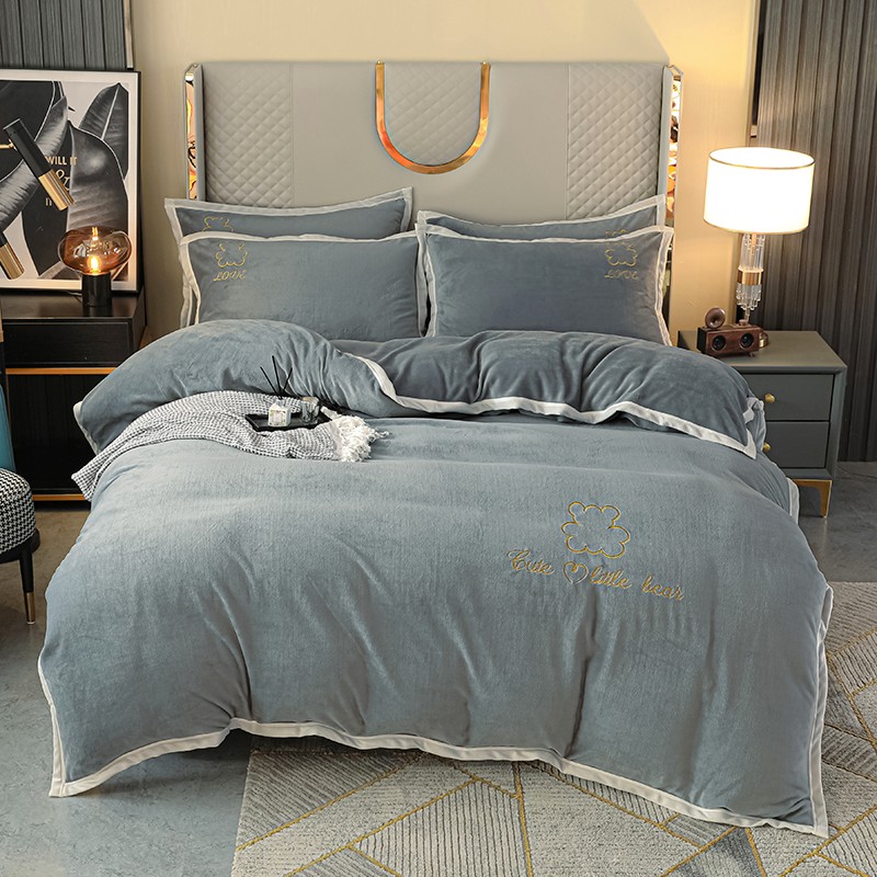 商品名称:爱洛家纺2021新款牛奶绒四件套 皓星-灰