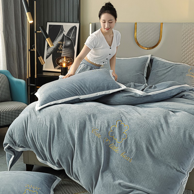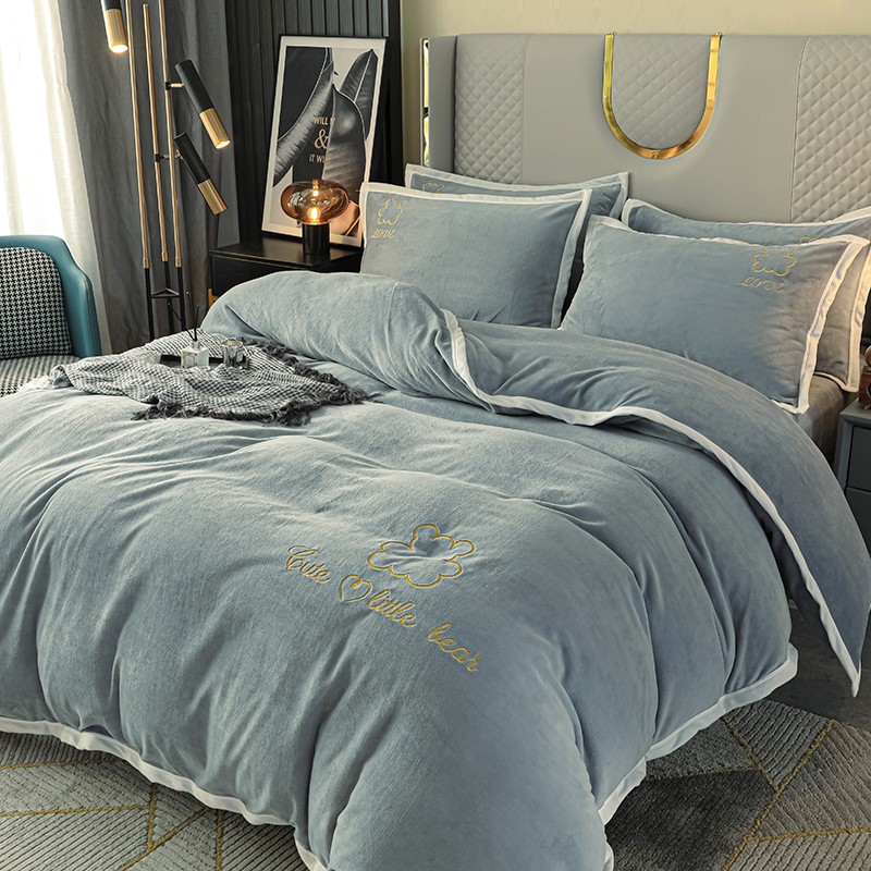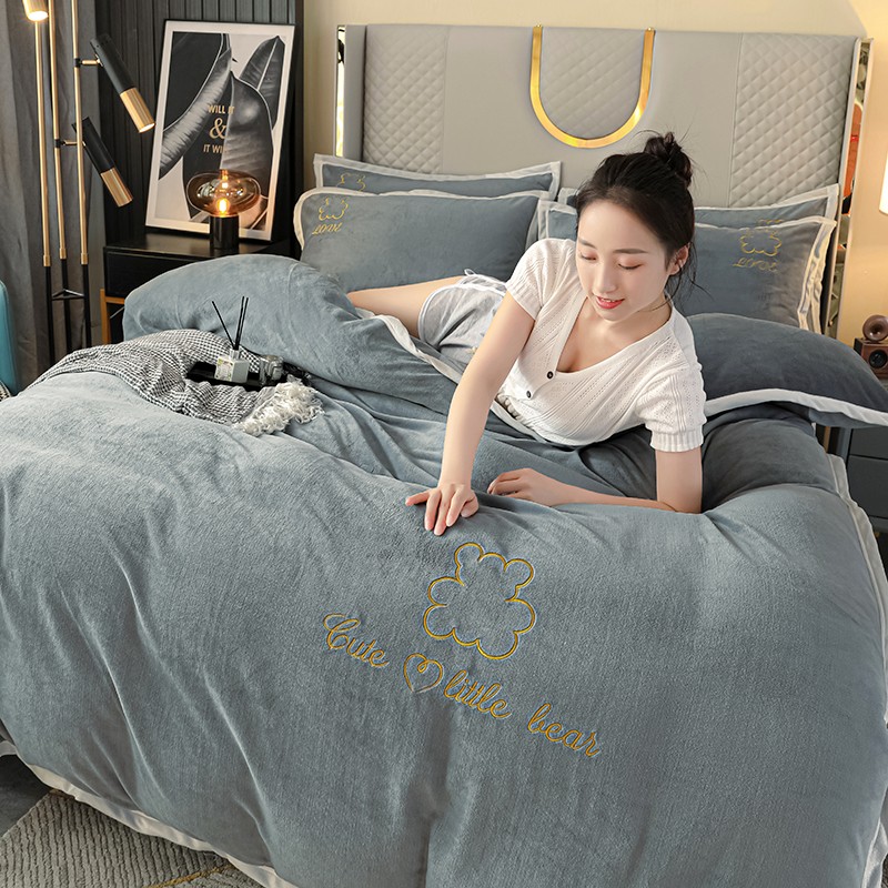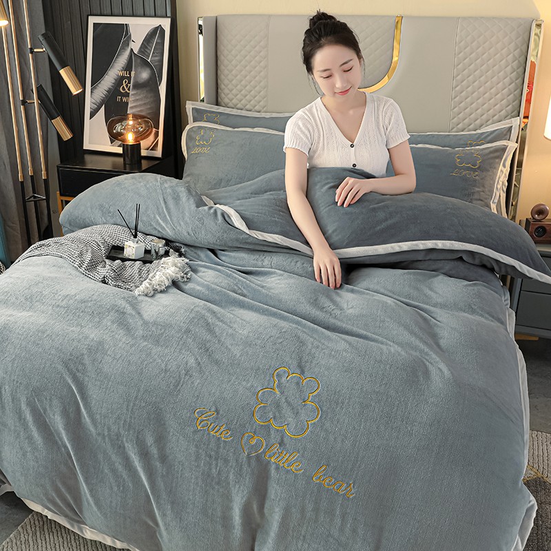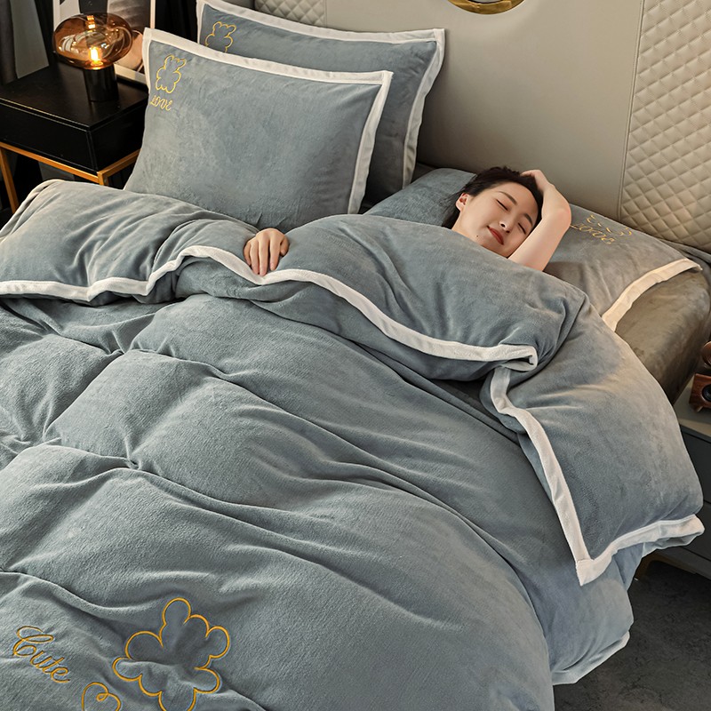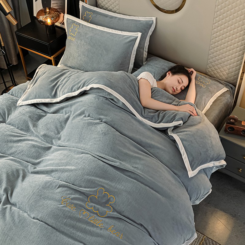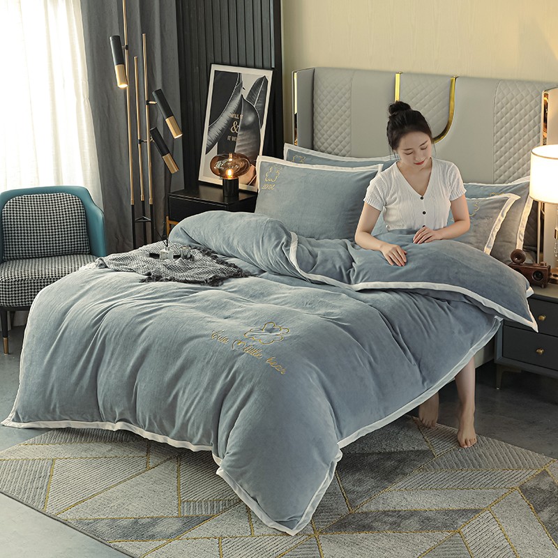 商品名称:爱洛家纺2021新款牛奶绒四件套 皓星-灰