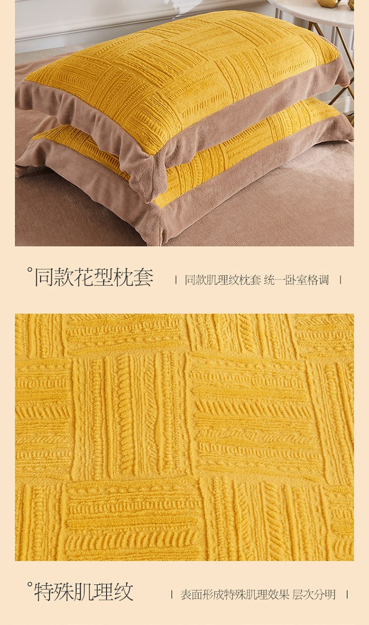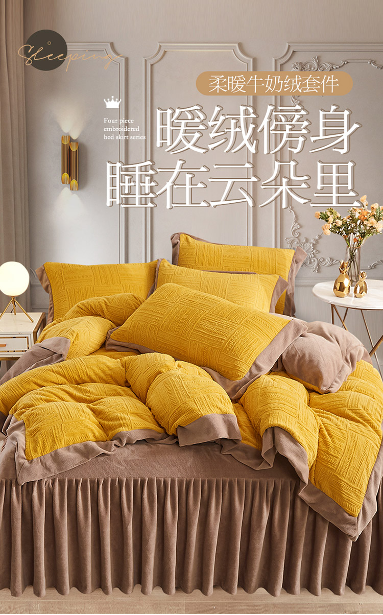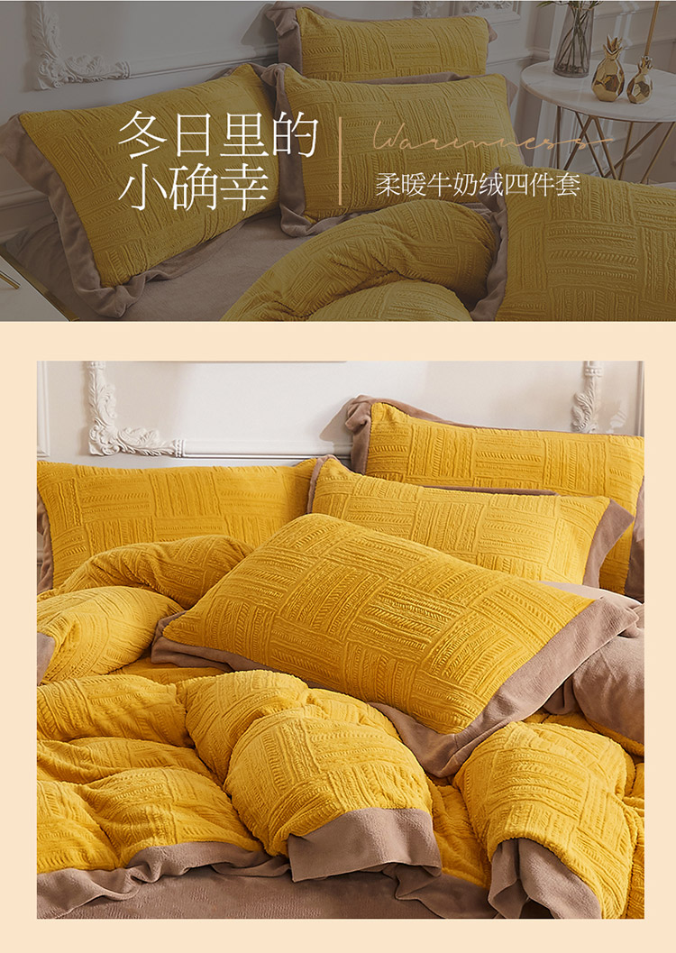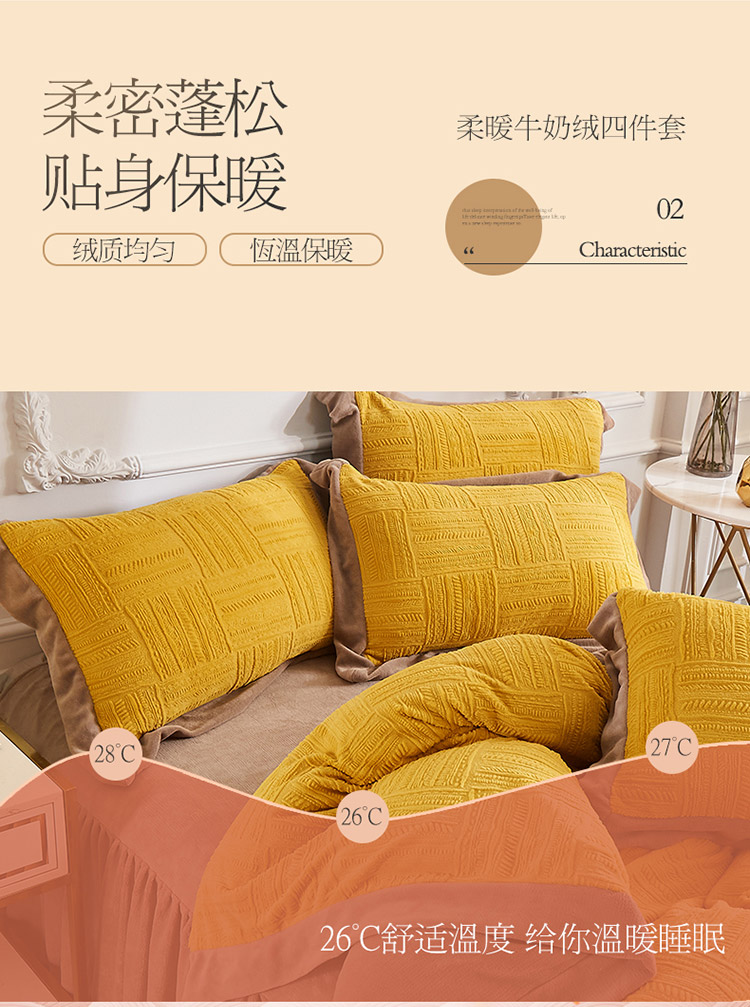 当前位置: 91家纺网 > 商品网购 > 床品套件 > 四件套 > 牛奶绒四件套 > 网红馆 2025新款牛奶绒雕花四件套 浮世-鹅黄