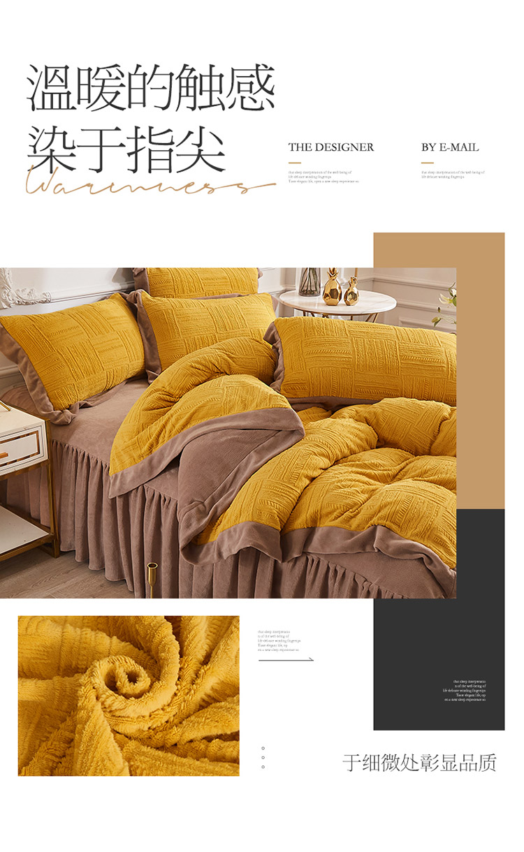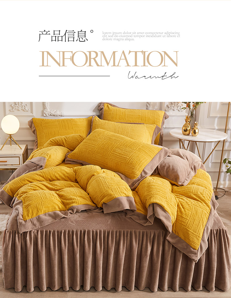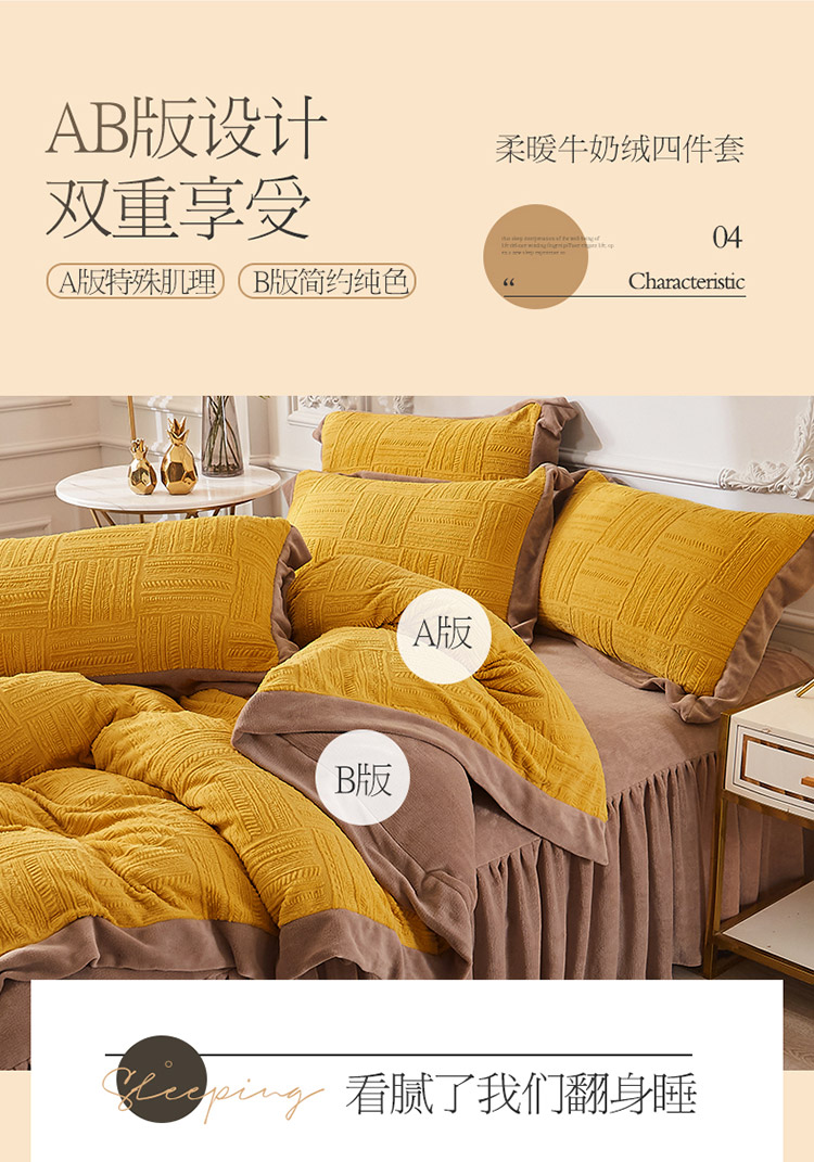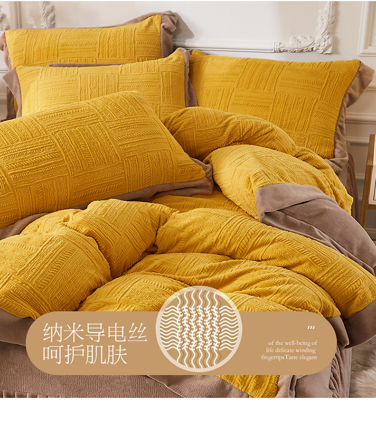 当前位置: 91家纺网 > 商品网购 > 床品套件 > 四件套 > 牛奶绒四件套 > 网红馆 2025新款牛奶绒雕花四件套 浮世-鹅黄