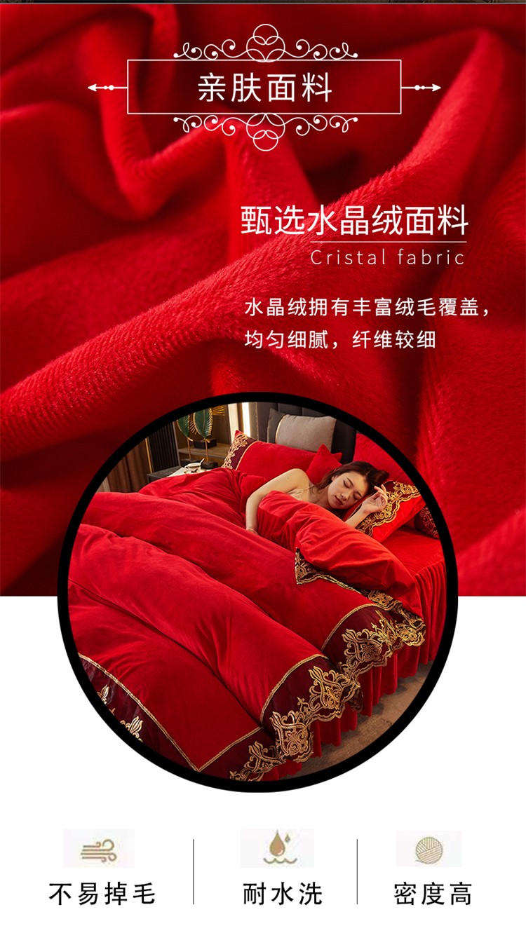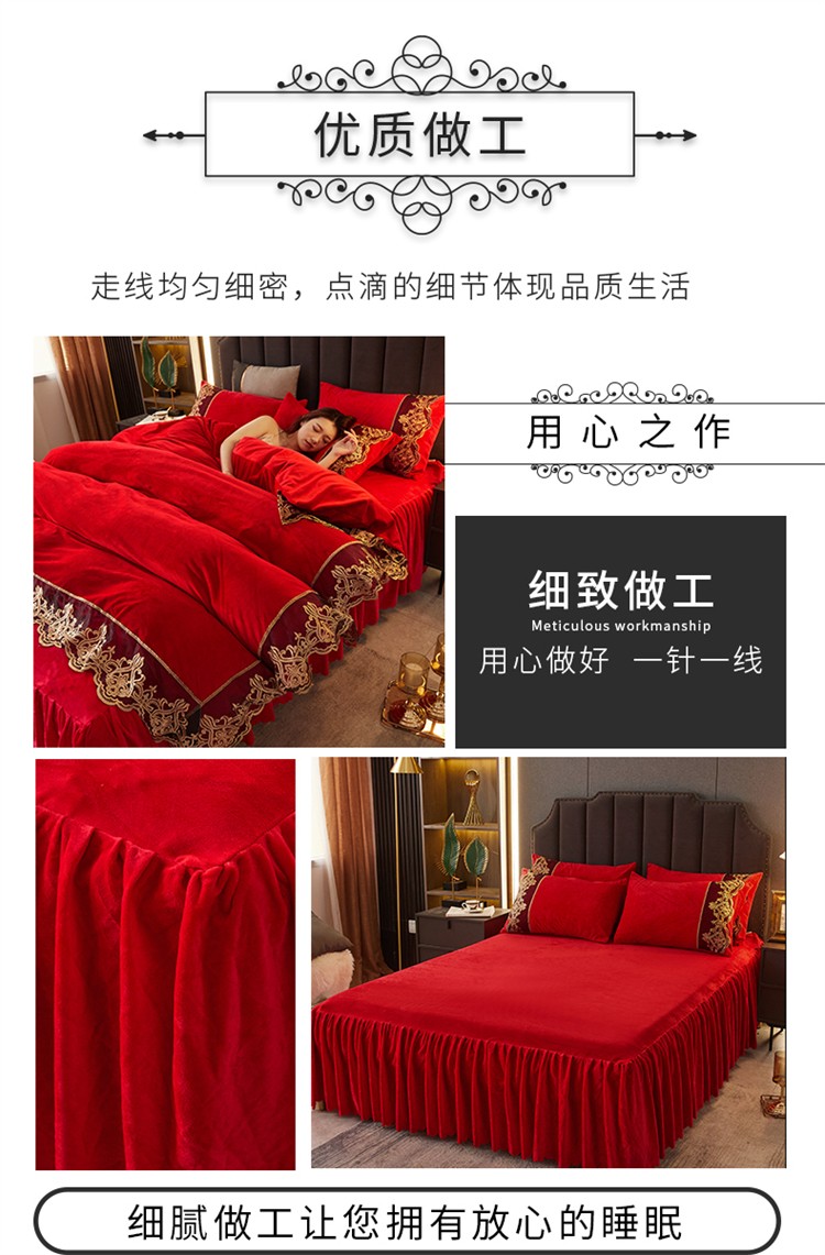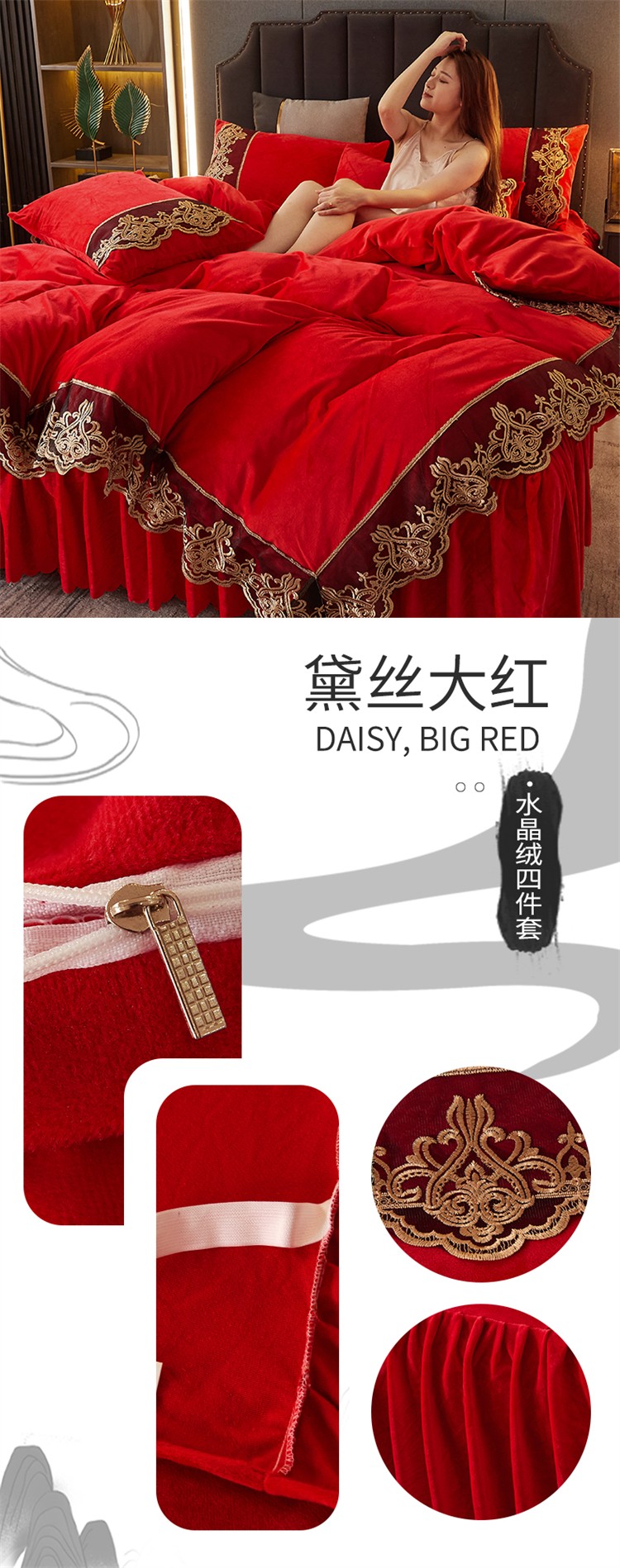 铠畅黛丝水晶绒床裙四件套宝宝婴儿牛奶绒量大从优 黛丝大红