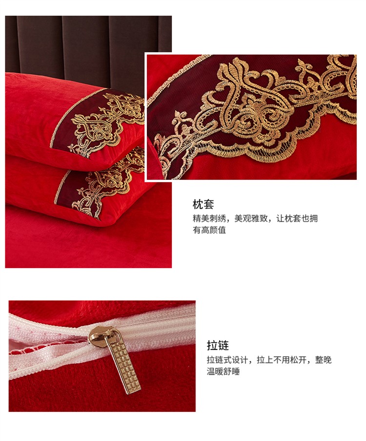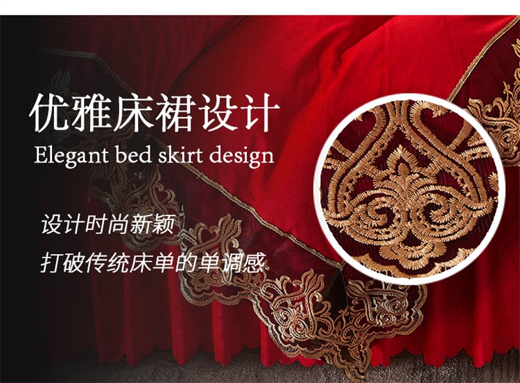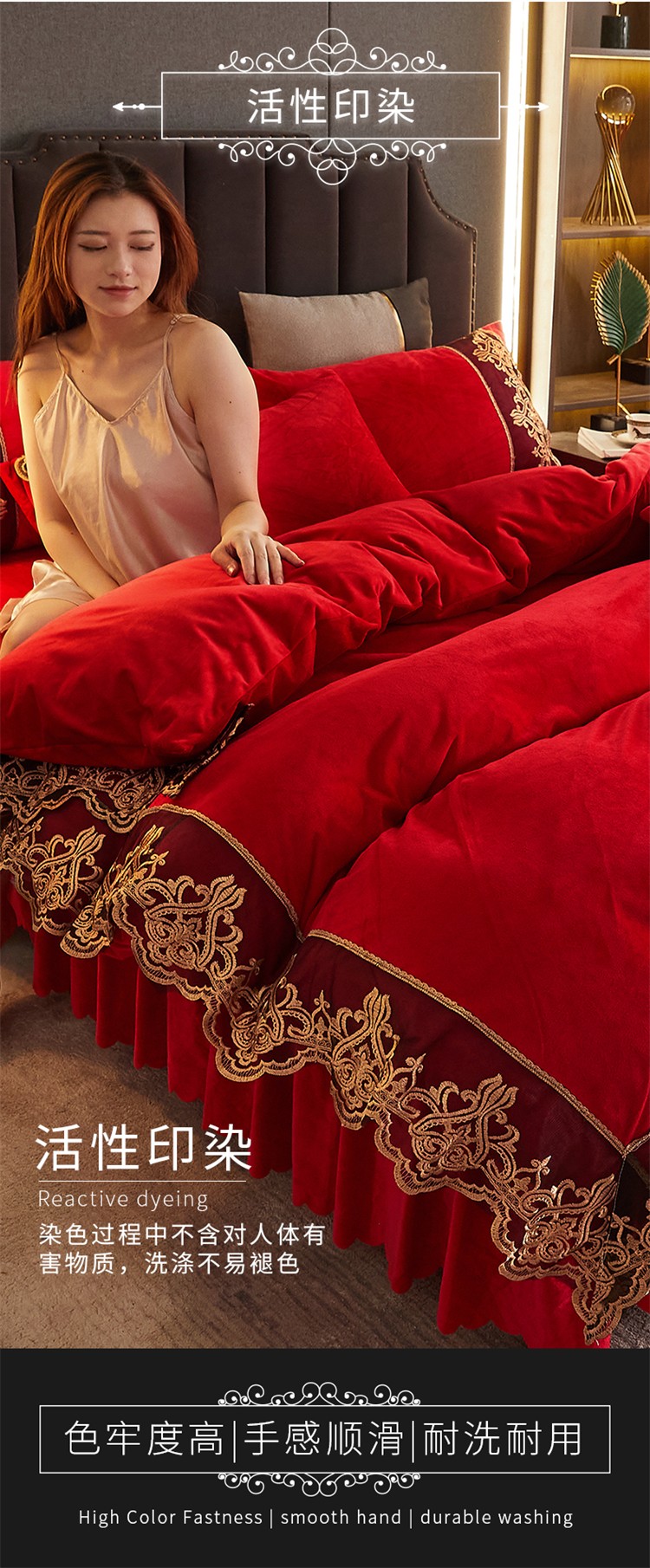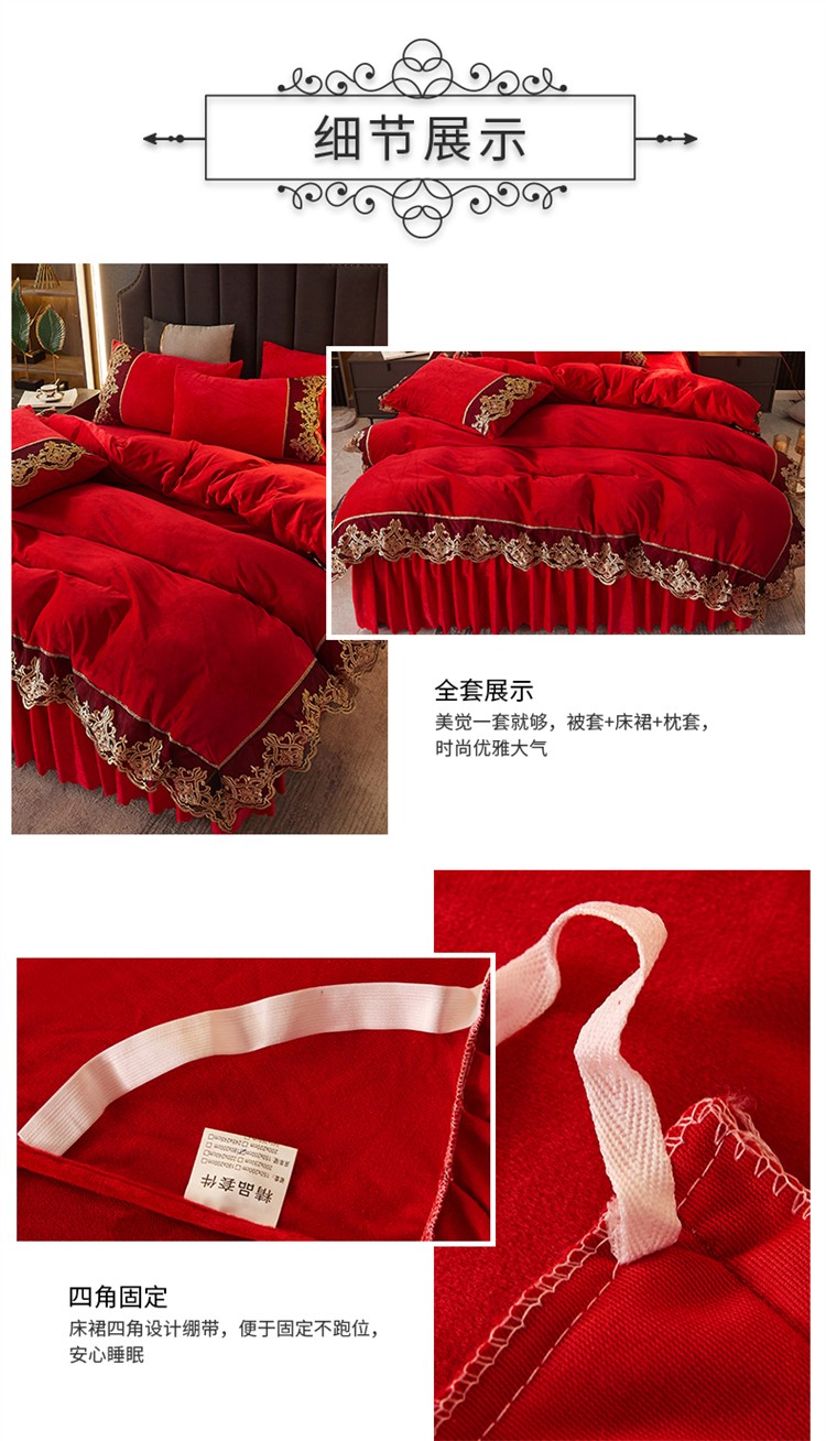 铠畅黛丝水晶绒床裙四件套宝宝婴儿牛奶绒量大从优 黛丝大红