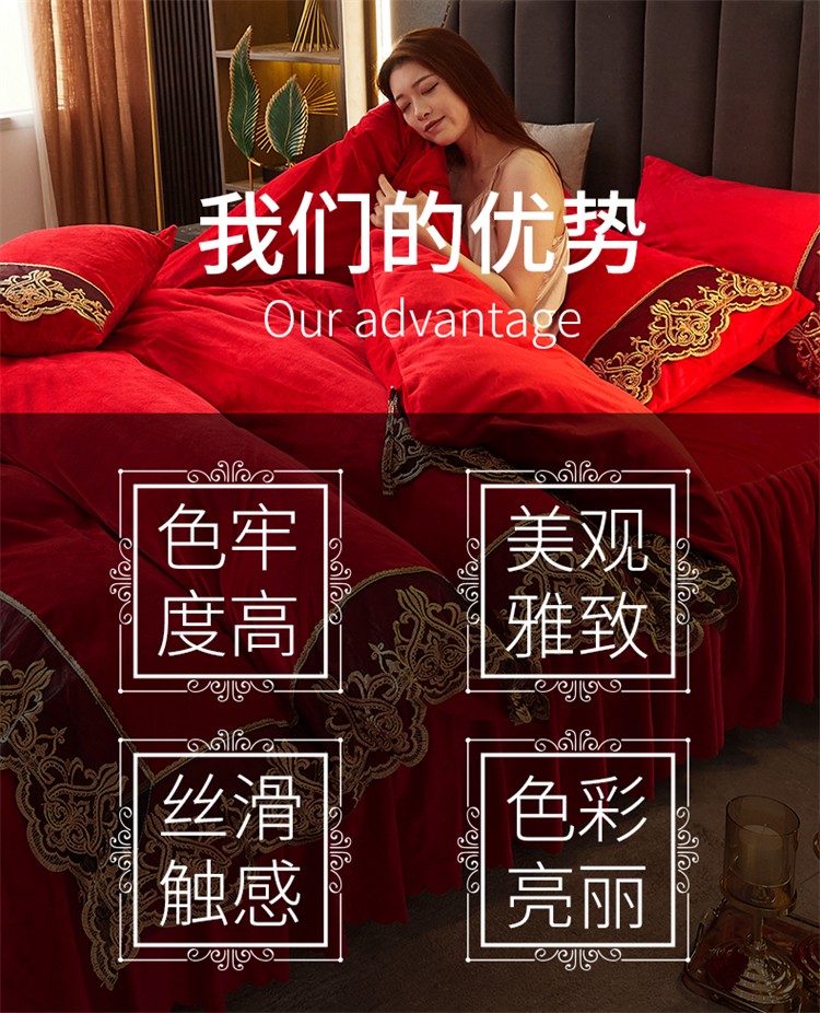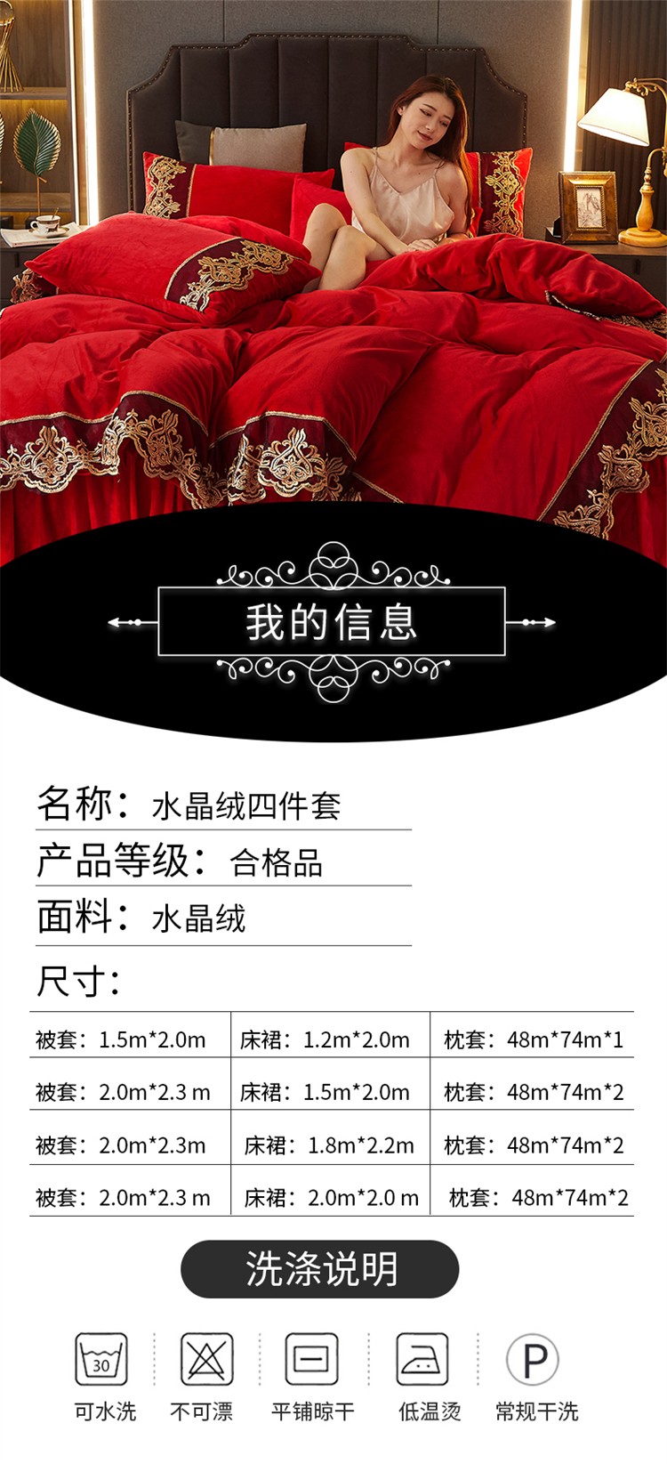 商品名称:铠畅黛丝水晶绒床裙四件套宝宝婴儿牛奶绒量大从优 黛丝大红