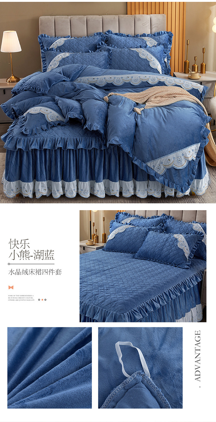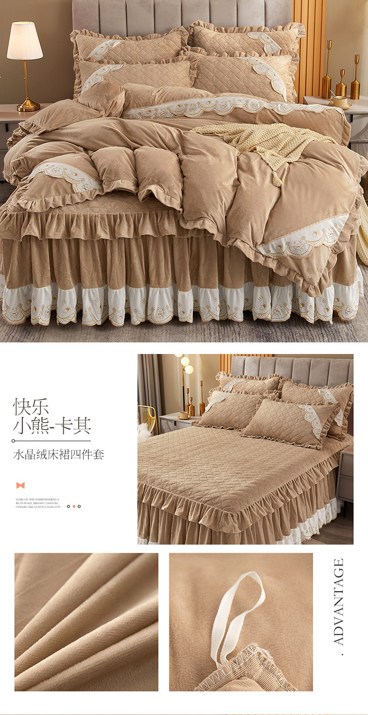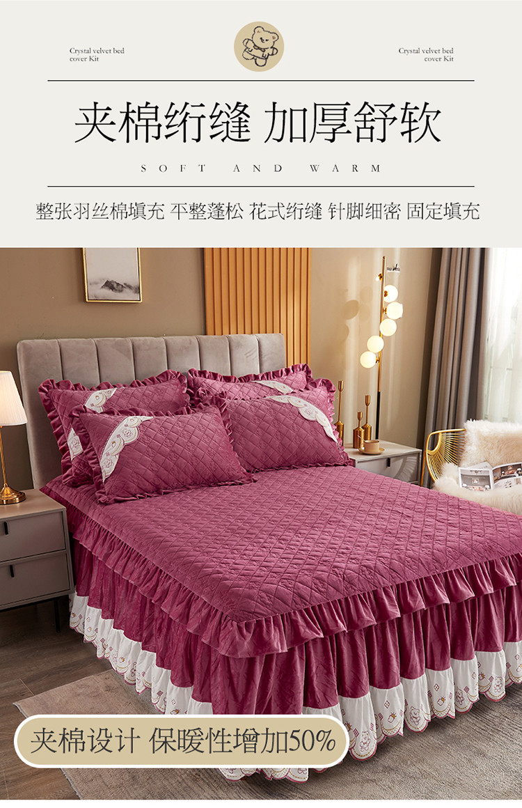 (总)宜凡 2021新款水晶绒夹棉绗缝床裙四件套