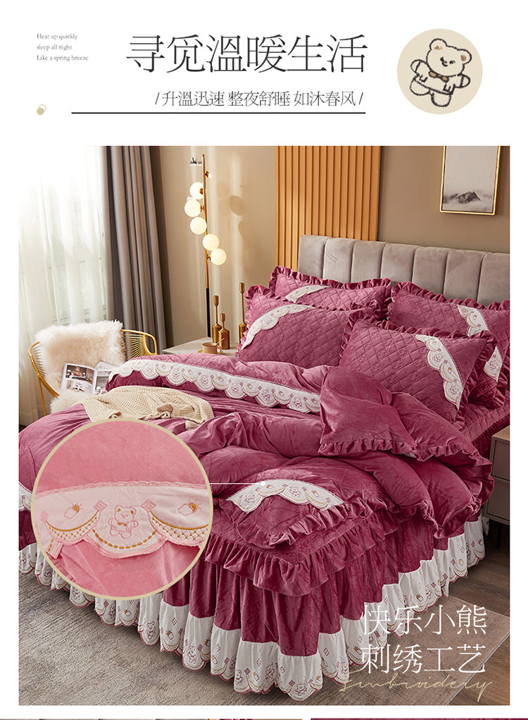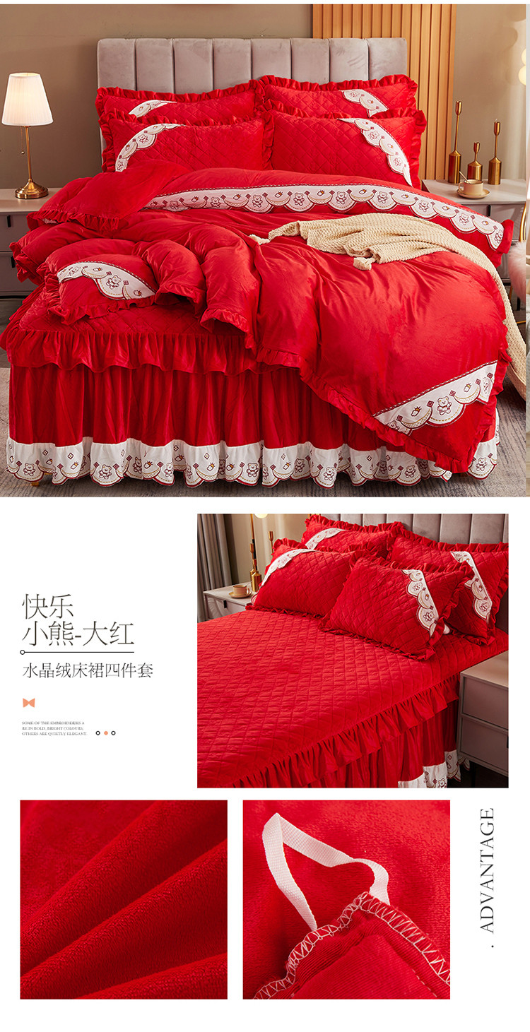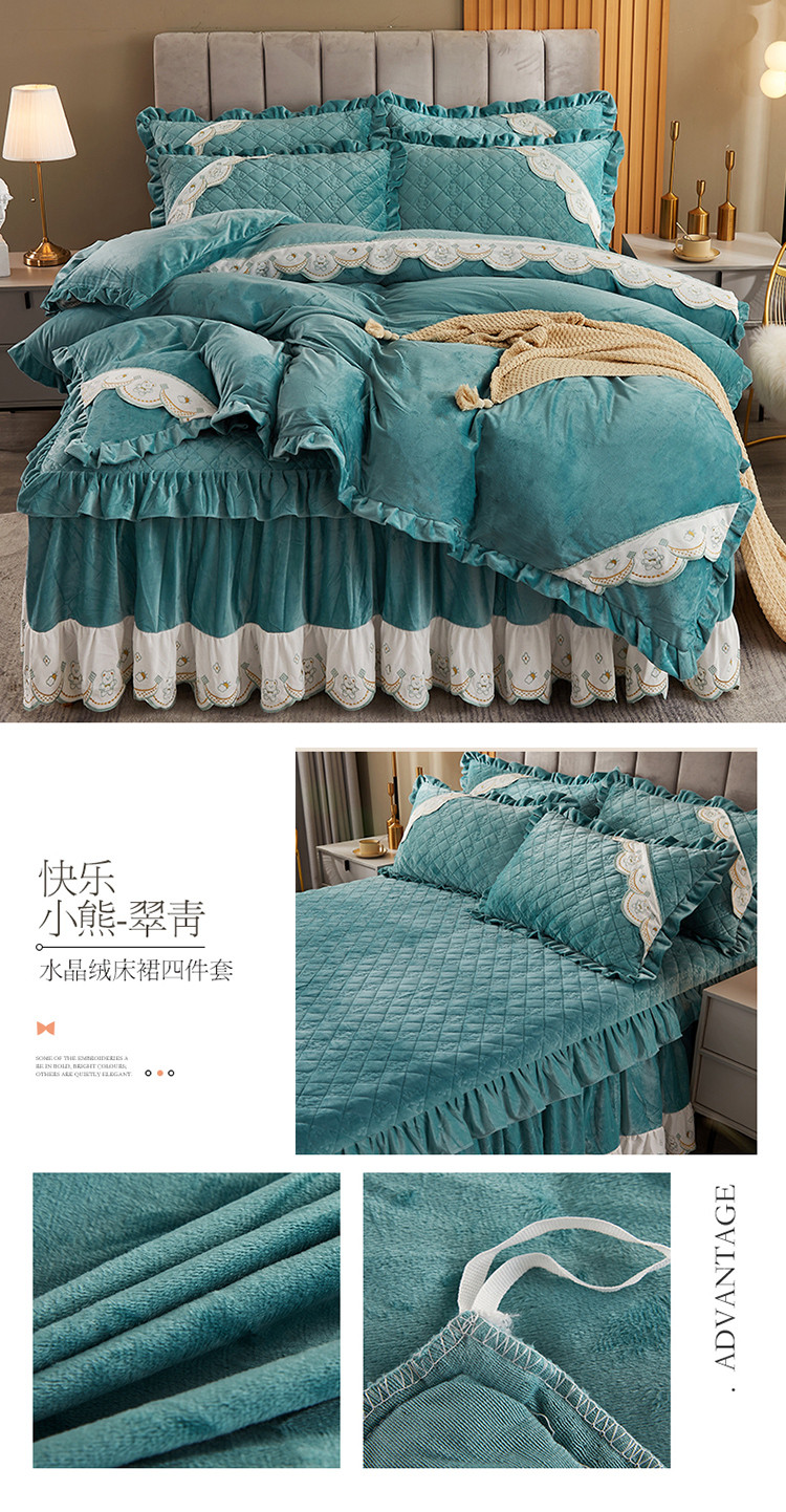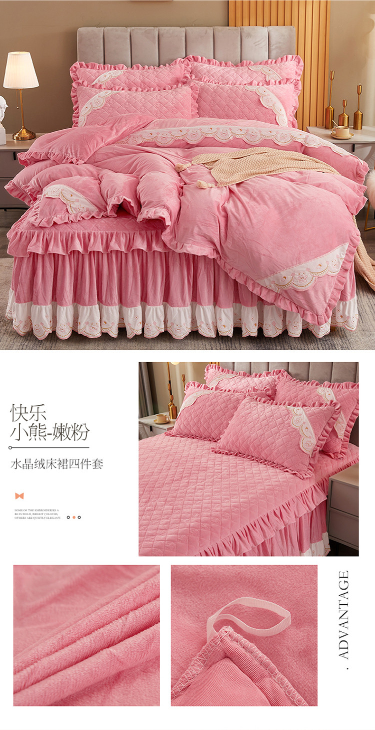 (总)宜凡 2021新款水晶绒夹棉绗缝床裙四件套