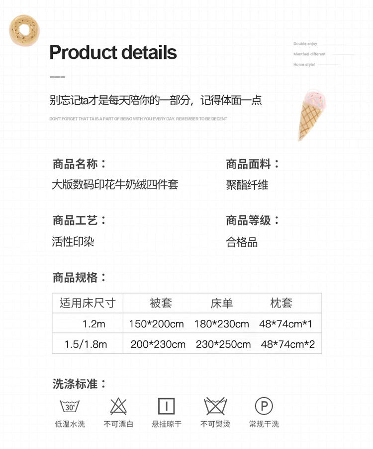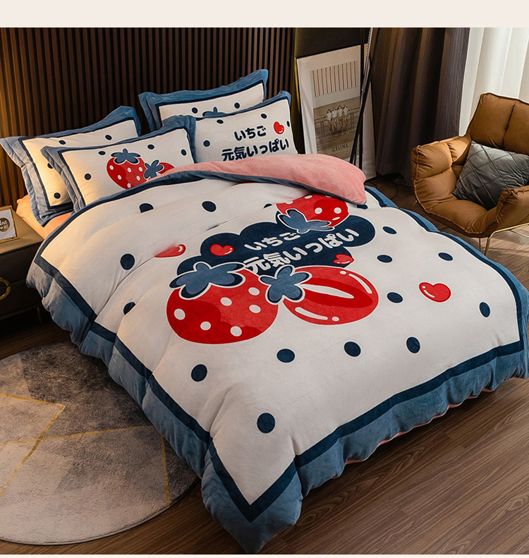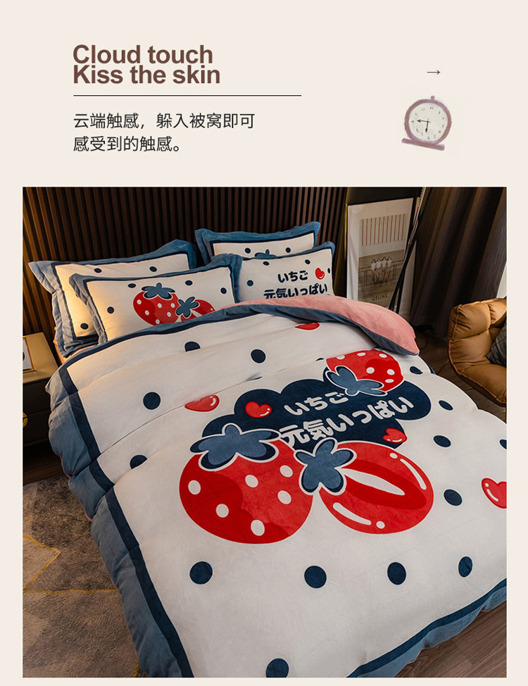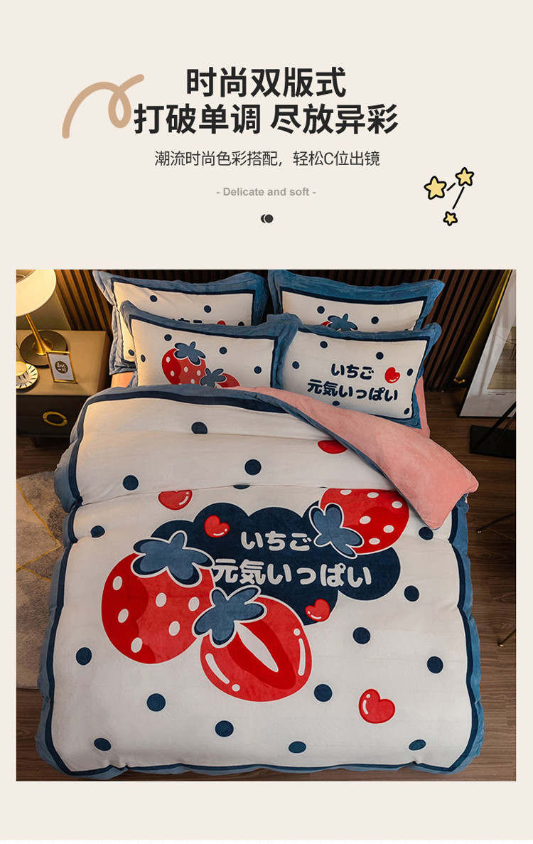 商品名称:寐居 2021新款大版数码印花牛奶绒四件套 草莓之恋