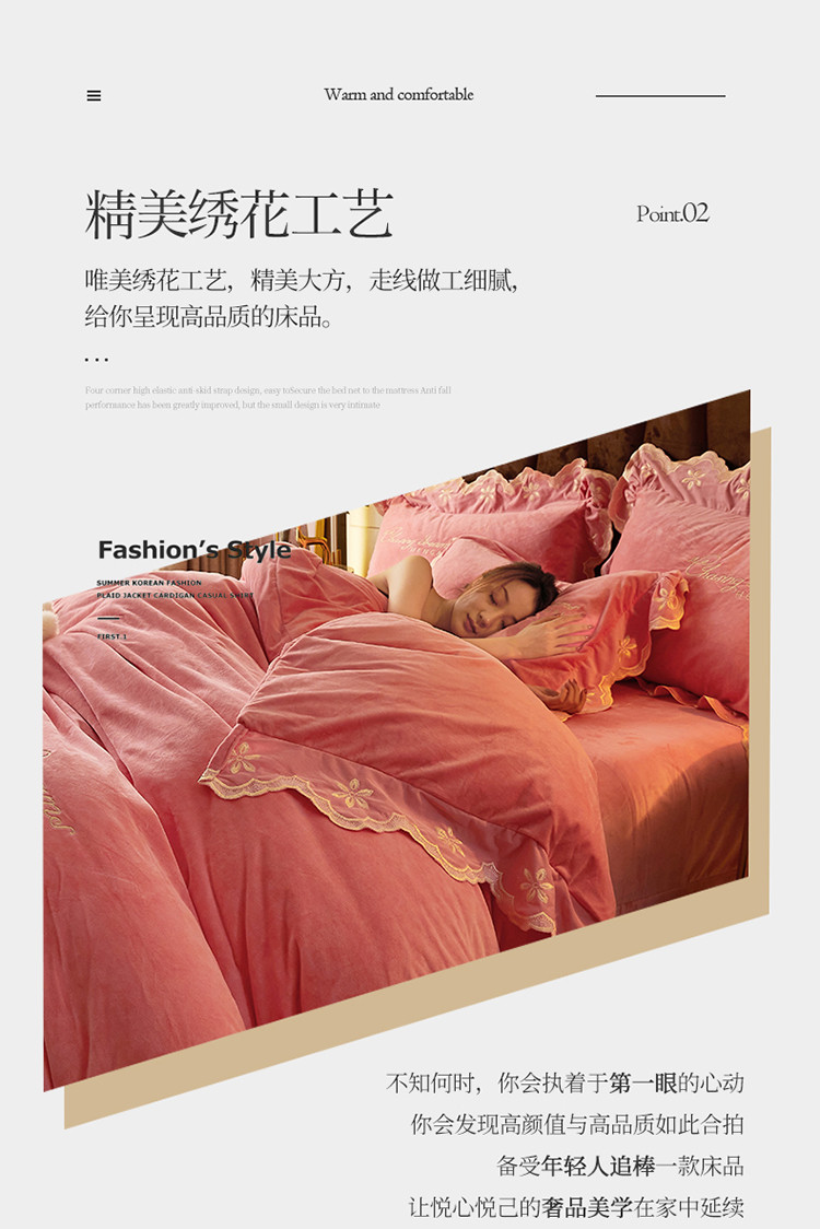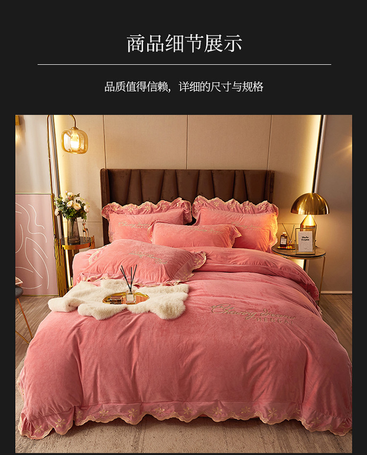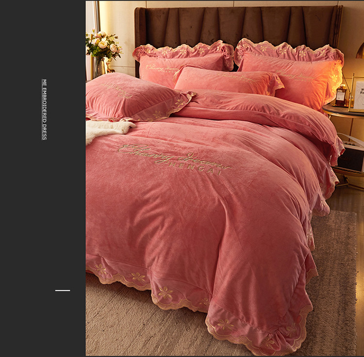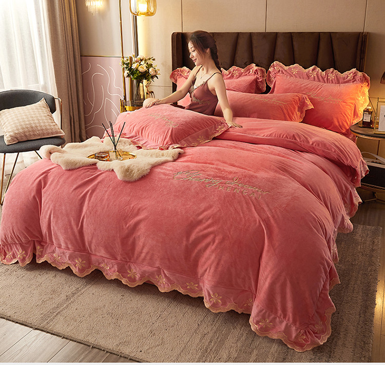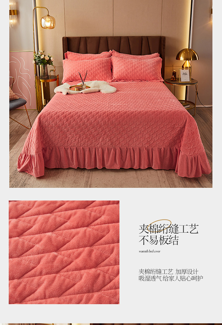 (总)恒爱 2022秋冬水晶绒翩翩花舞夹棉床裙四件套,大红色,豆沙红,橄榄绿,公主粉,桔色,咖啡色,孔雀绿,拉菲红,罗兰紫,玫红色,美人玉,米白色,米驼色,抹茶绿,浅灰色,紫色