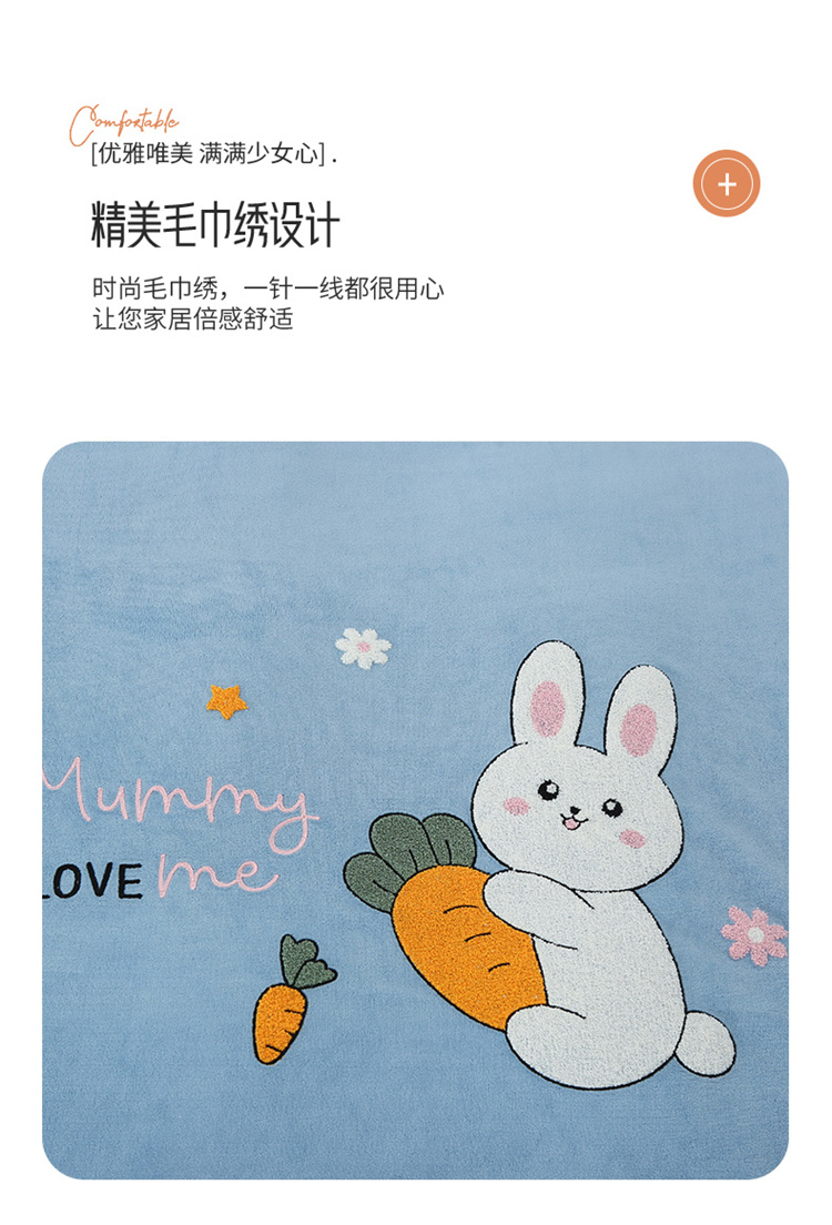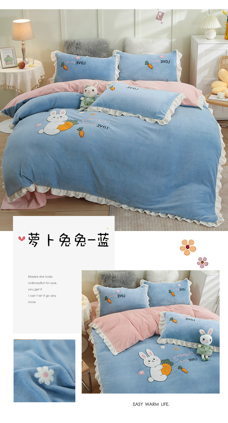 商品名称:沐辰 2021新款韩版毛巾绣加厚牛奶绒四件套 萝卜兔兔--蓝