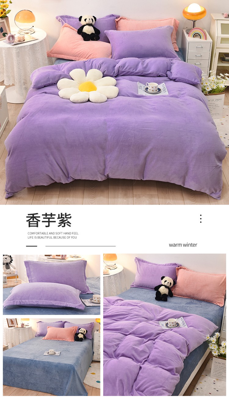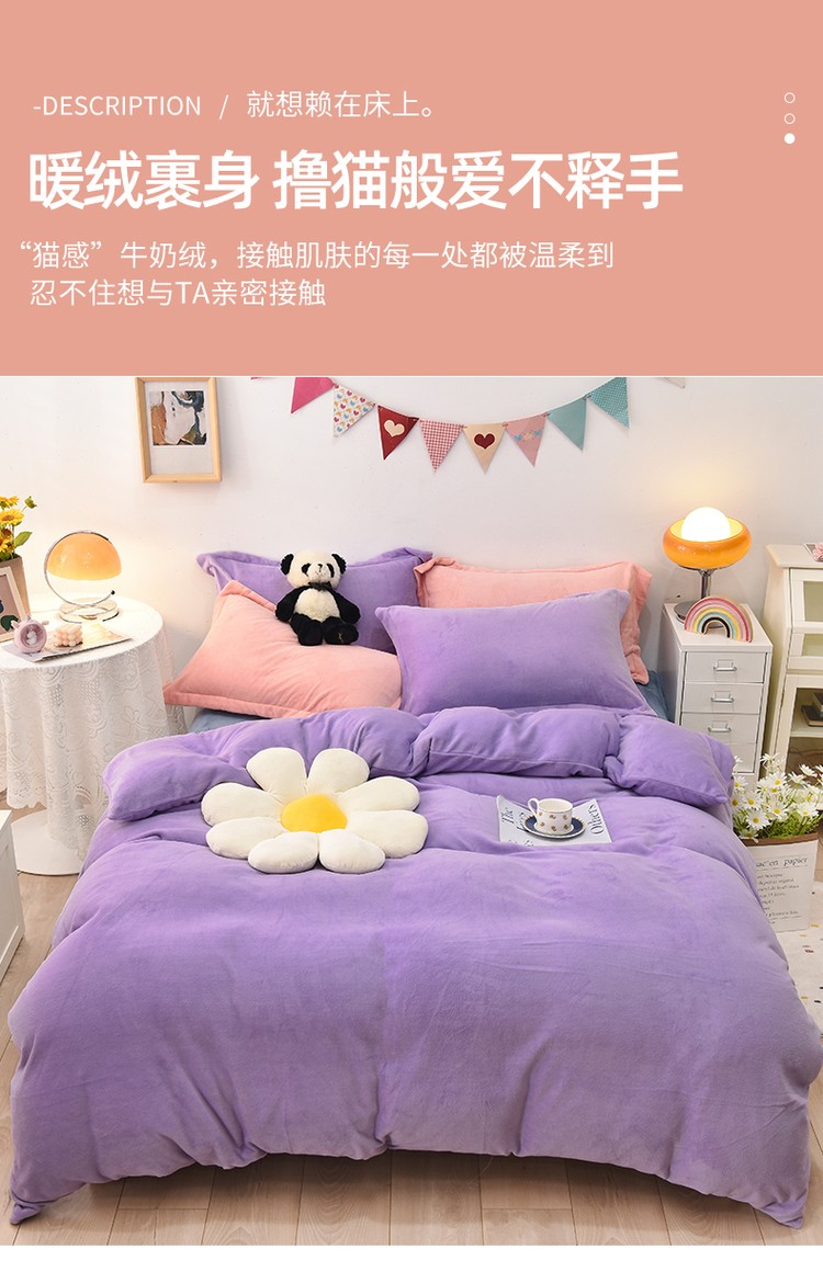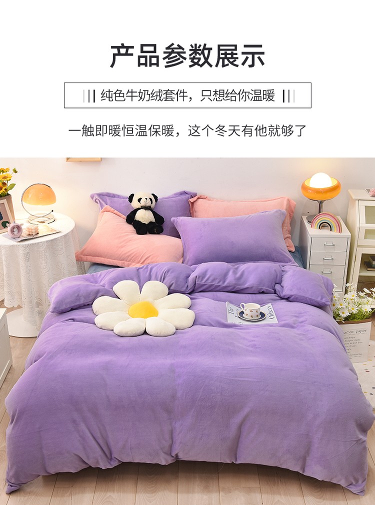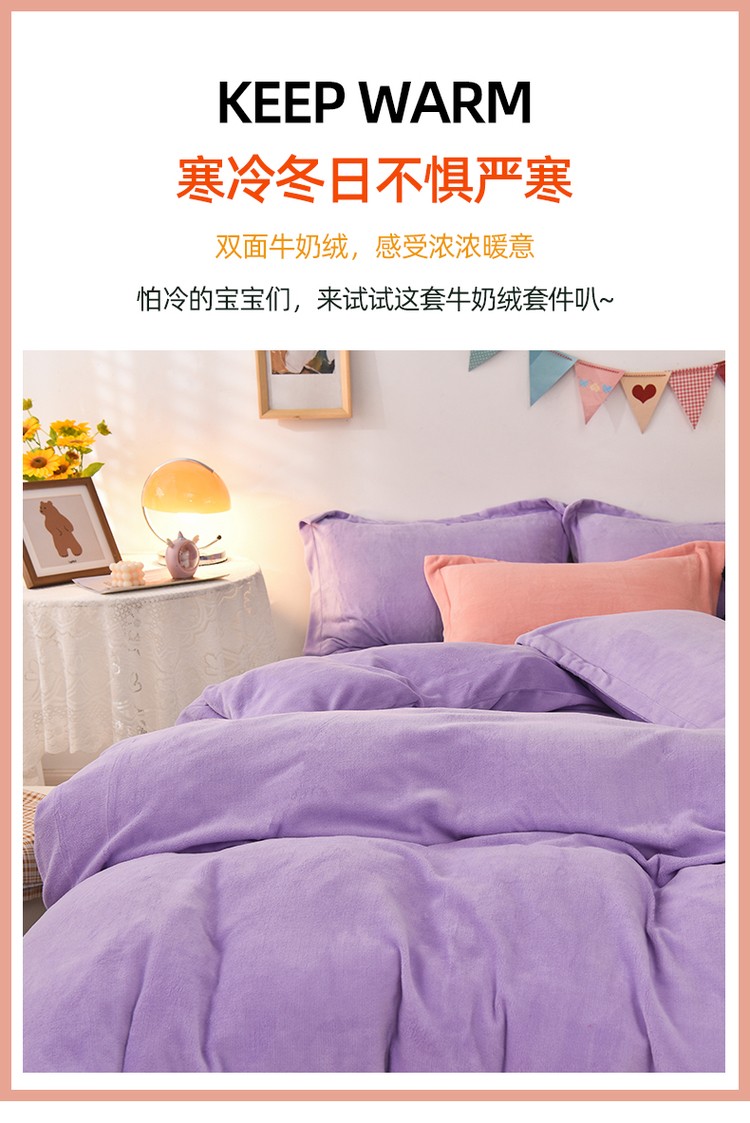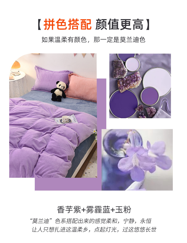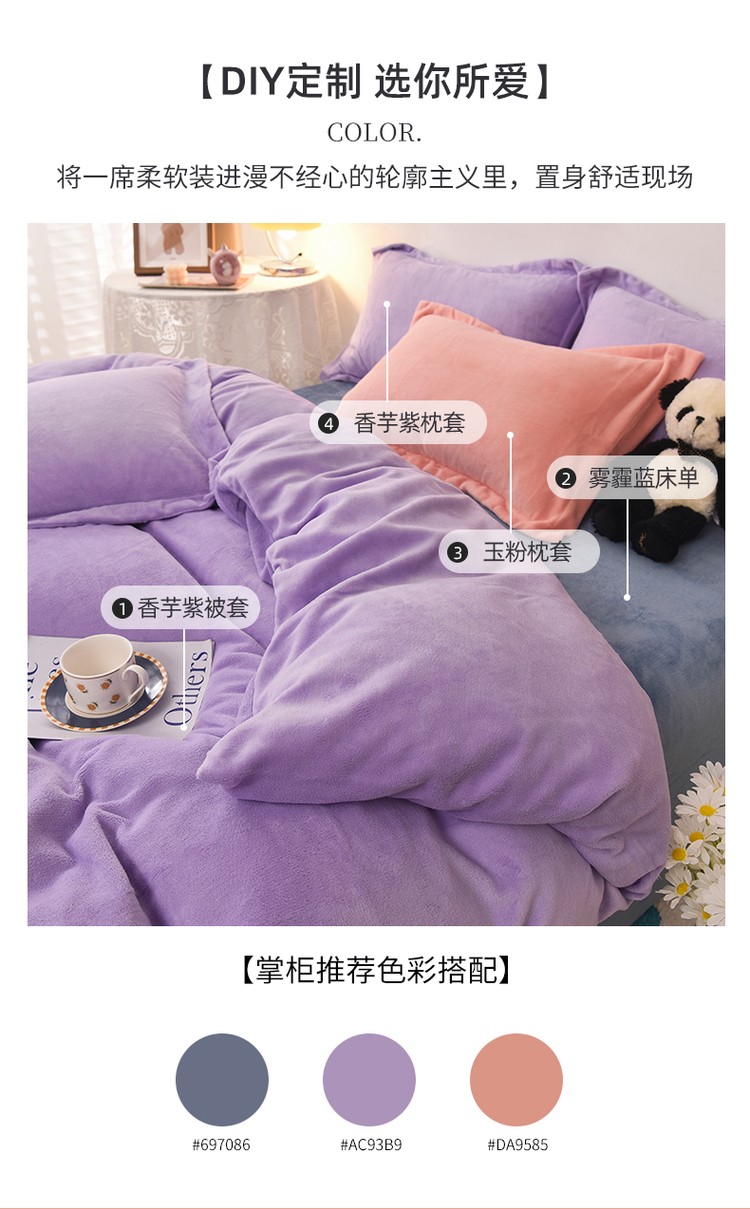 商品名称:优彩 2021新款高克重纯色混搭牛奶绒四件套 香芋紫