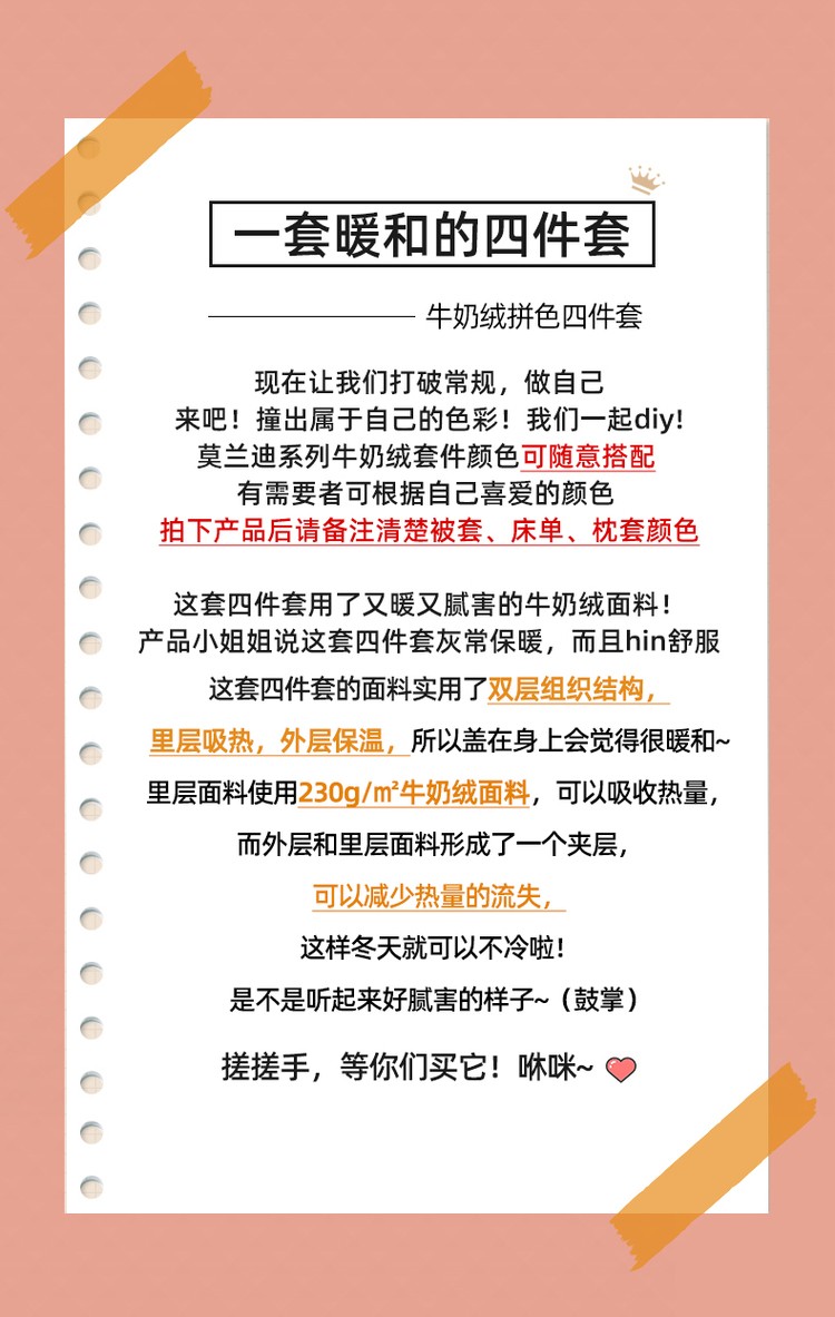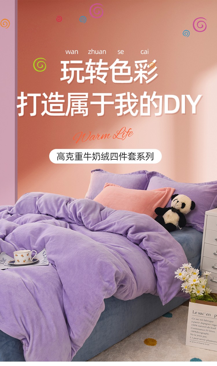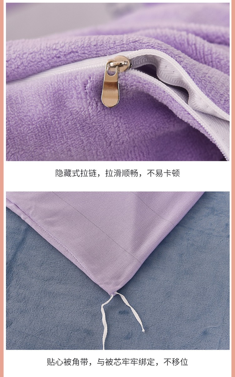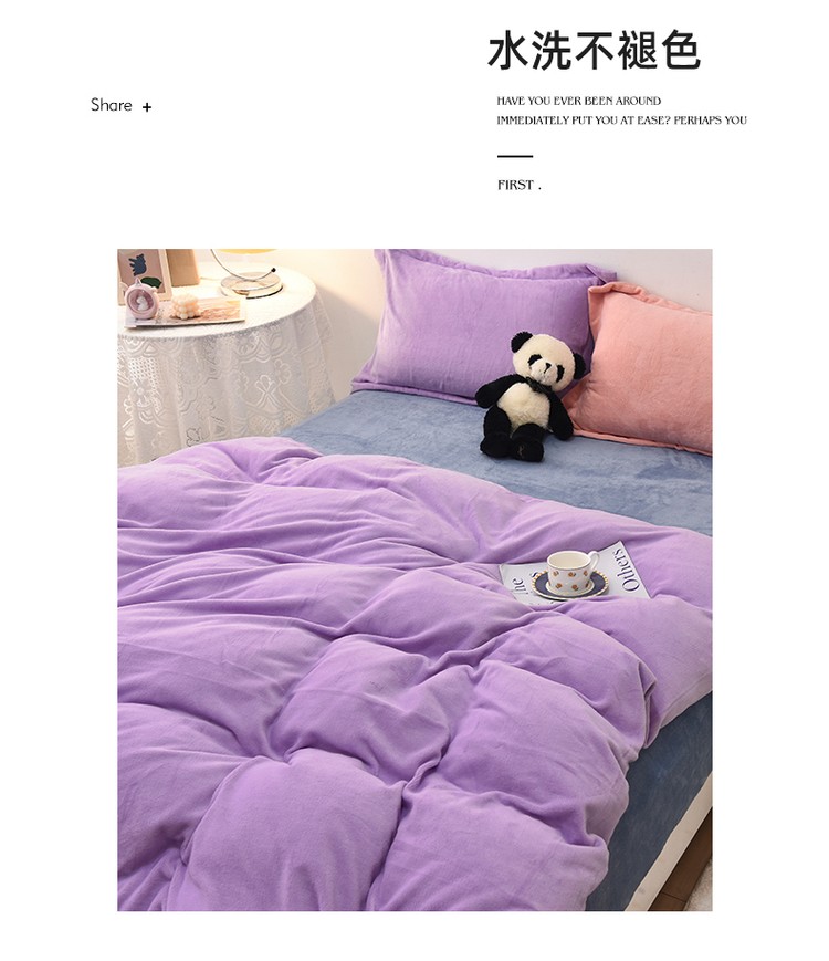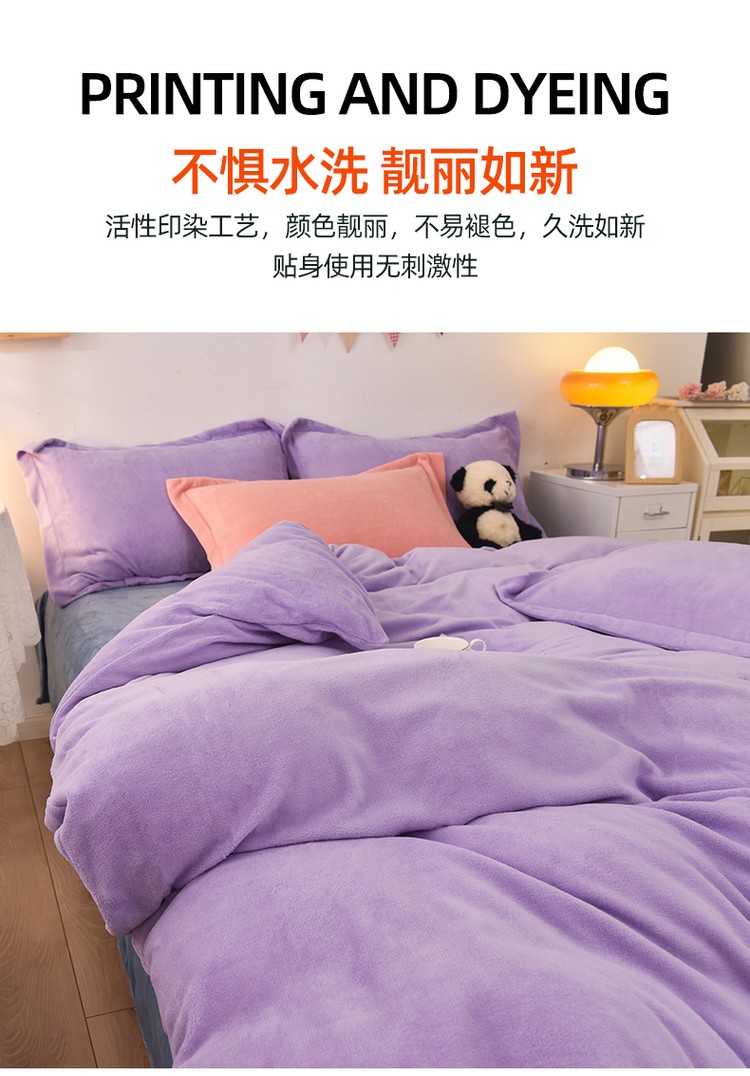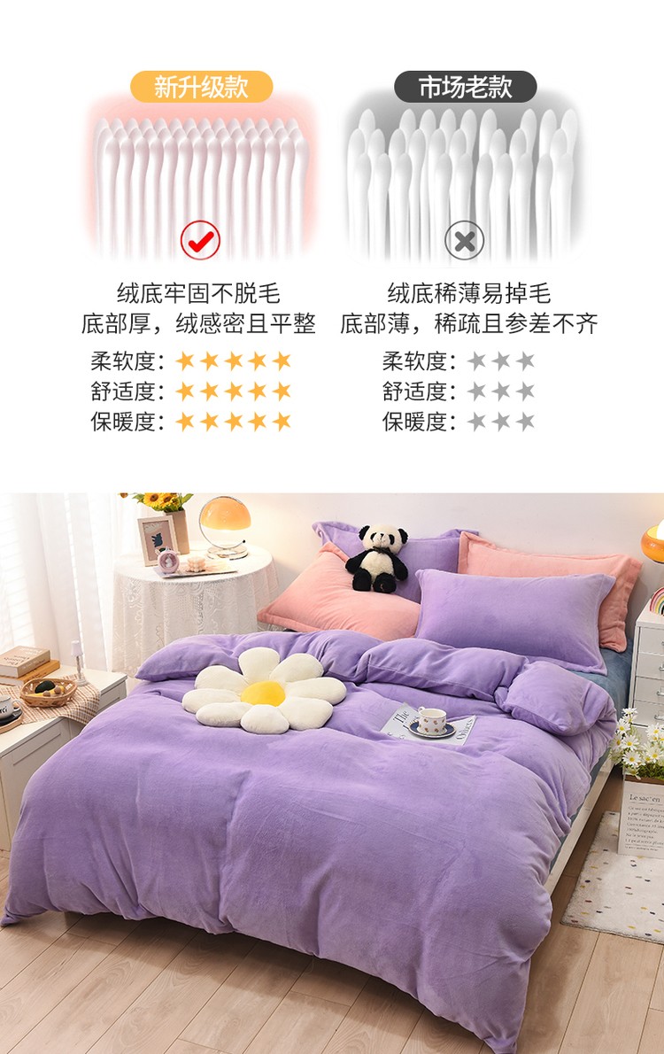 商品名称:优彩 2021新款高克重纯色混搭牛奶绒四件套 香芋紫