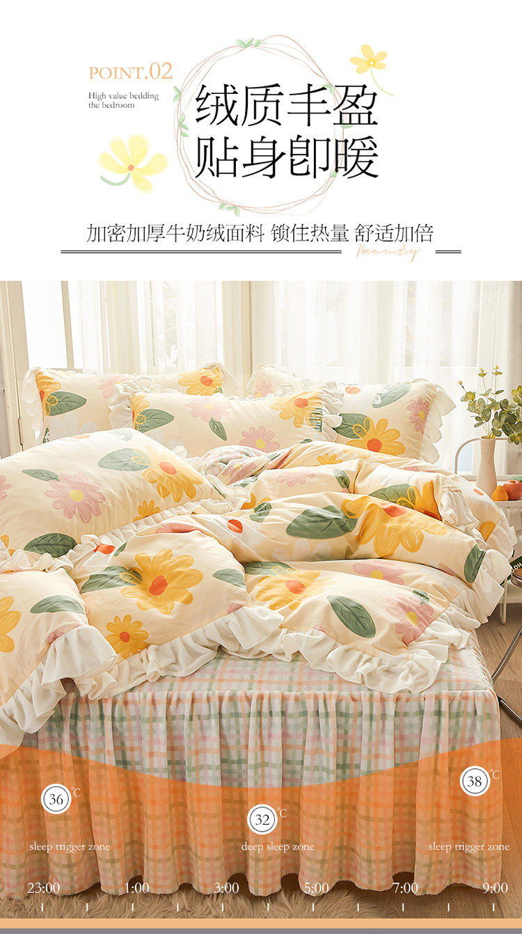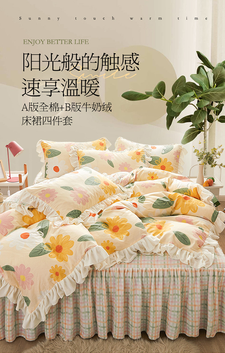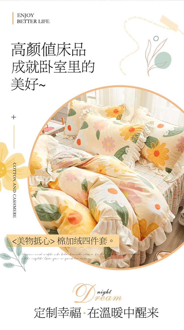 宜凡家纺 2021新款棉加绒印花床裙四件套 莫奈