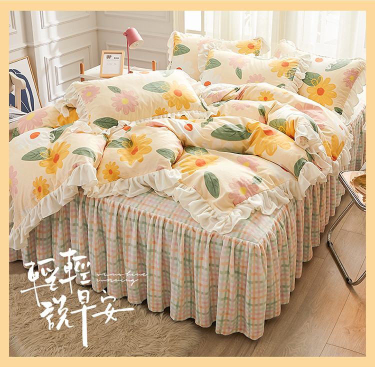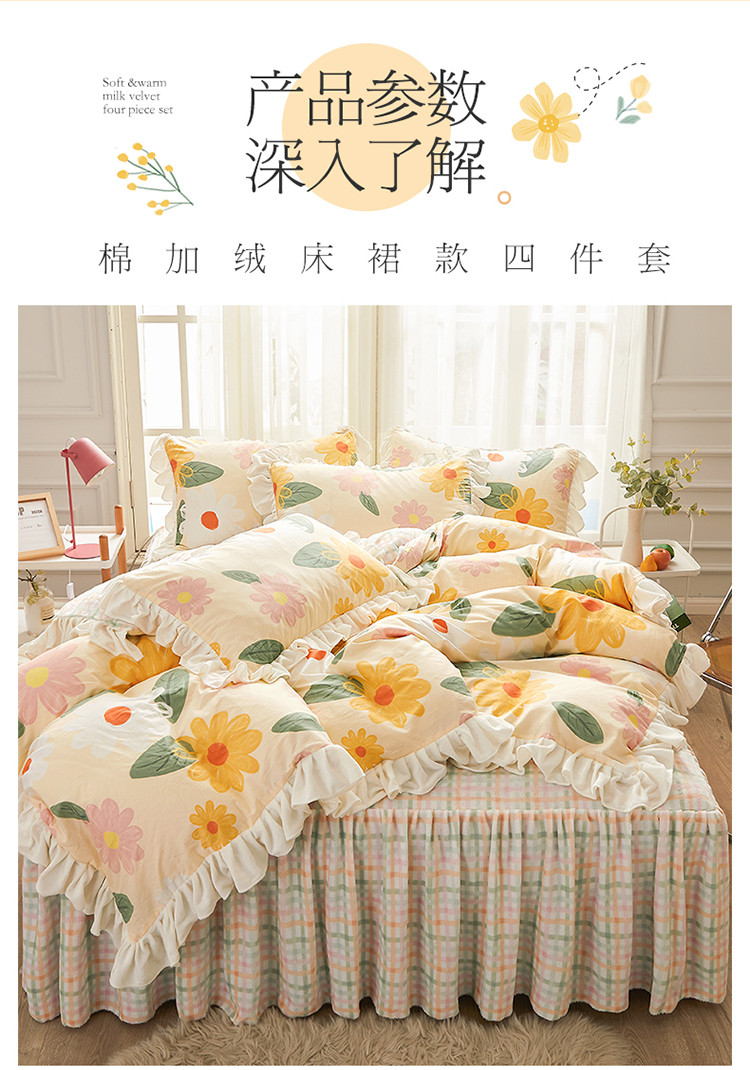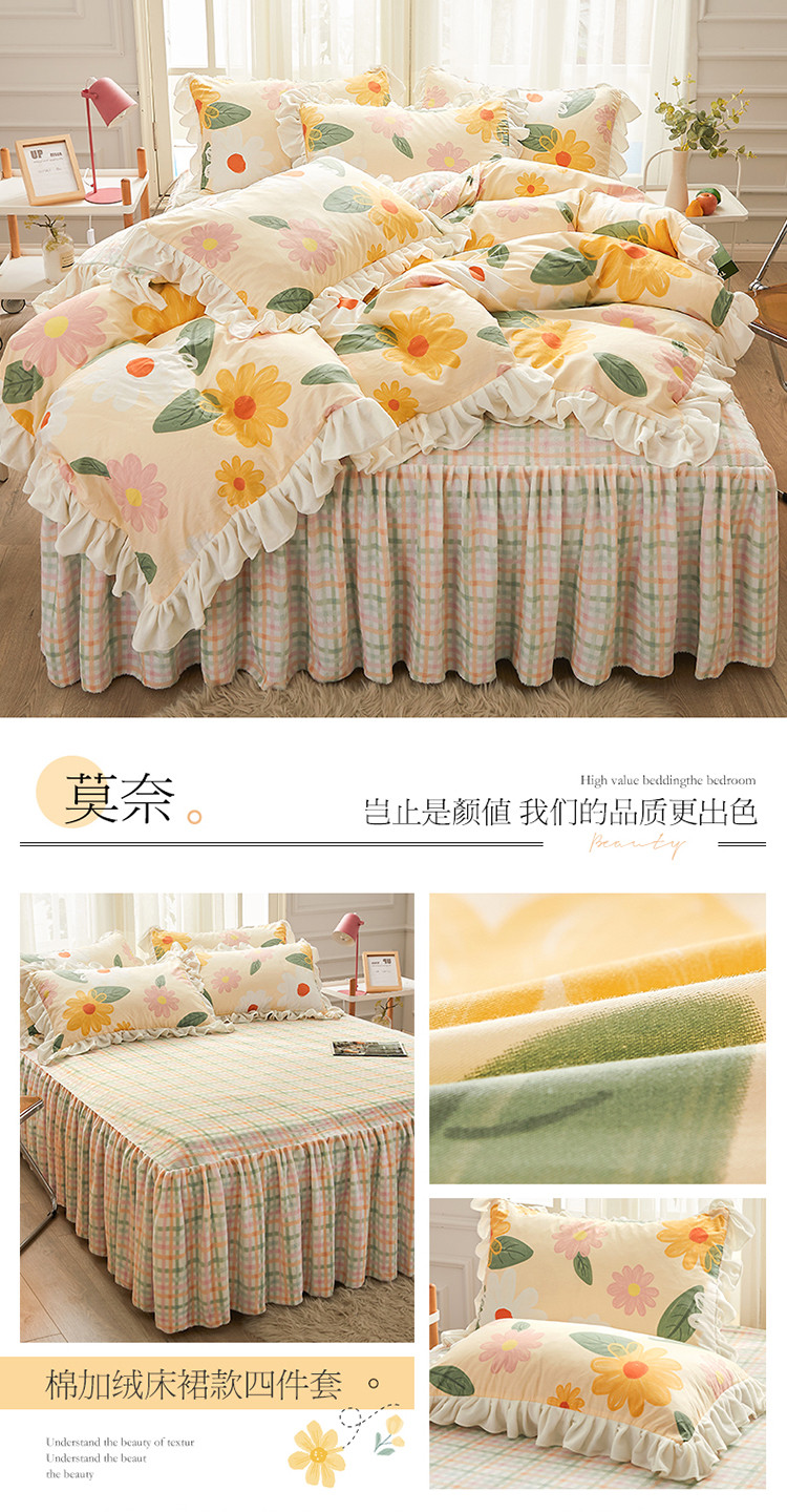 商品名称:宜凡家纺 2021新款棉加绒印花床裙四件套 莫奈
