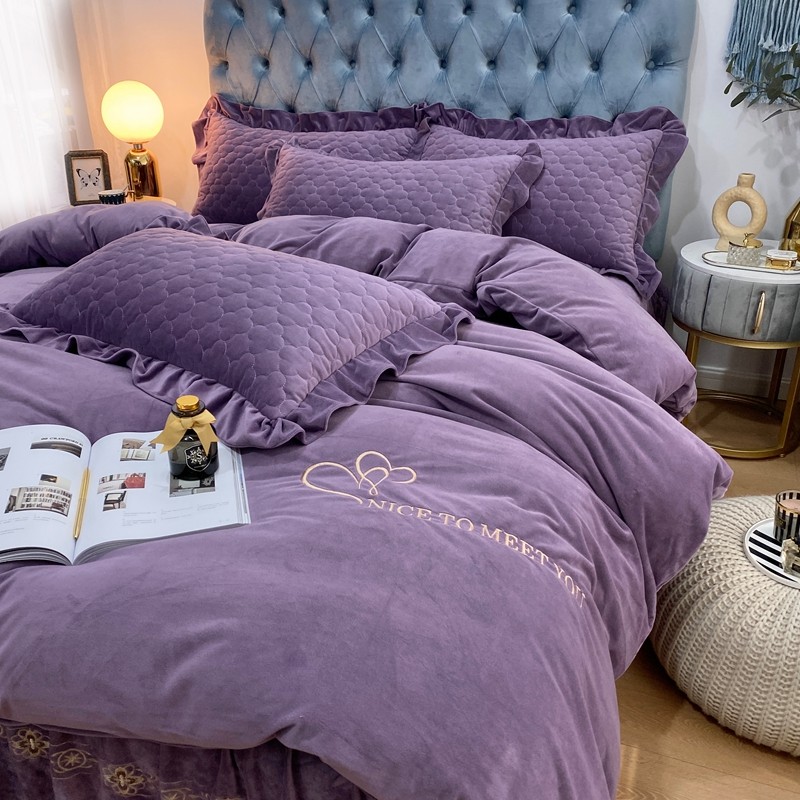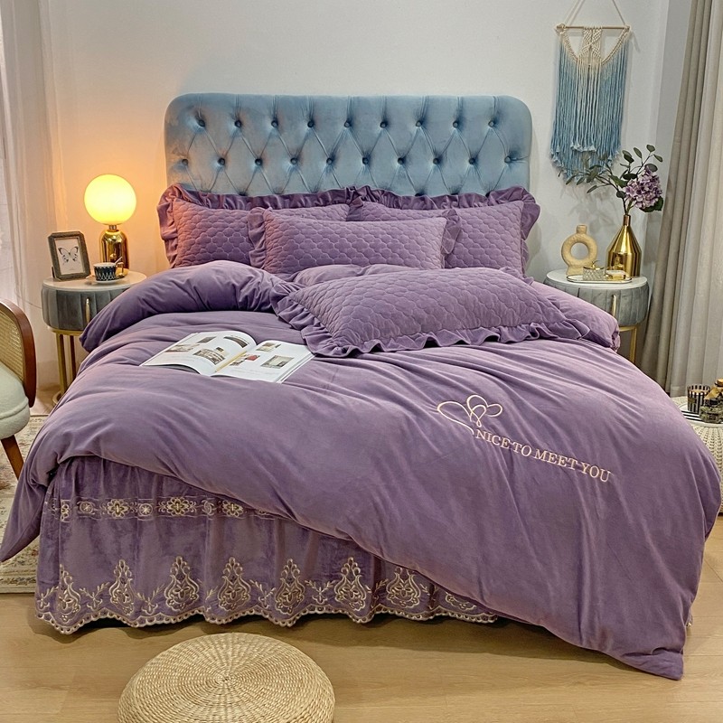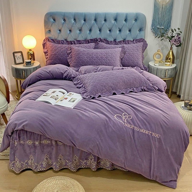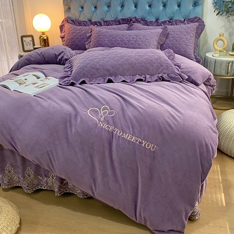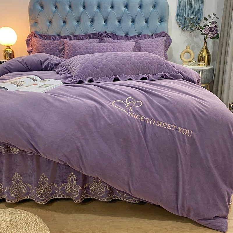 星尚 2021新款秋冬高定婴儿绒夹棉绣花床裙四件套 靓紫