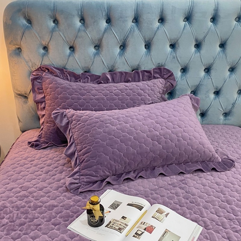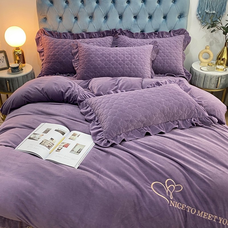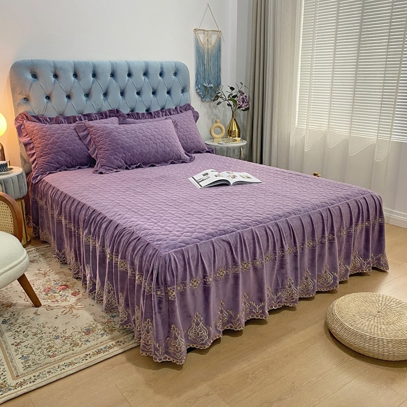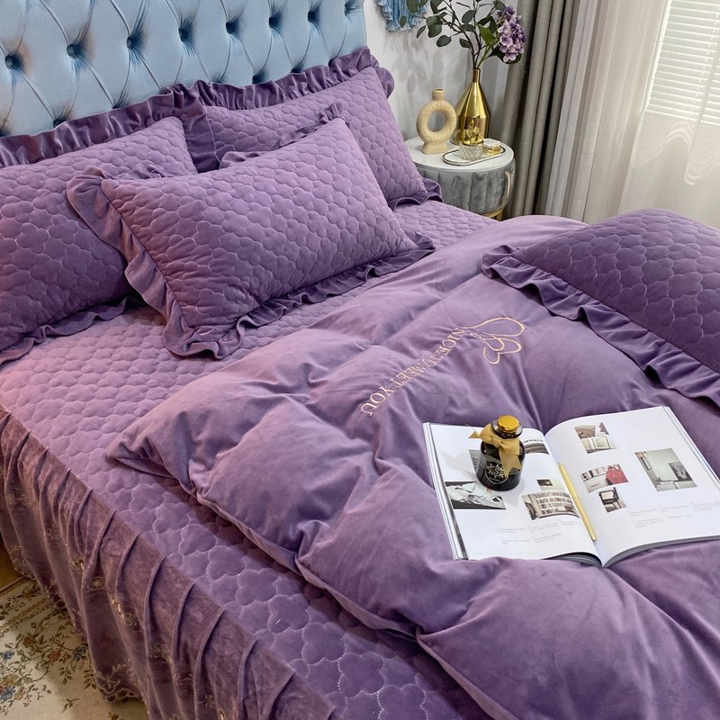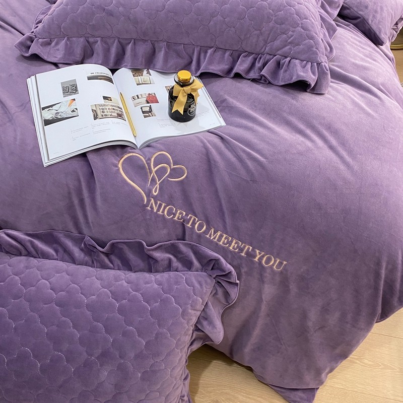 星尚 2021新款秋冬高定婴儿绒夹棉绣花床裙四件套 靓紫