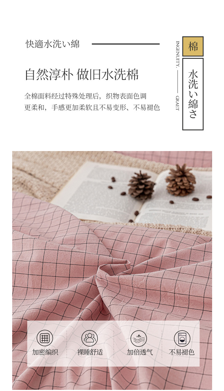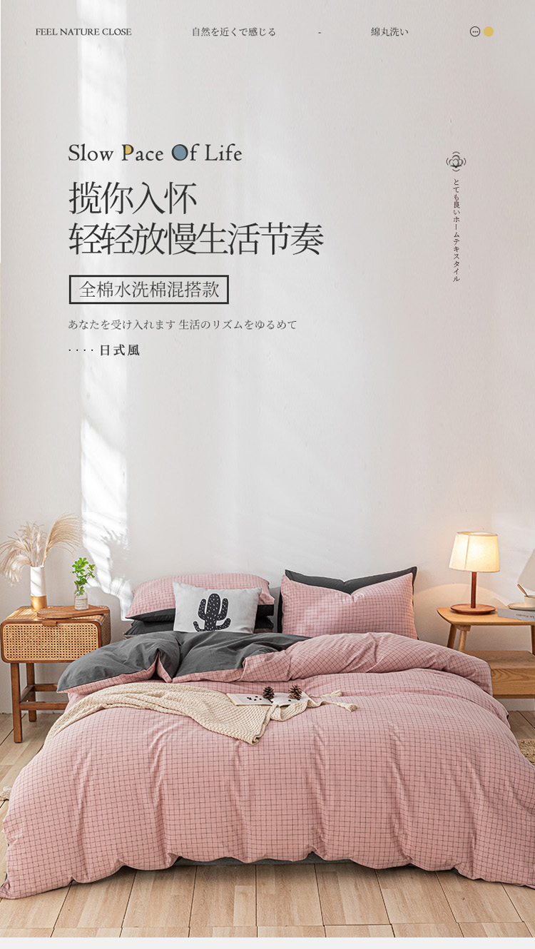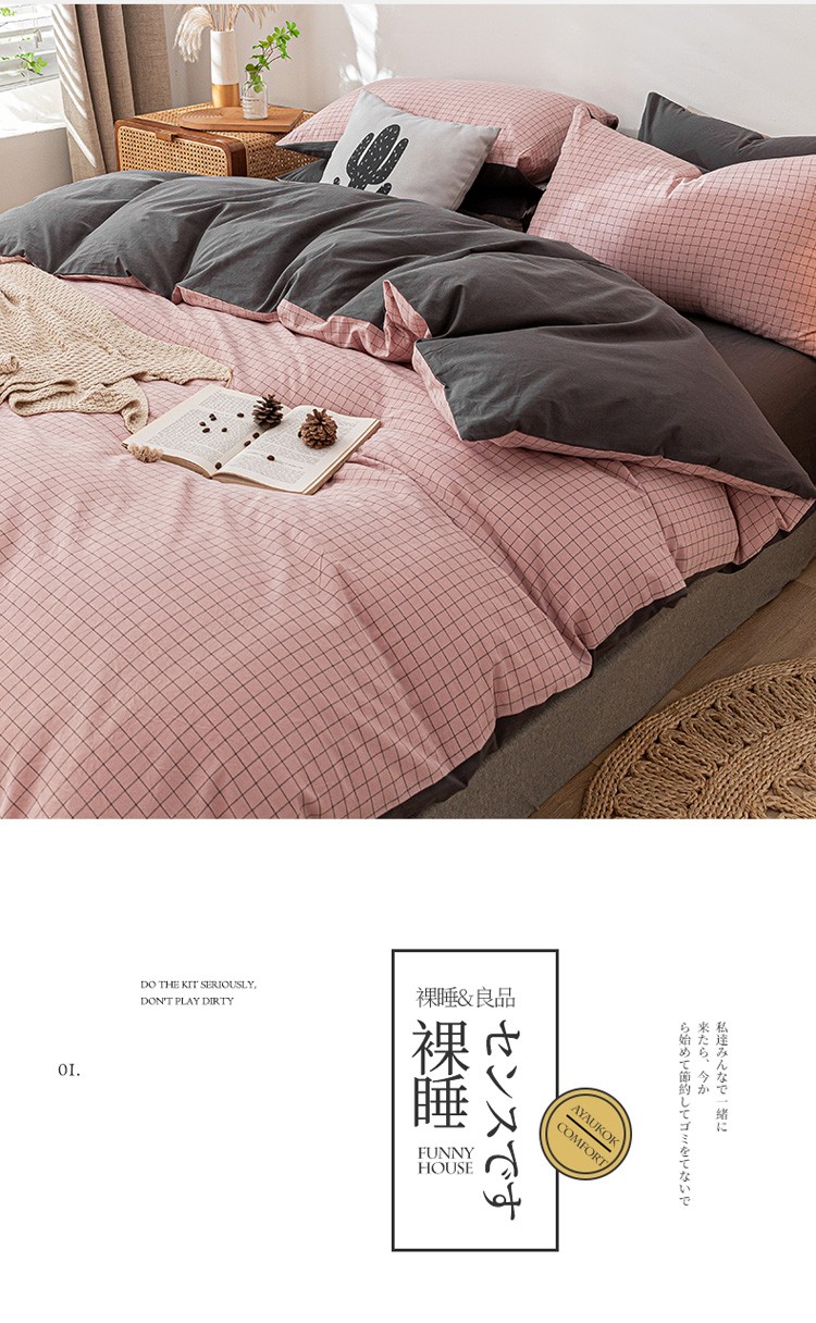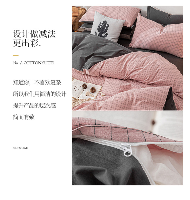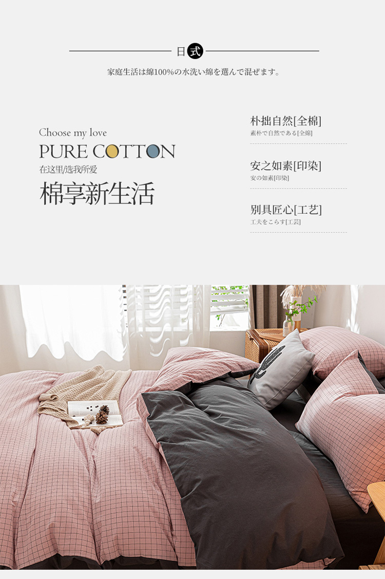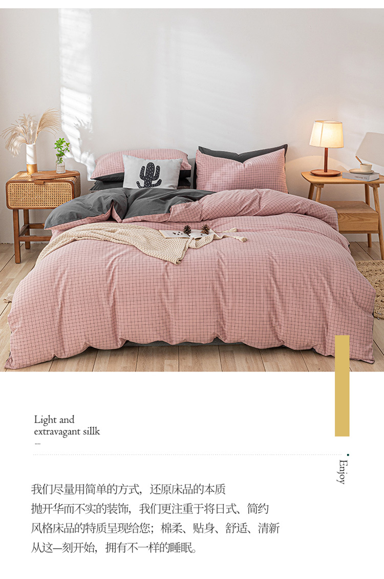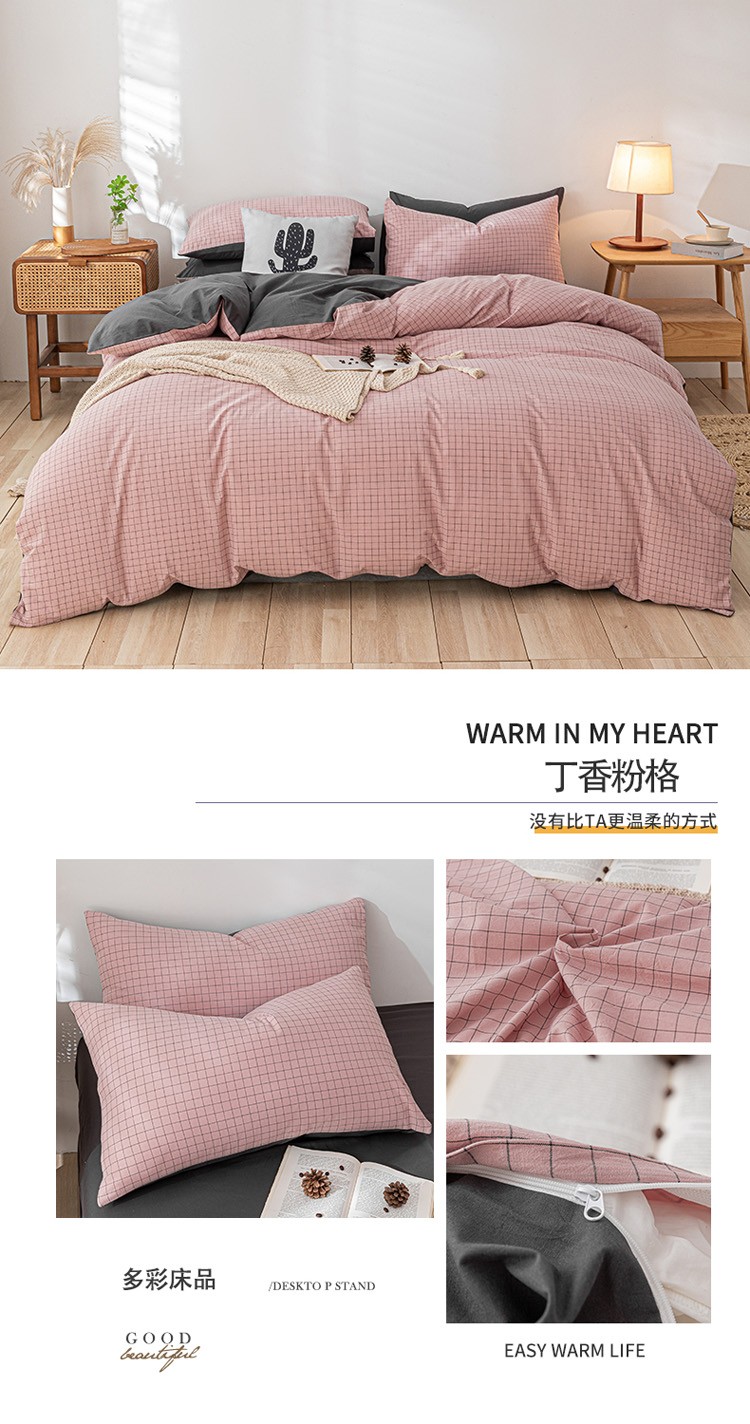 当前位置: 91家纺网 > 商品网购 > 床品套件 > 四件套 > 全棉普通四件套 > 蓝巢 2021新款全棉色织水洗棉四件套 丁香粉格